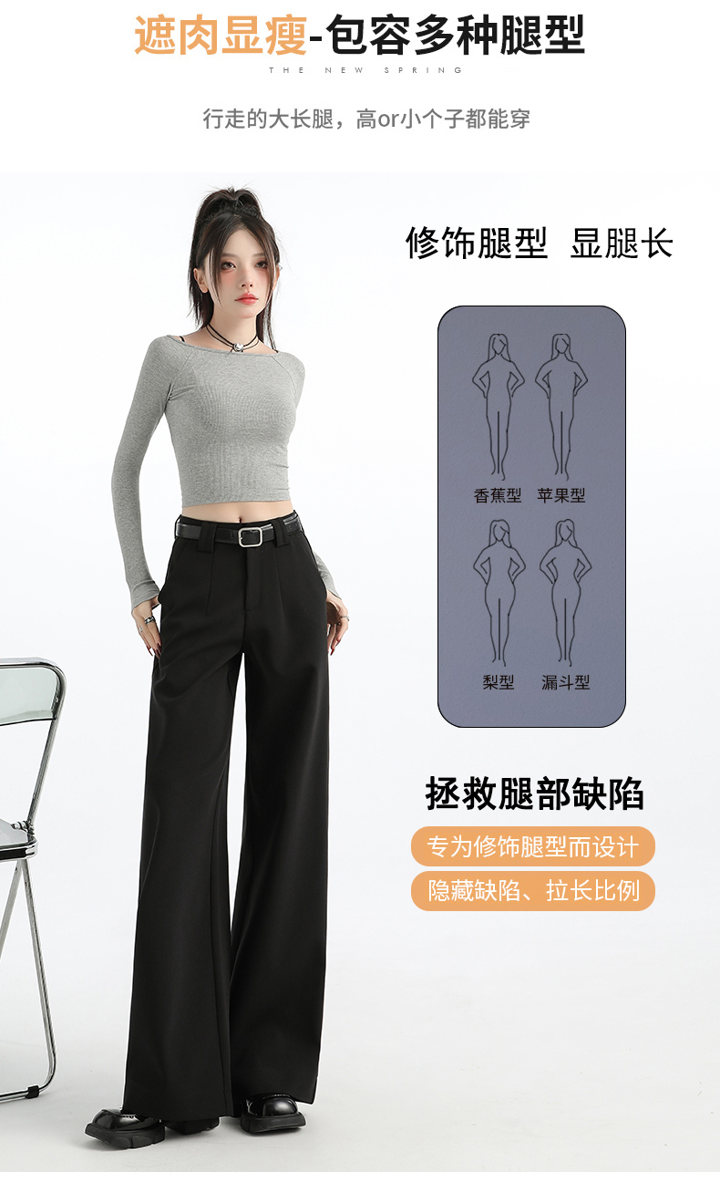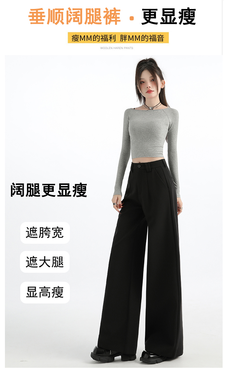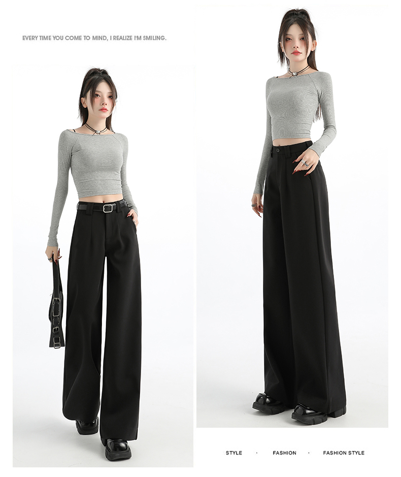 High-End Black Straight-Leg Suit Pants for Women, Winter Fleece-Lined 2025 New Style, High-Waisted, Loose, Narrow-Fit, Casual Wide-Leg Pants