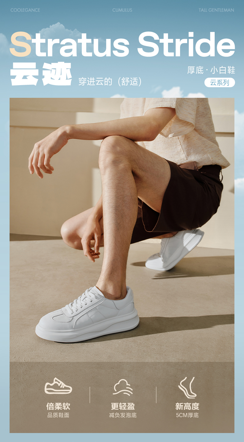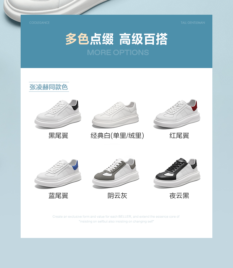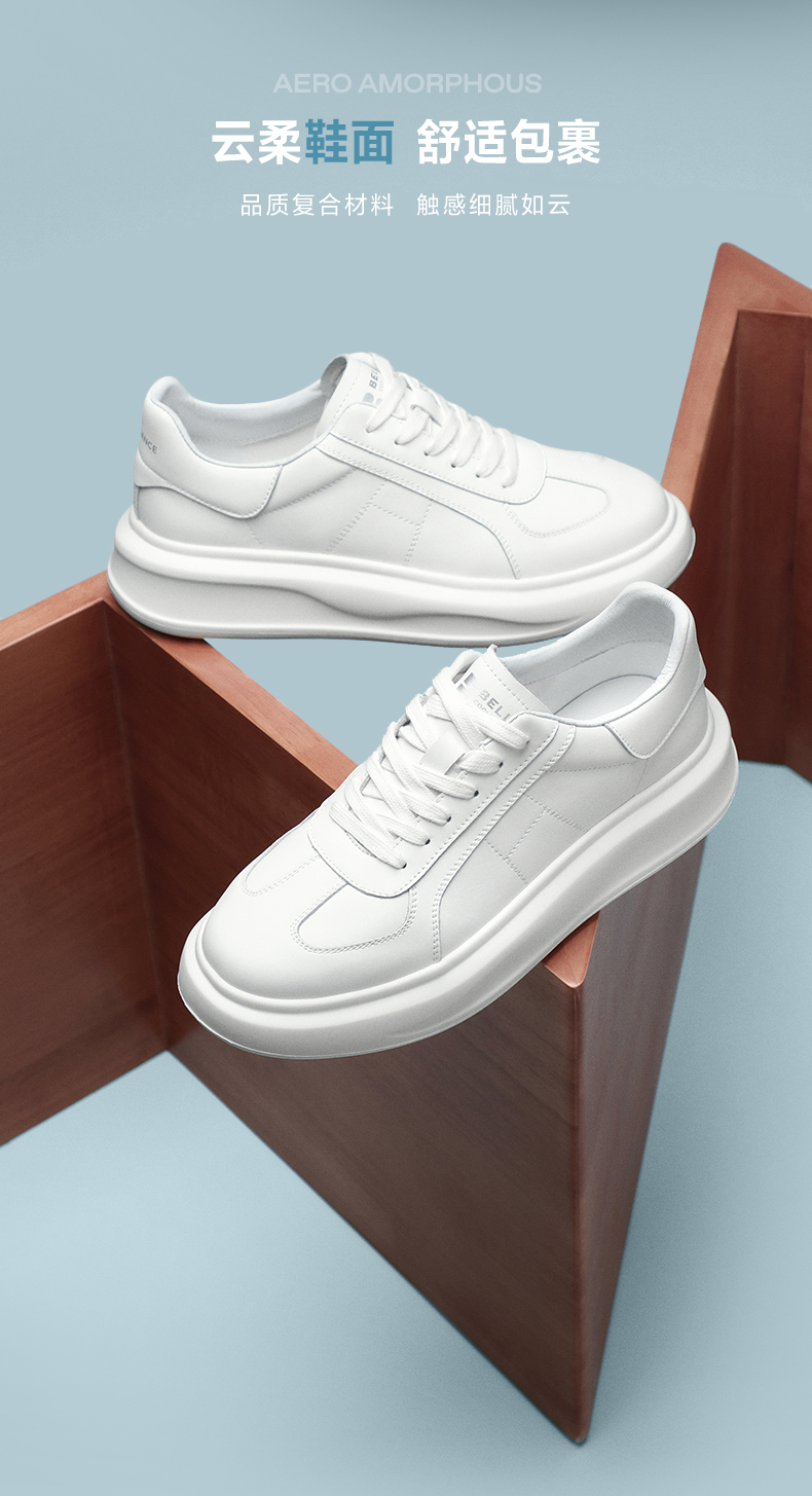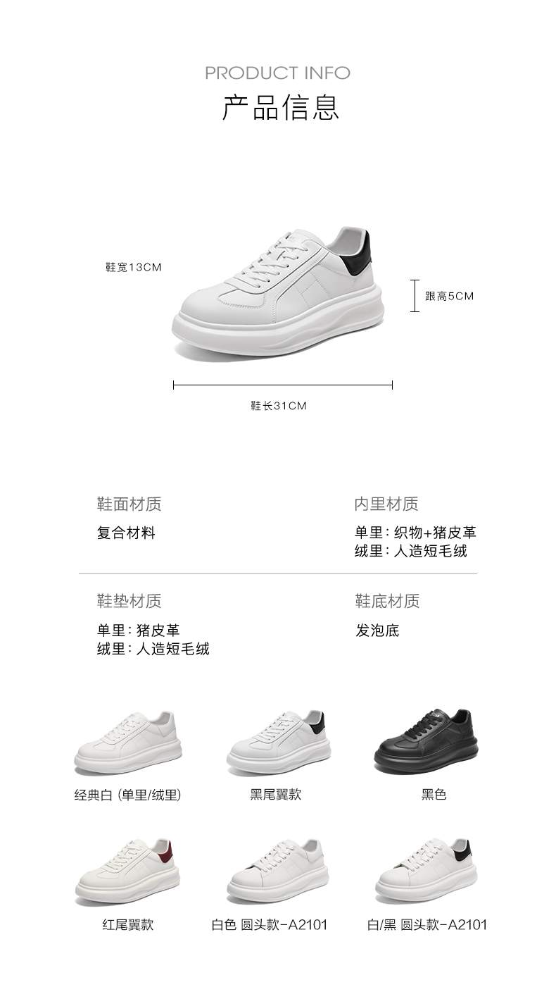 Zhang Linghe's Same Style Belle Cloud Trail Men's Casual Sports Sneakers with Height-Increasing Thick Soles, White Shoes with Fleece Lining A1826Am5