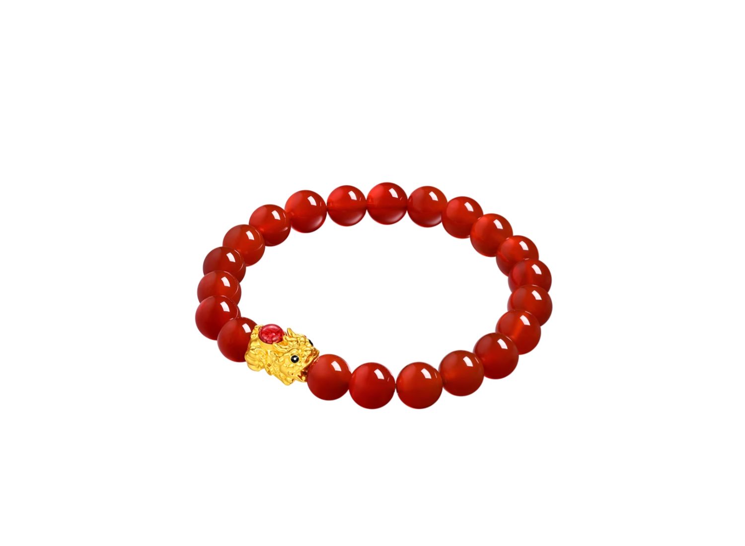 [Christmas Gift] Chow Tai Fook Auspicious Pixiu Pure Gold Red Agate Bracelet for Women Eor1251 Official