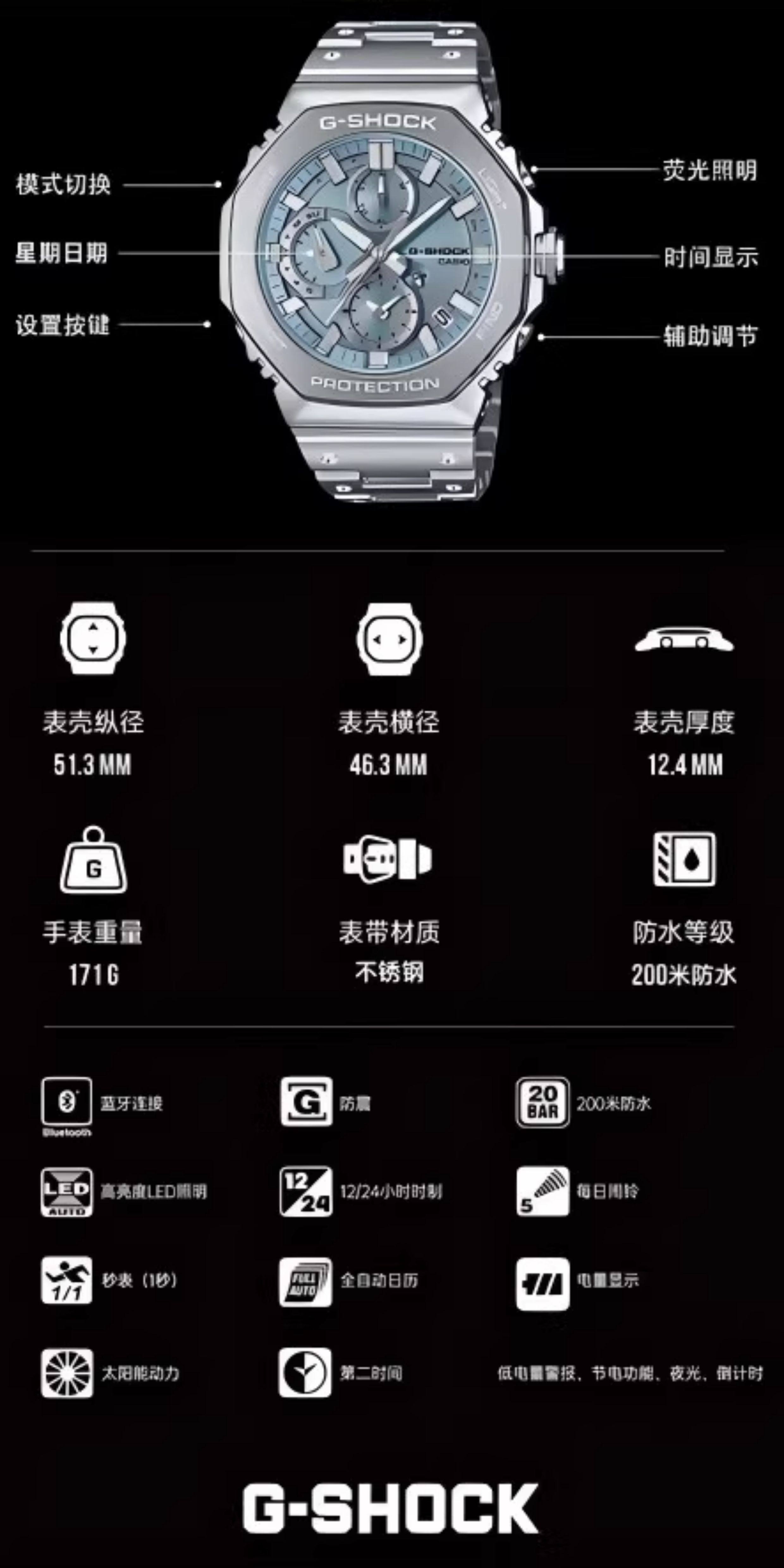 Casio Watch Men's Metal Pointer Waterproof Solar Bluetooth Farmhouse Oak Business Casual Gmc-B2100