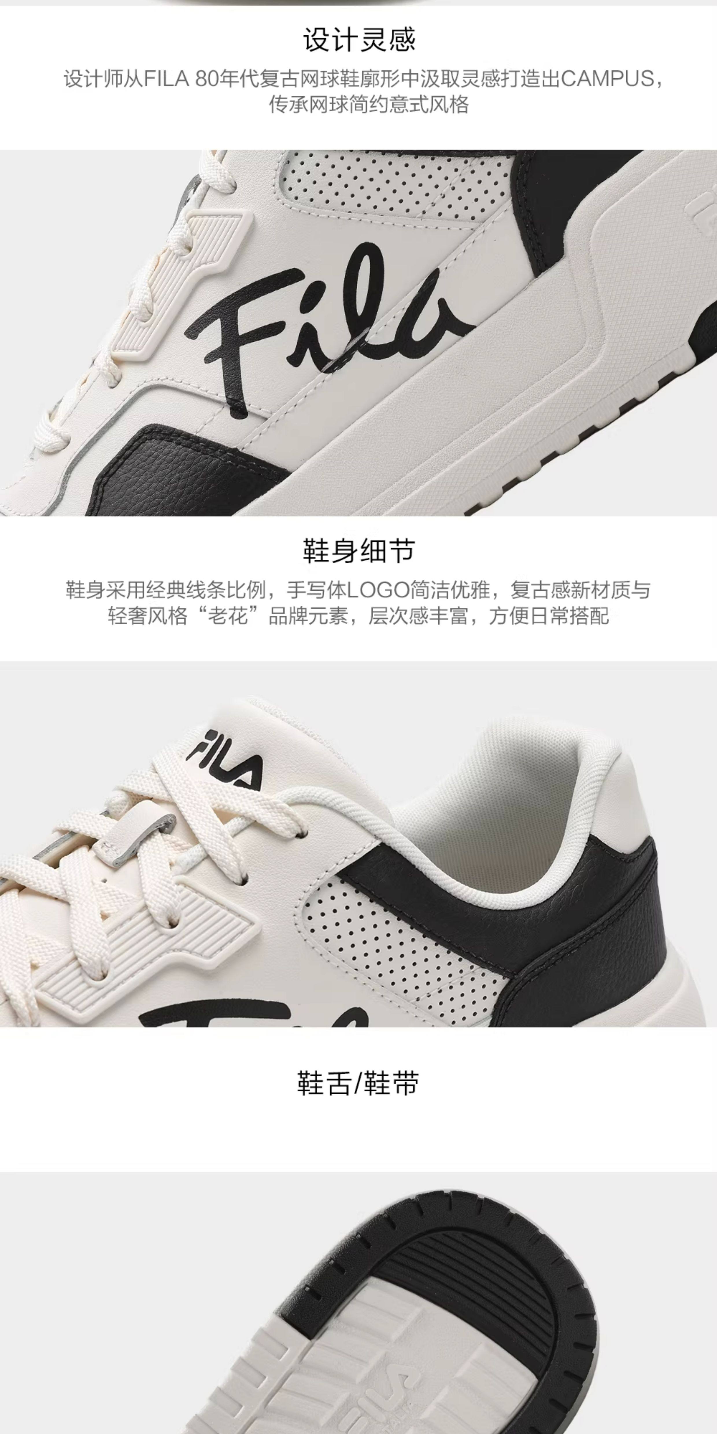 Campus | Yi Yang Qianxi's Same Style Fila Versatile Men's Shoes, White Sneakers, Thick-Soled Sports Casual Shoes.