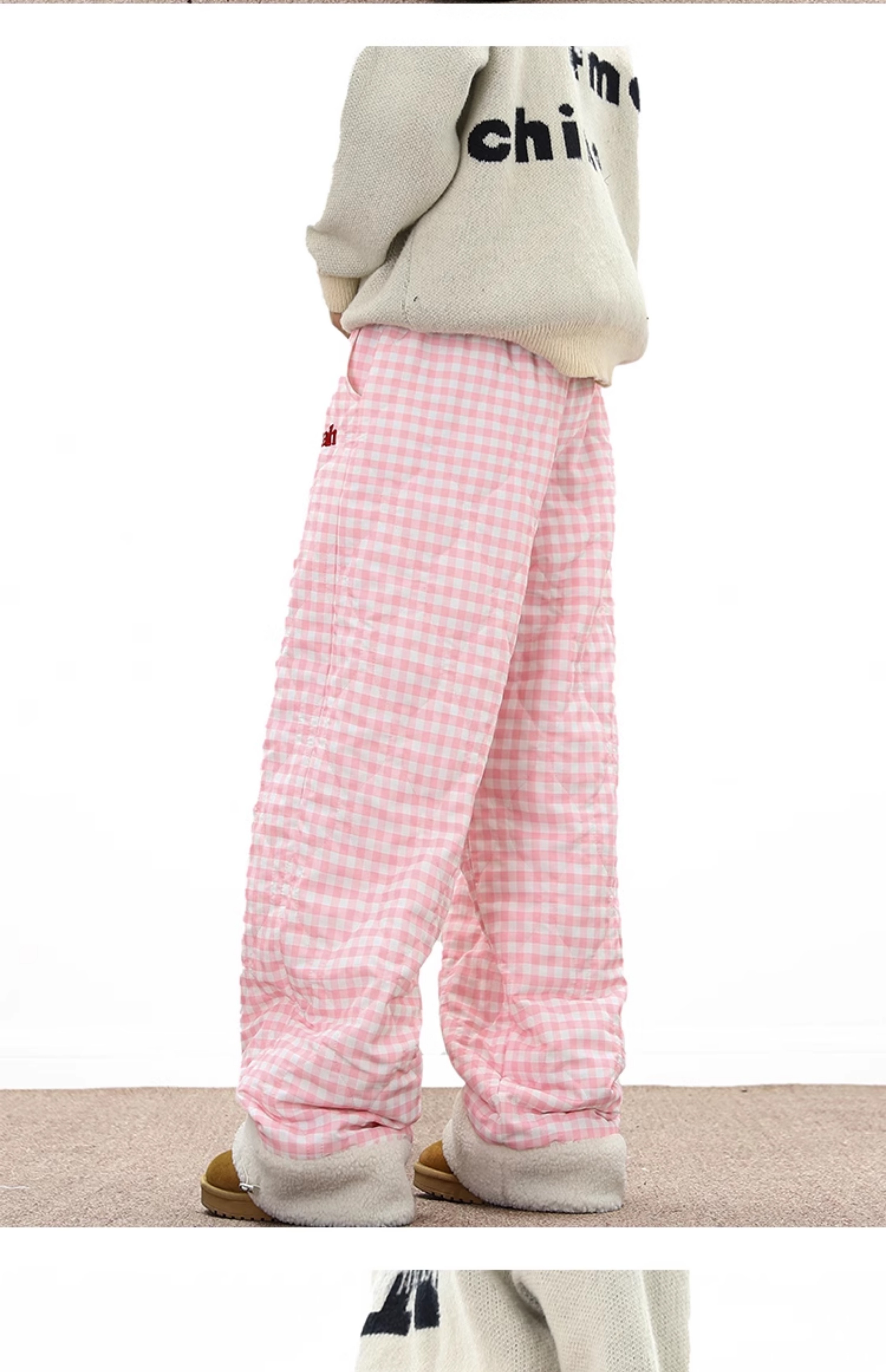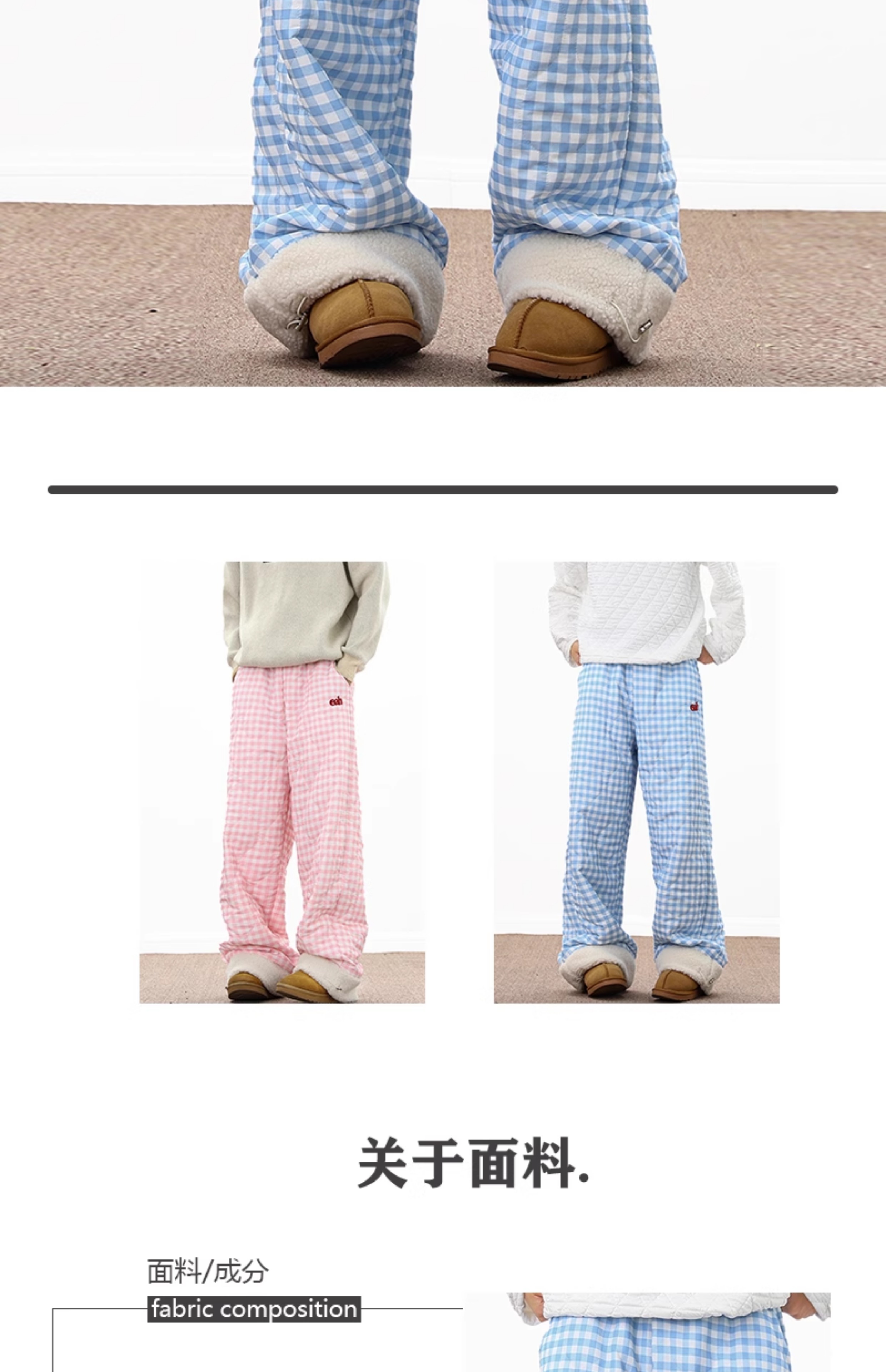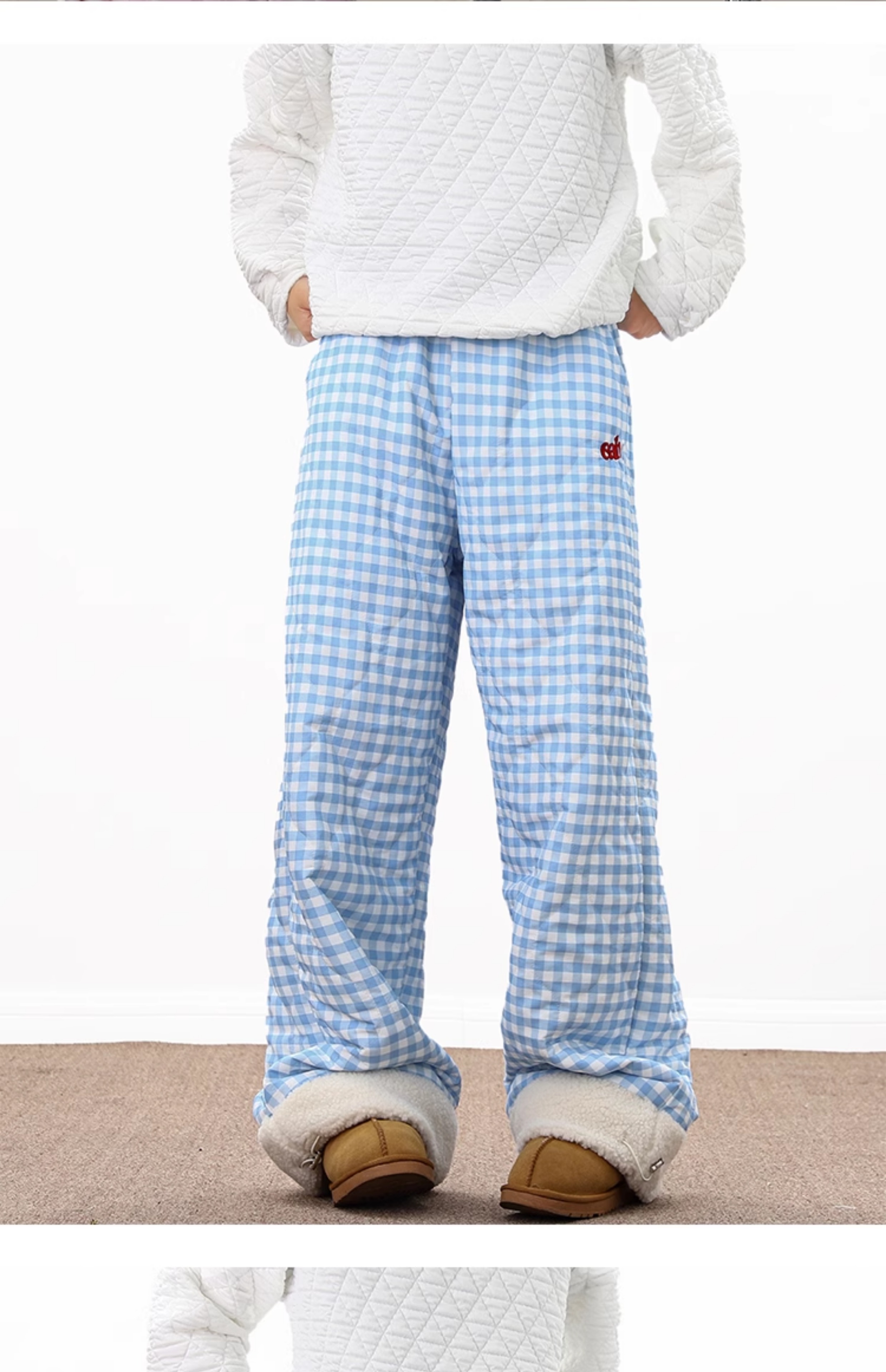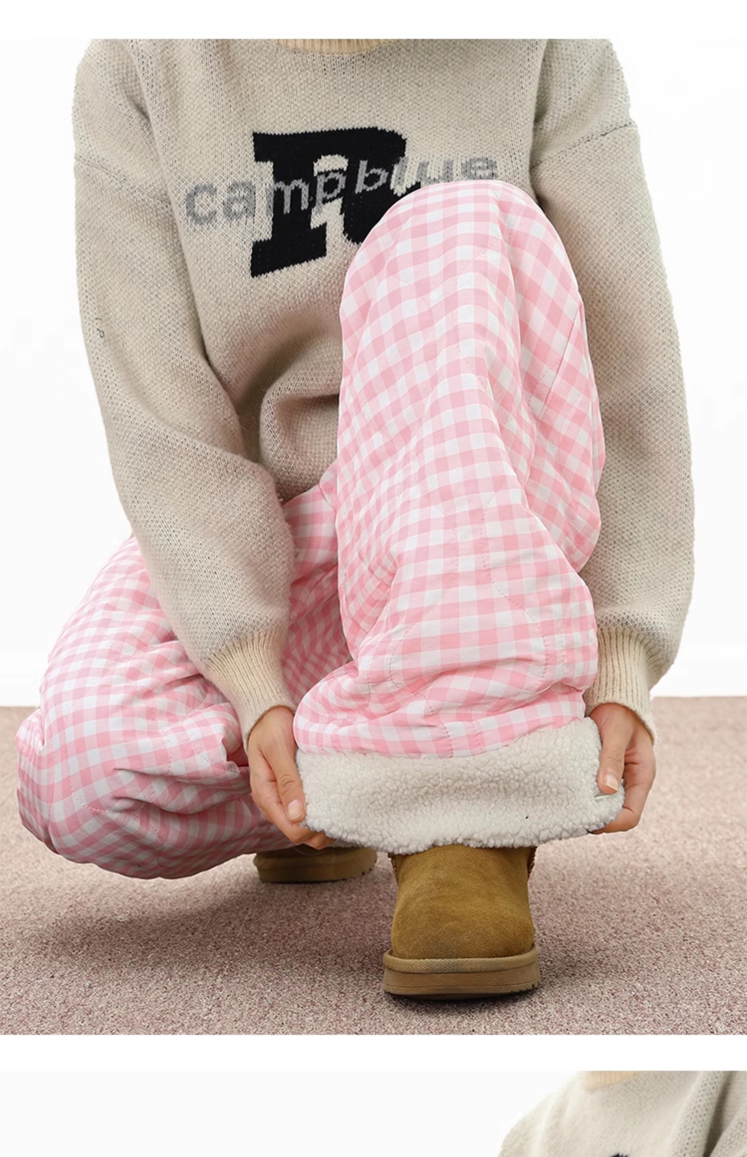 Bwka Dopamine Lamb Wool Spliced Plaid Cotton Pants Women's Winter New Velvet Thickeneded Cold-Resistant Warm Ski Pants