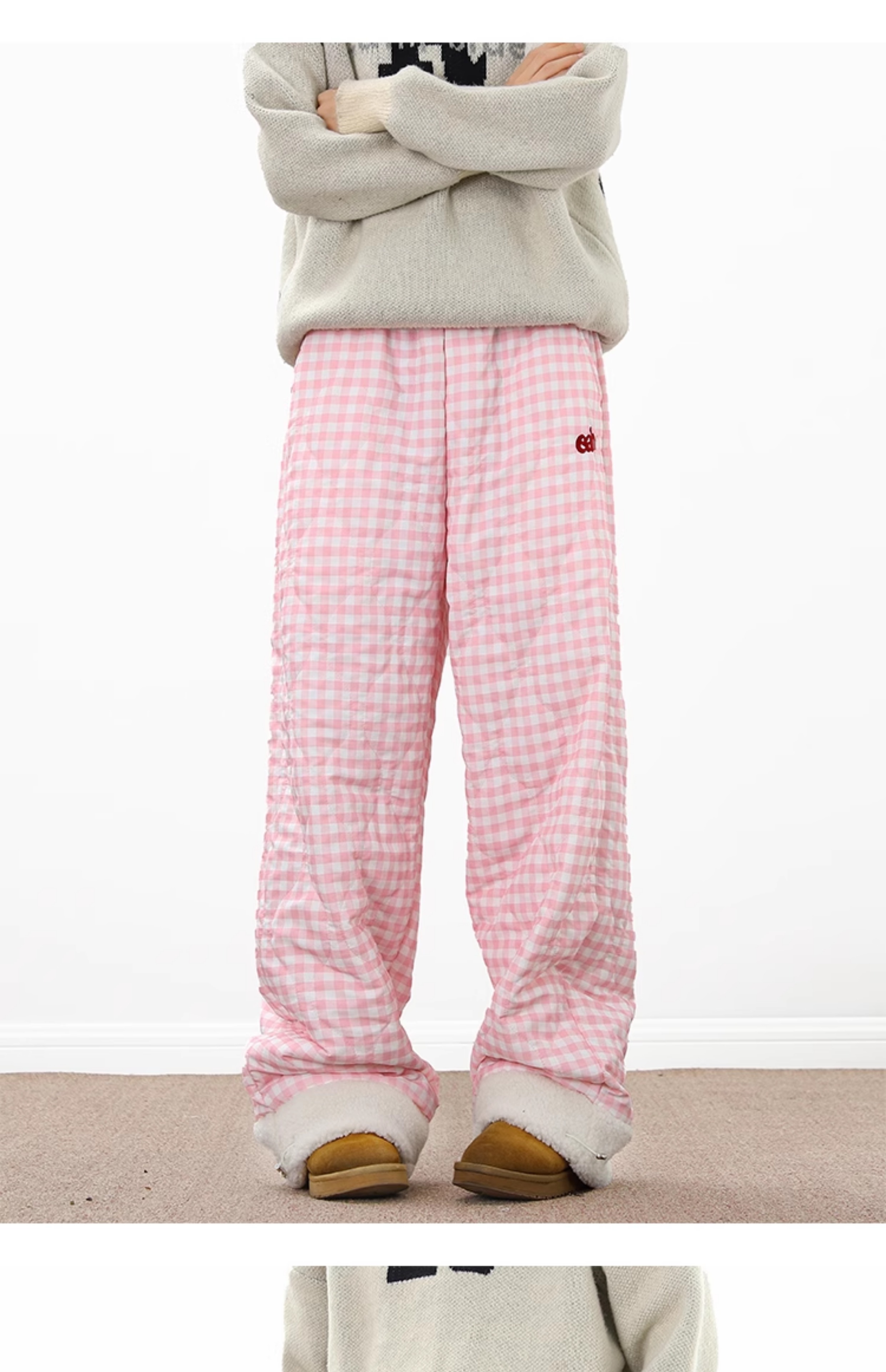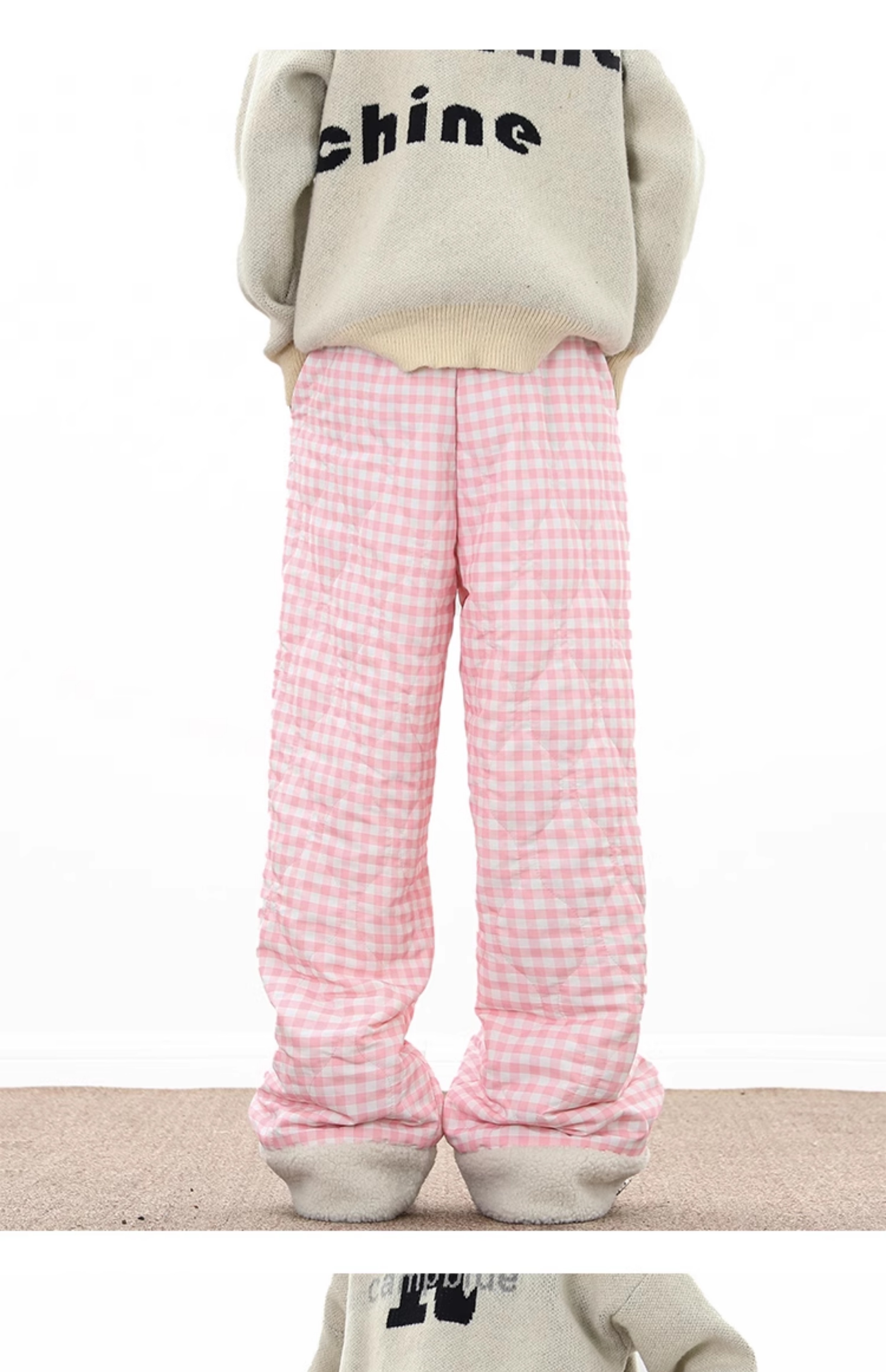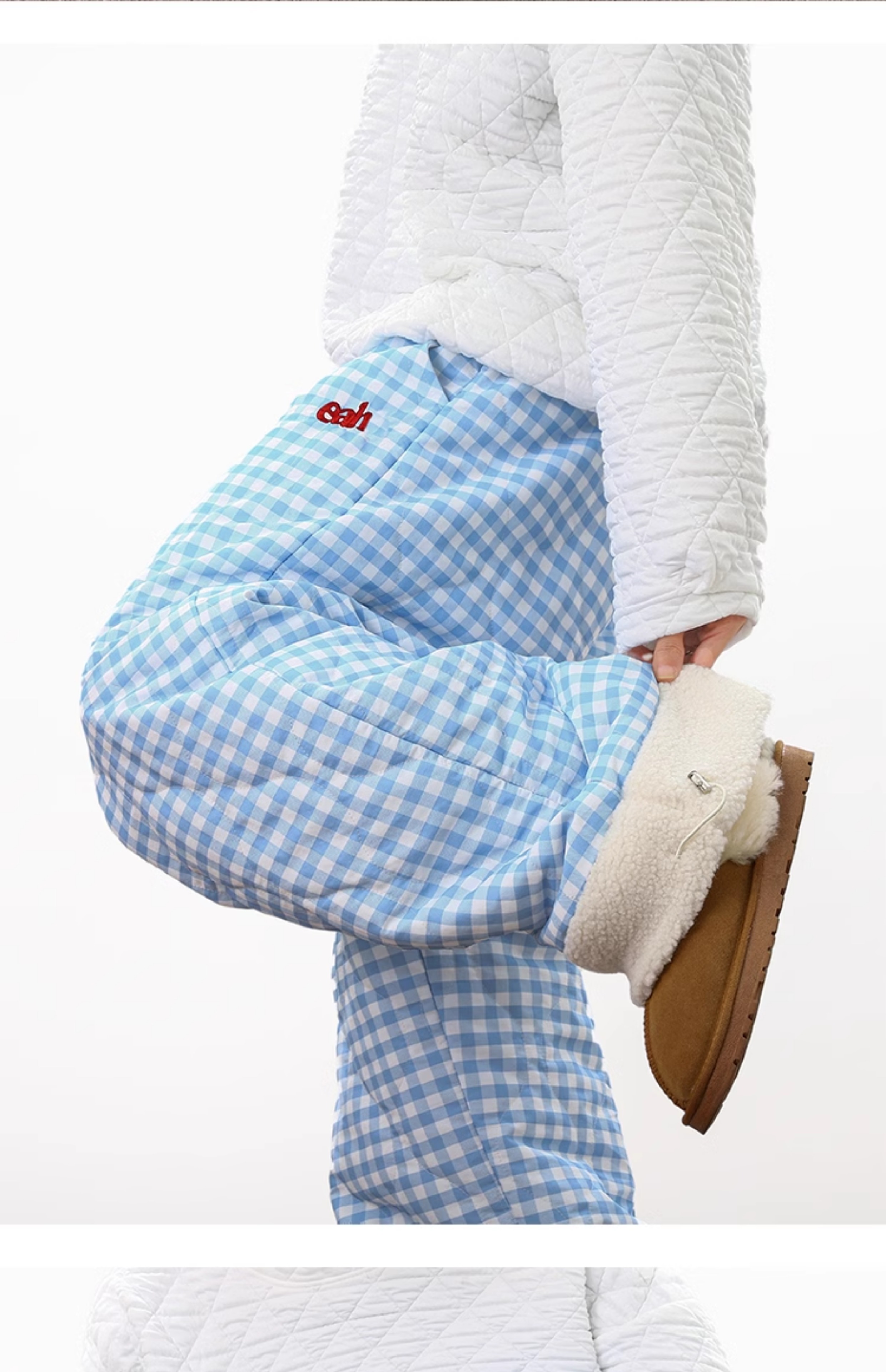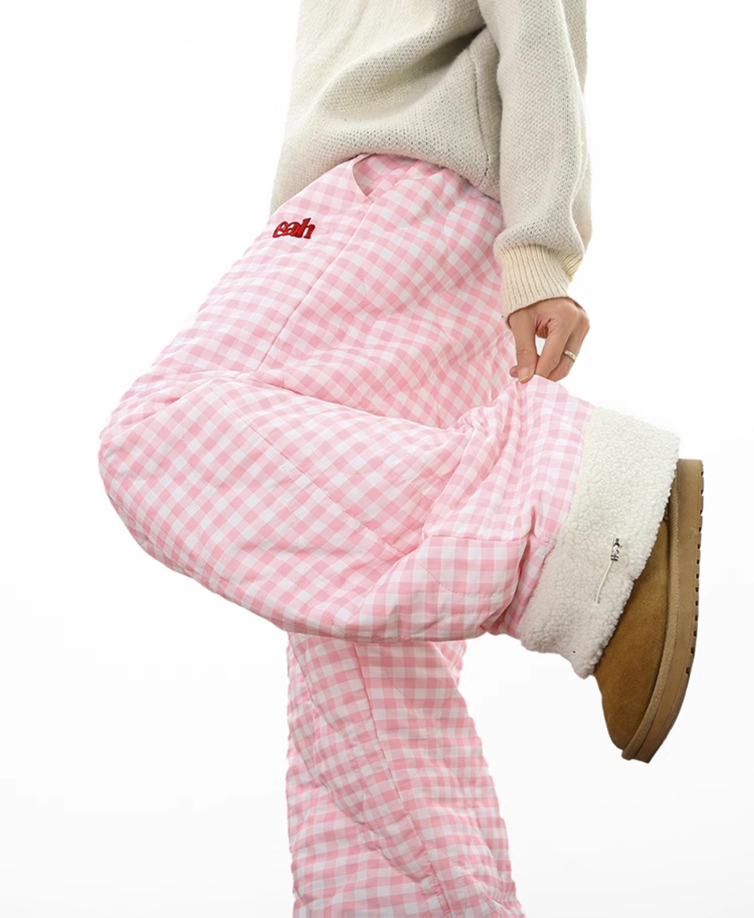 Bwka Dopamine Lamb Wool Spliced Plaid Cotton Pants Women's Winter New Velvet Thickeneded Cold-Resistant Warm Ski Pants
