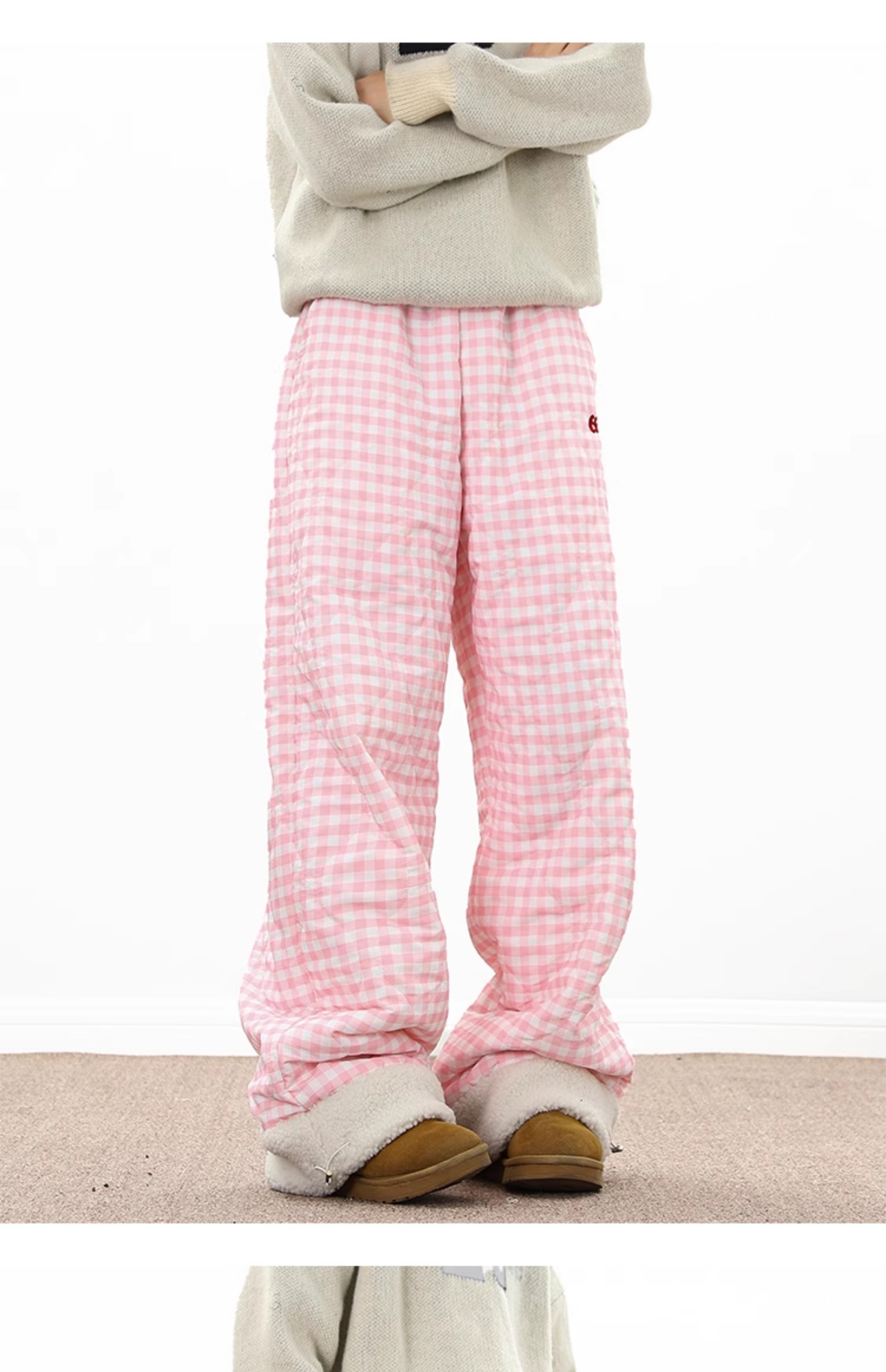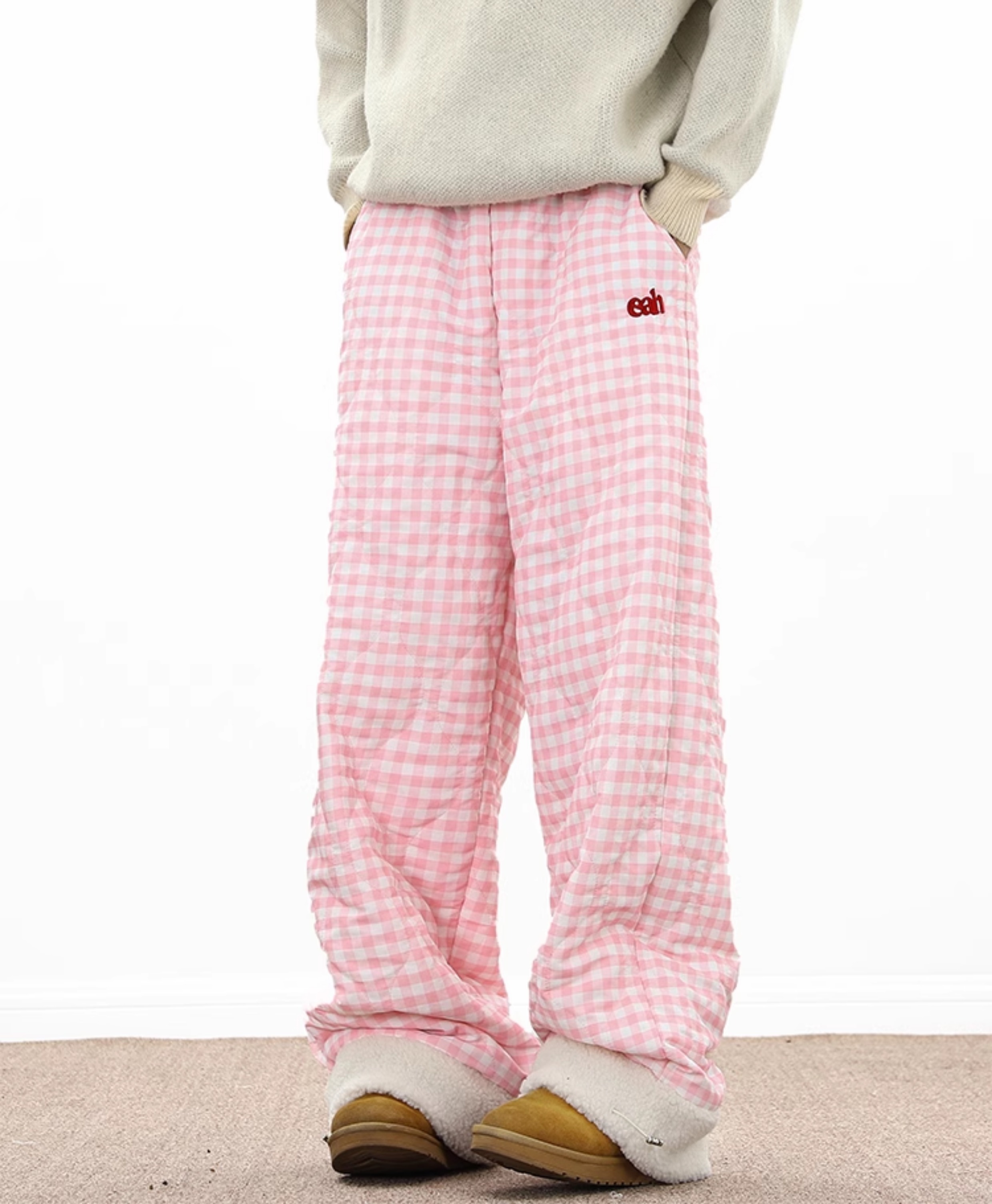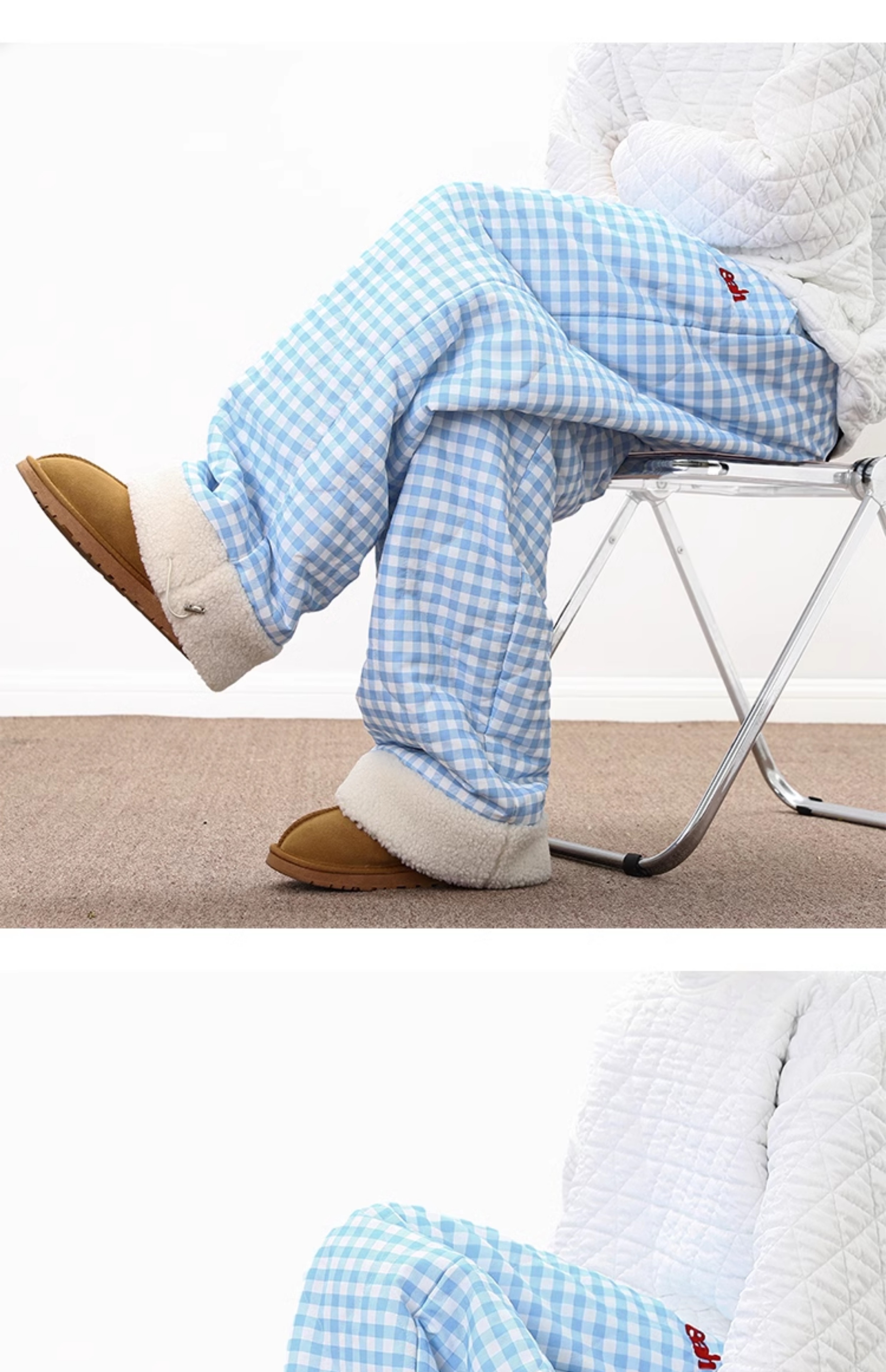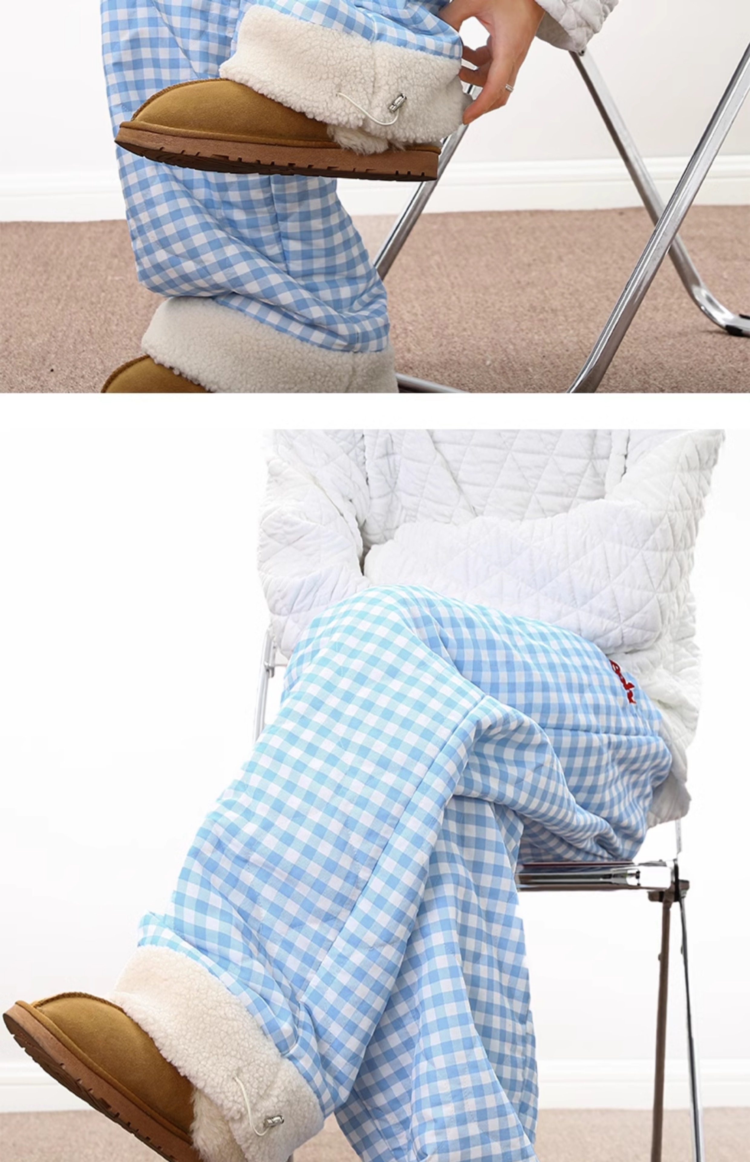 Bwka Dopamine Lamb Wool Spliced Plaid Cotton Pants Women's Winter New Velvet Thickeneded Cold-Resistant Warm Ski Pants