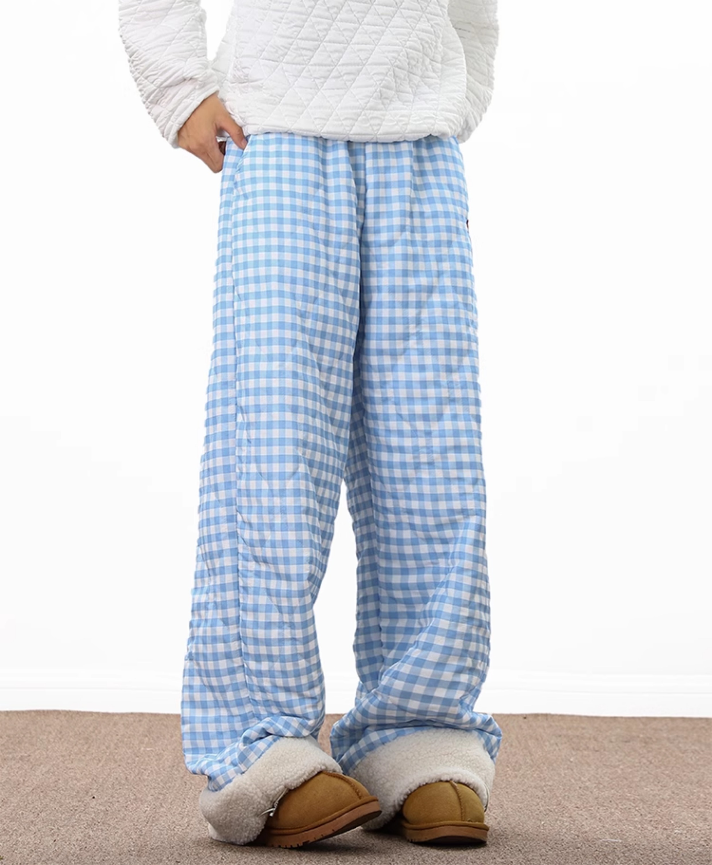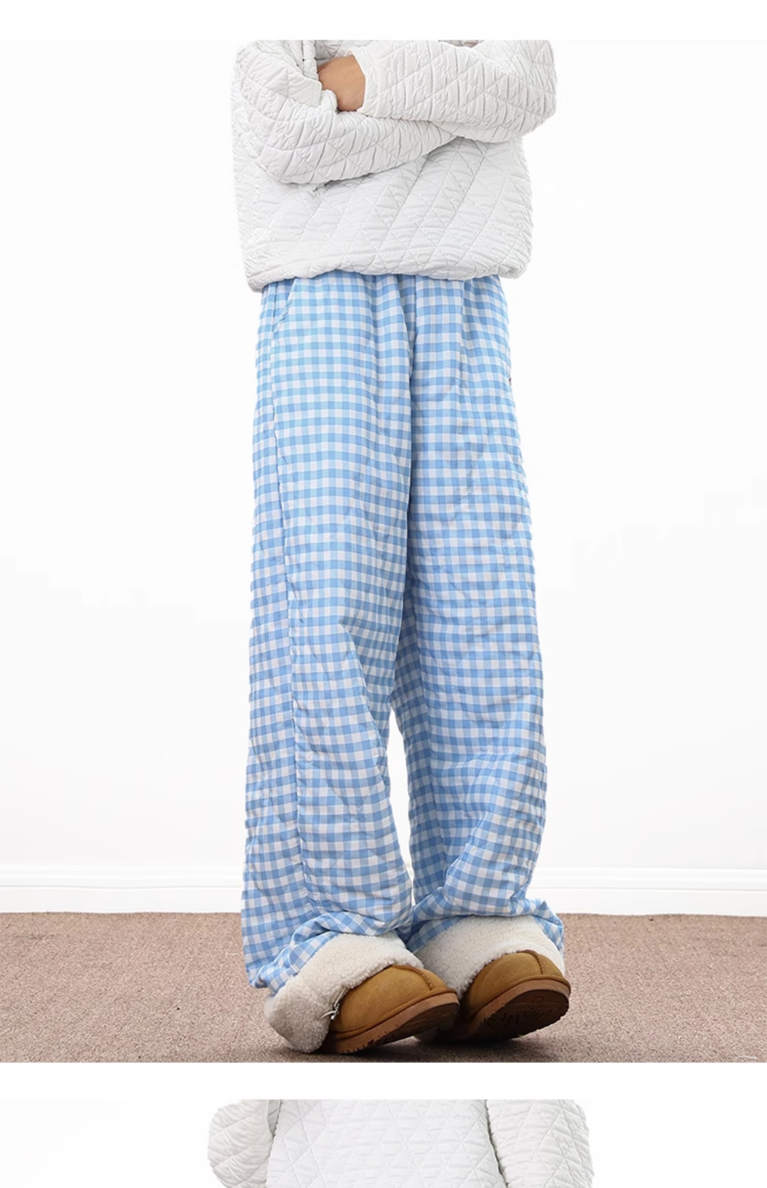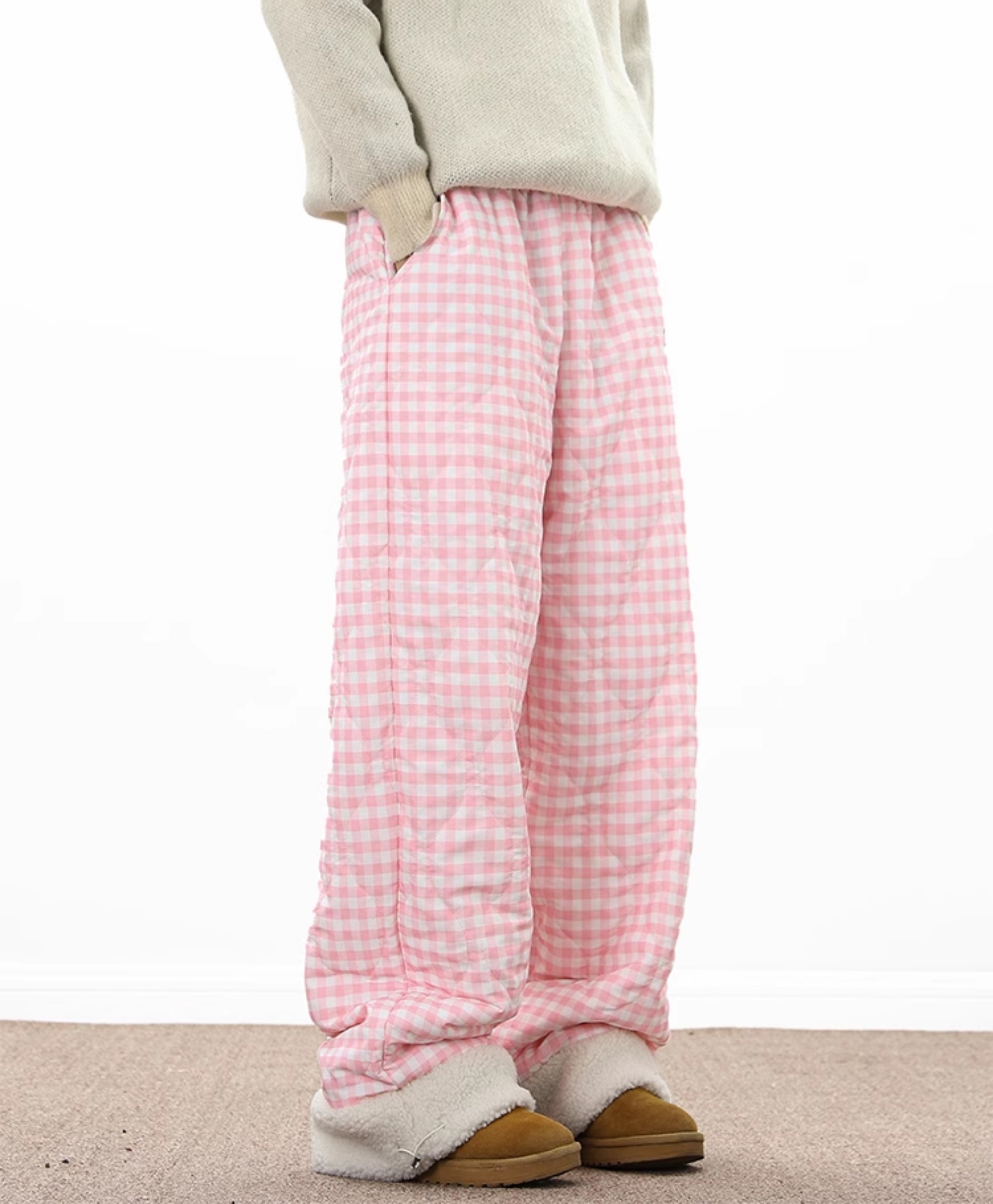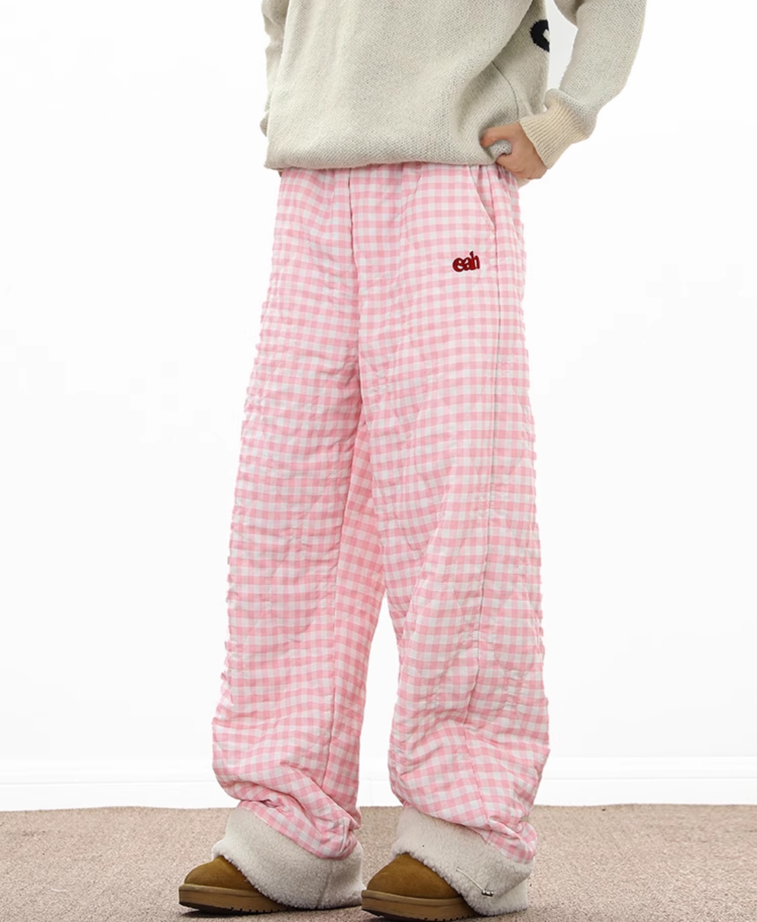 Bwka Dopamine Lamb Wool Spliced Plaid Cotton Pants Women's Winter New Velvet Thickeneded Cold-Resistant Warm Ski Pants
