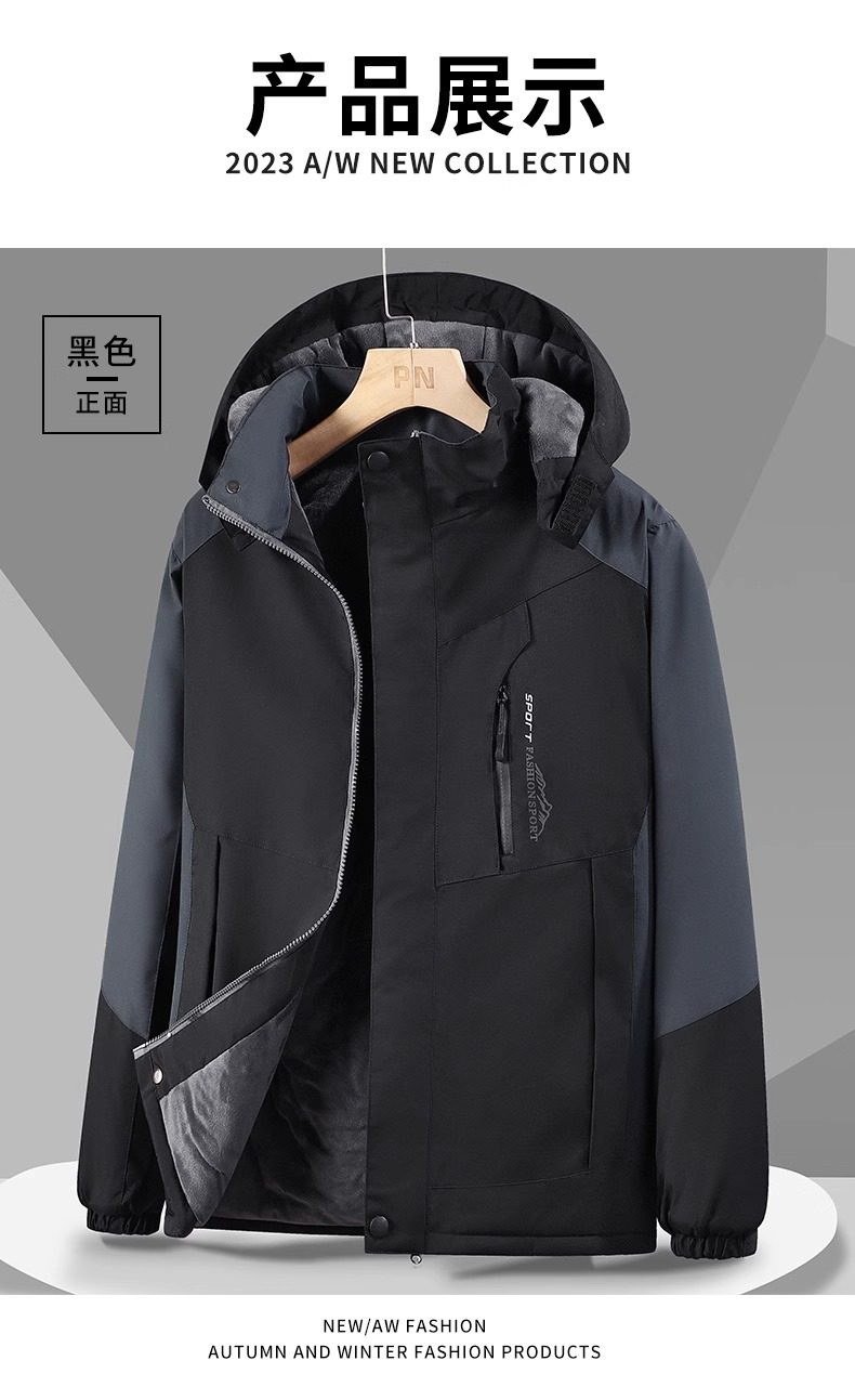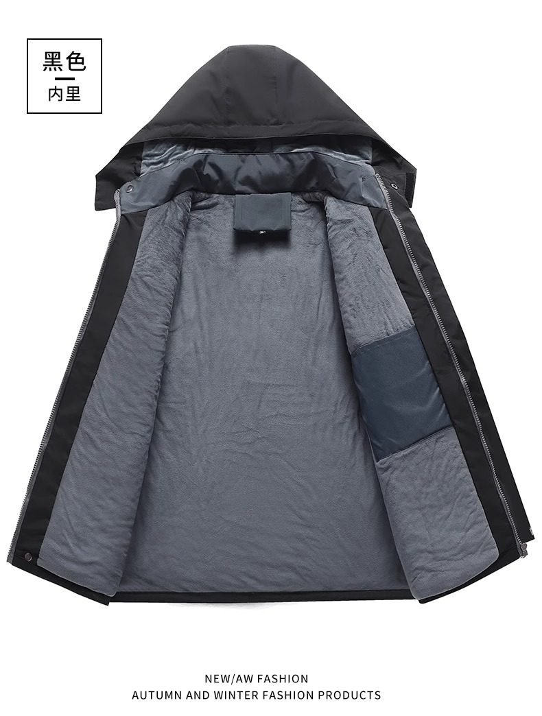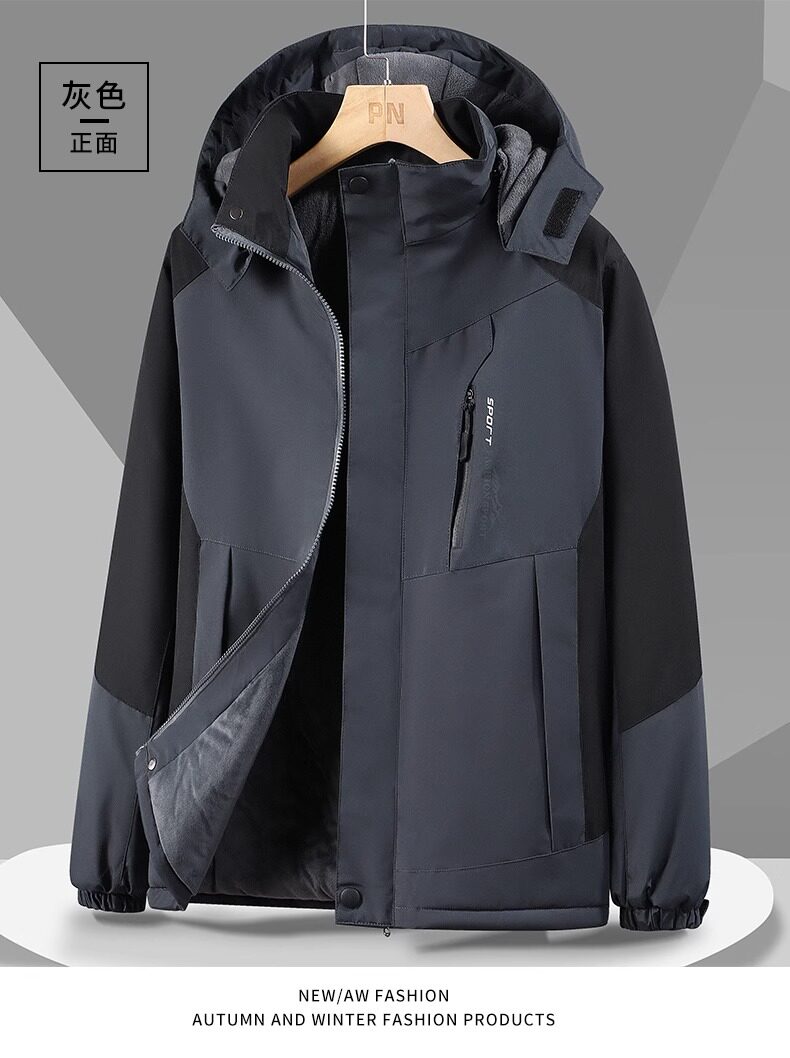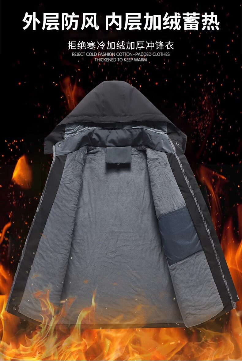 Men's Fleece-Lined and Thickened Outdoor Workwear Jacket, Waterproof, Windproof, and Warm