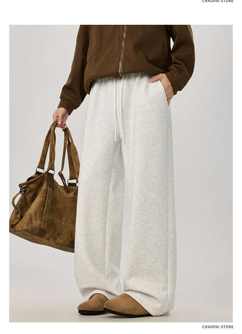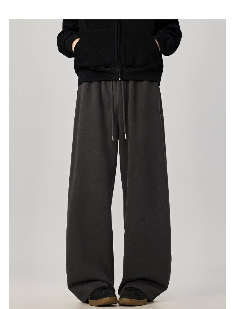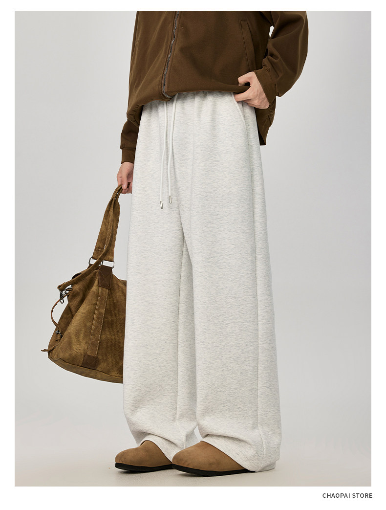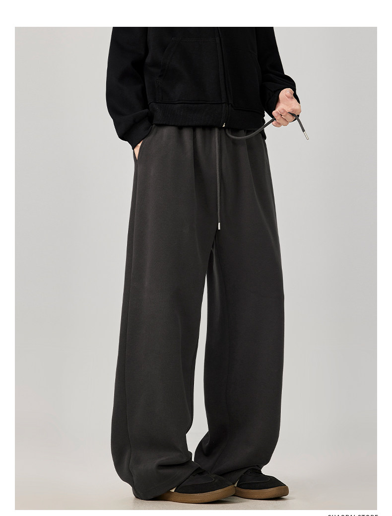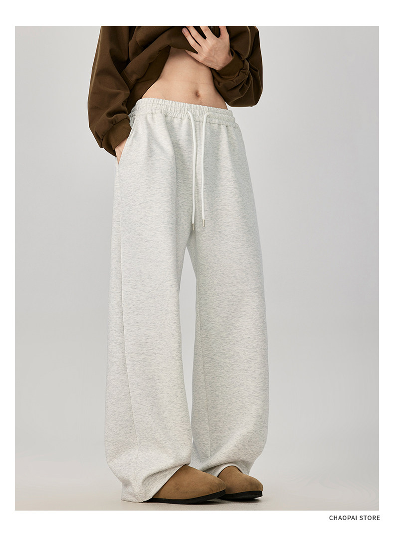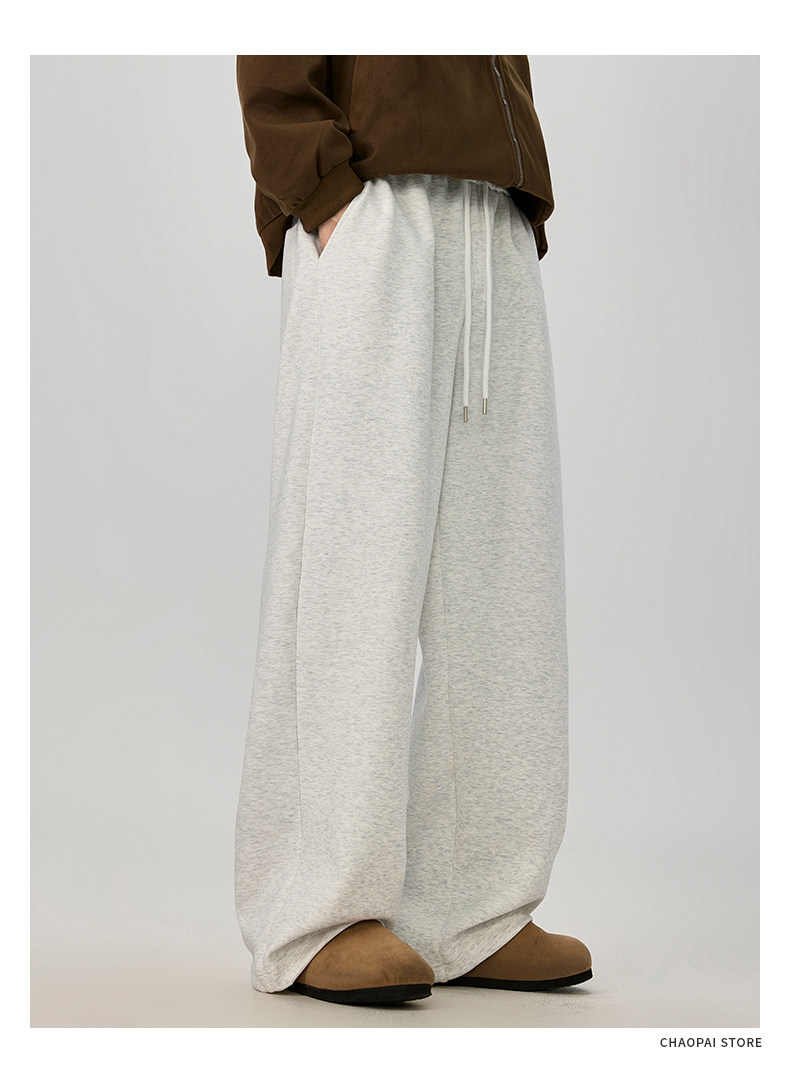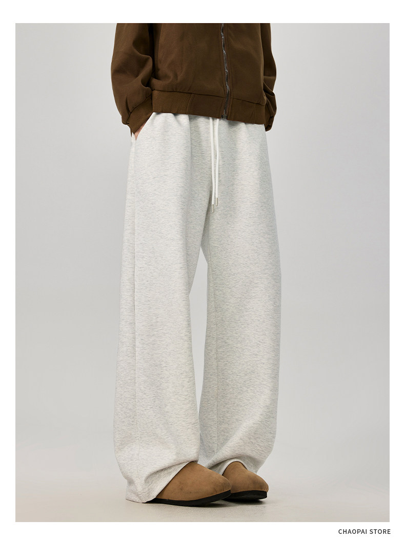 American-Style Casual Pants for Men, Spring and Autumn, Heavy Thickened Gray Sweatpants, Men's Drapey Loose Wide-Leg Straight-Leg Sports Pants
