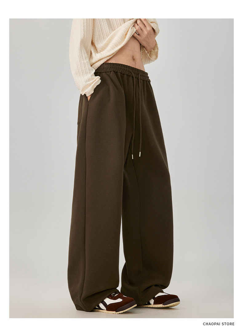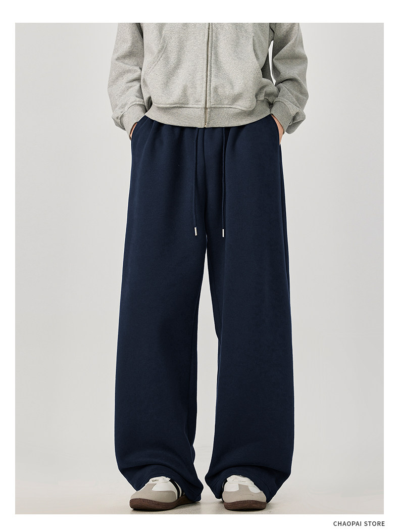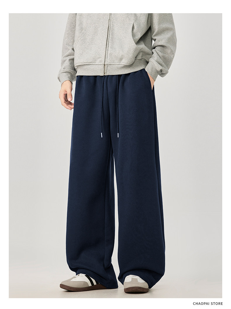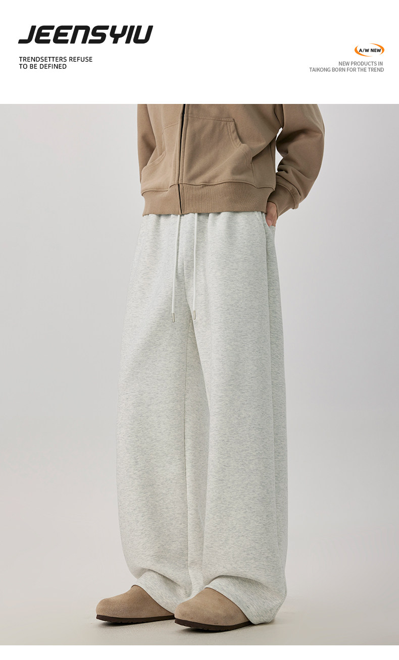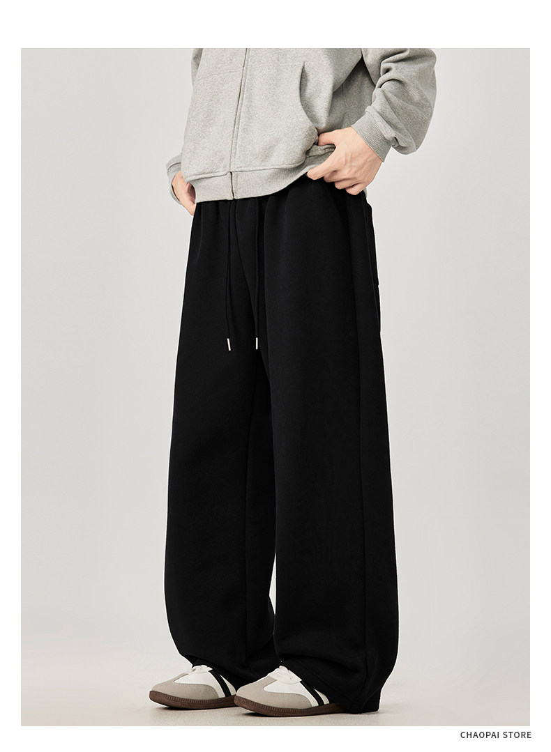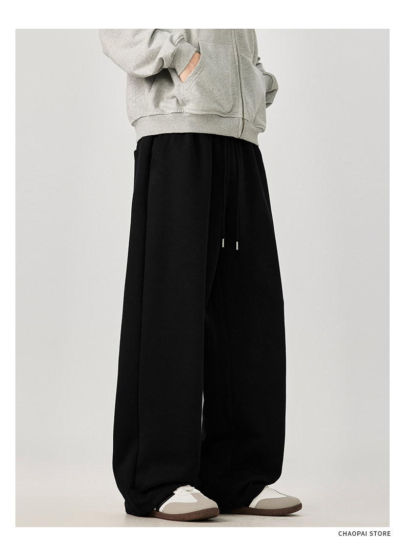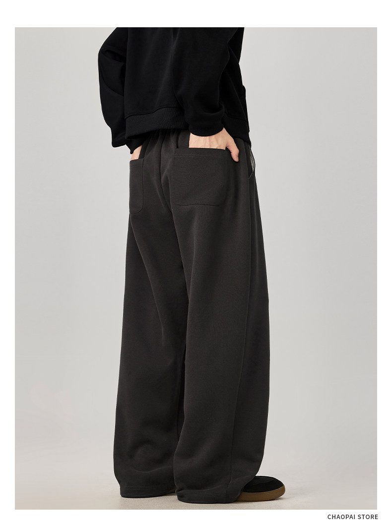 American-Style Casual Pants for Men, Spring and Autumn, Heavy Thickened Gray Sweatpants, Men's Drapey Loose Wide-Leg Straight-Leg Sports Pants