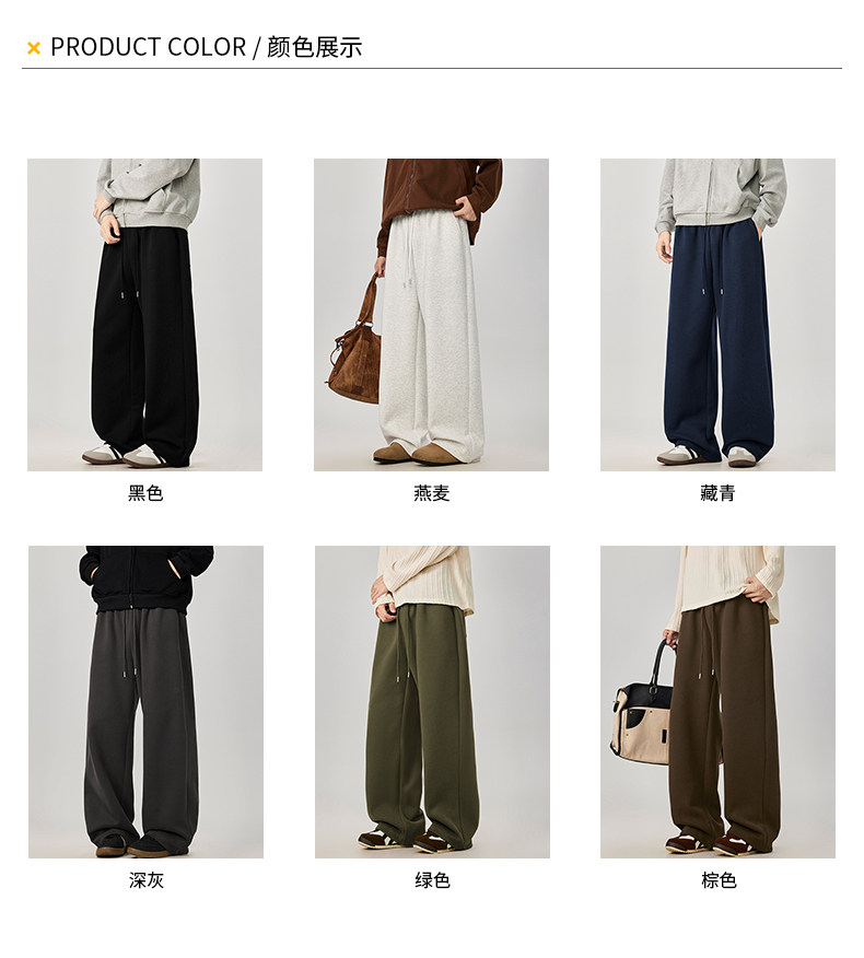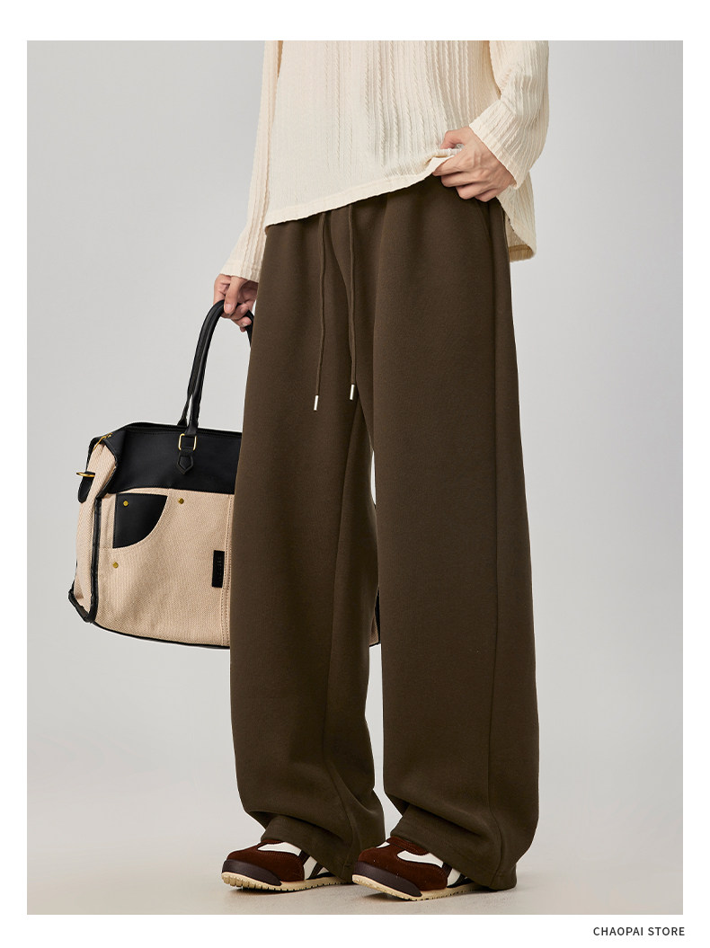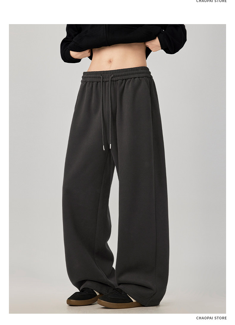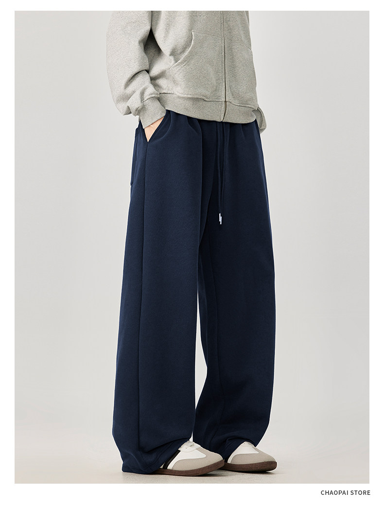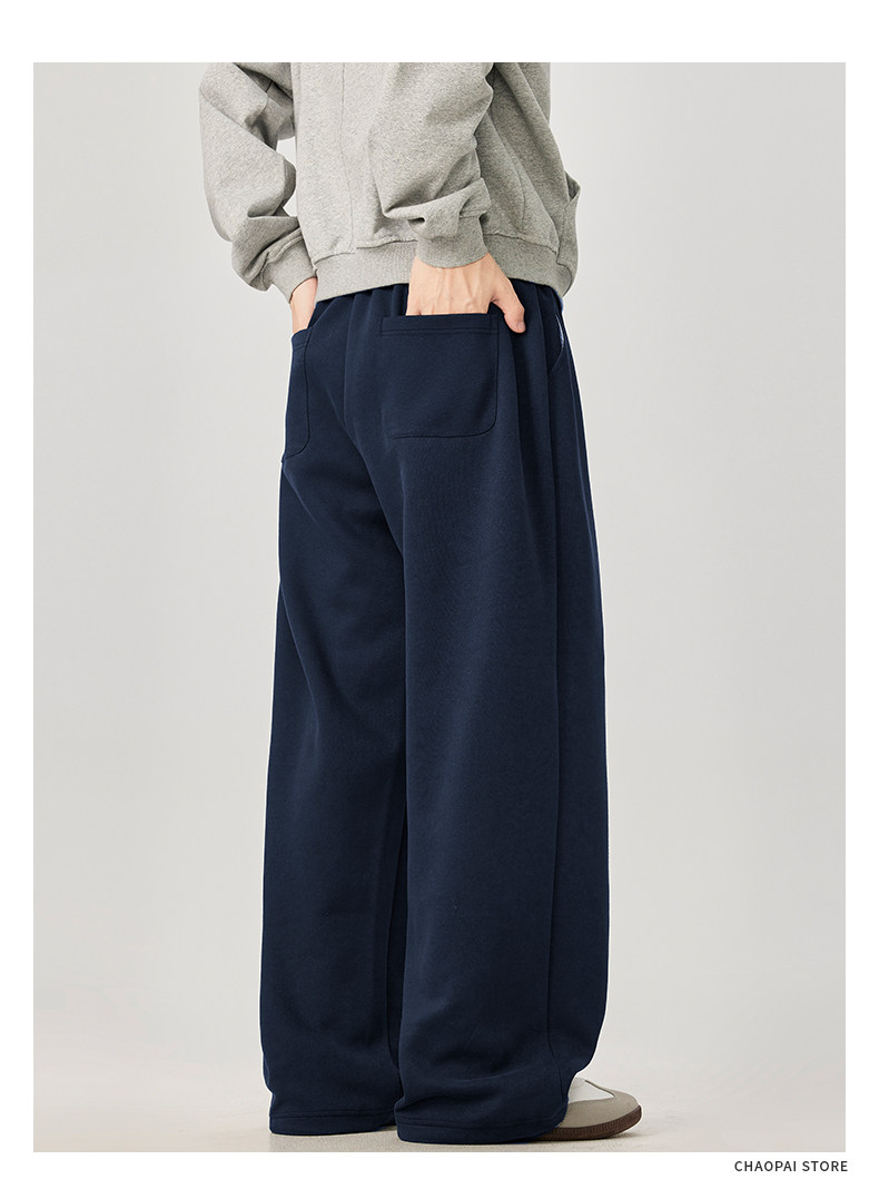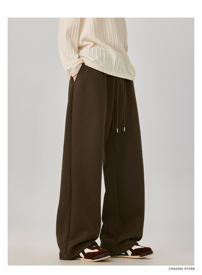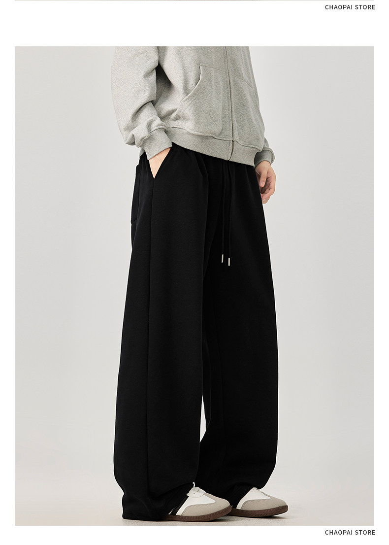 American-Style Casual Pants for Men, Spring and Autumn, Heavy Thickened Gray Sweatpants, Men's Drapey Loose Wide-Leg Straight-Leg Sports Pants
