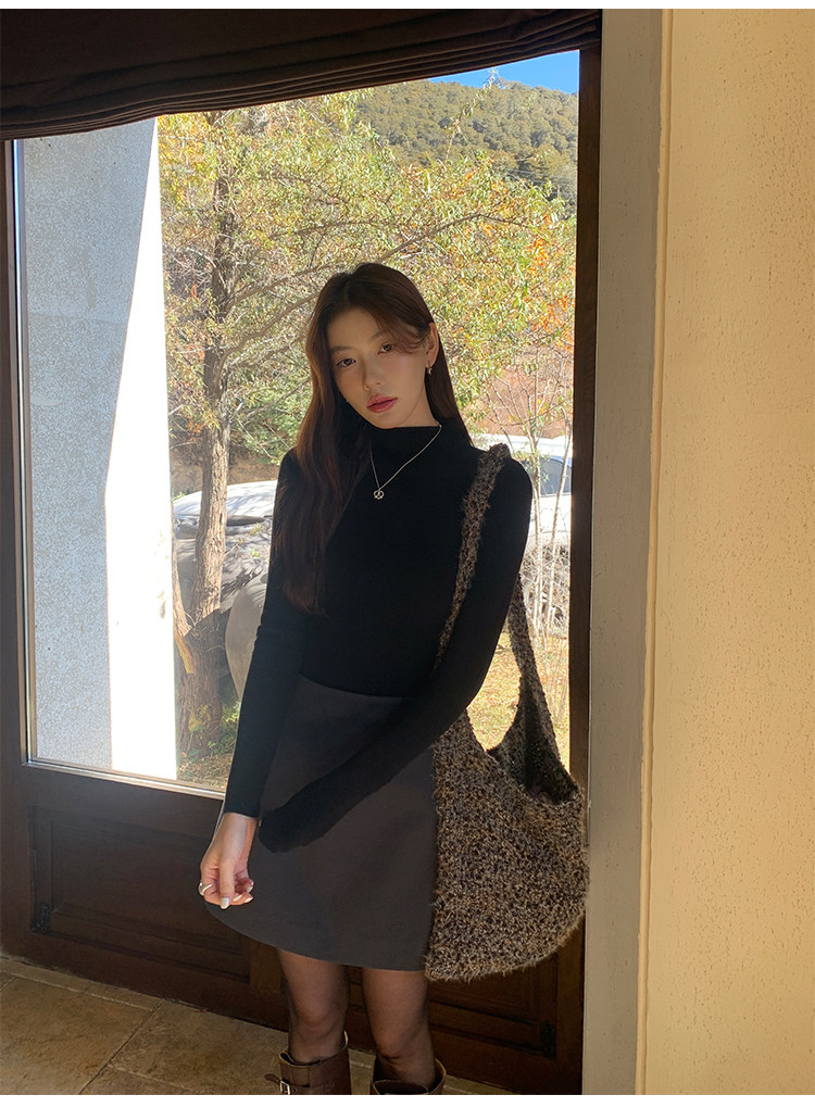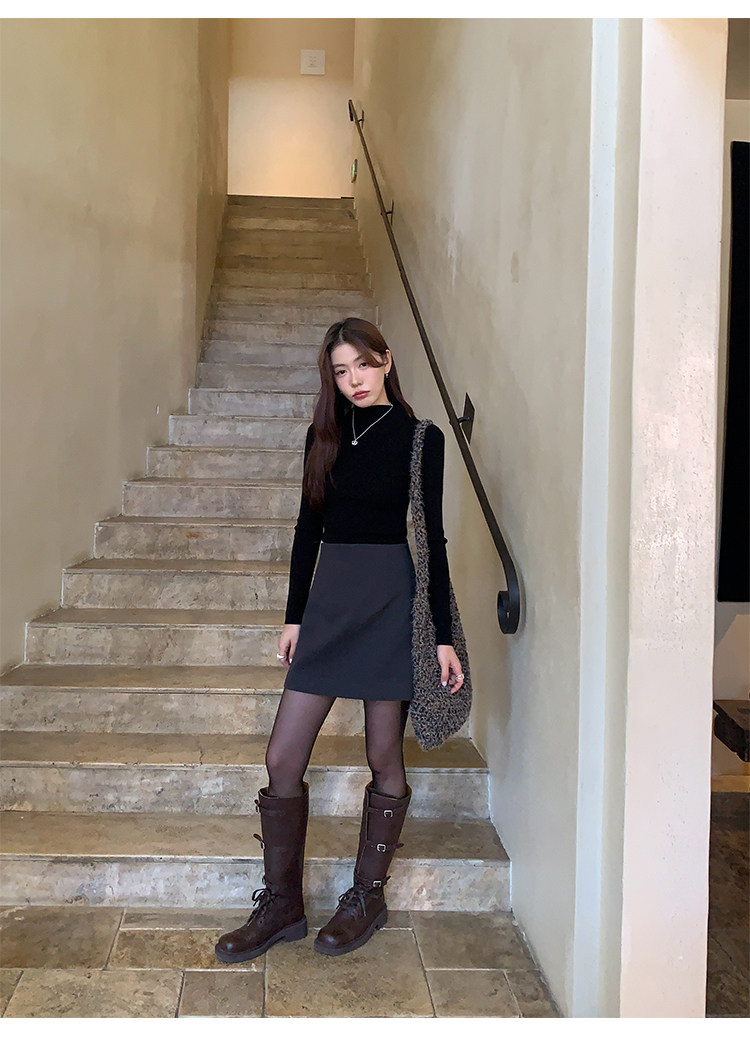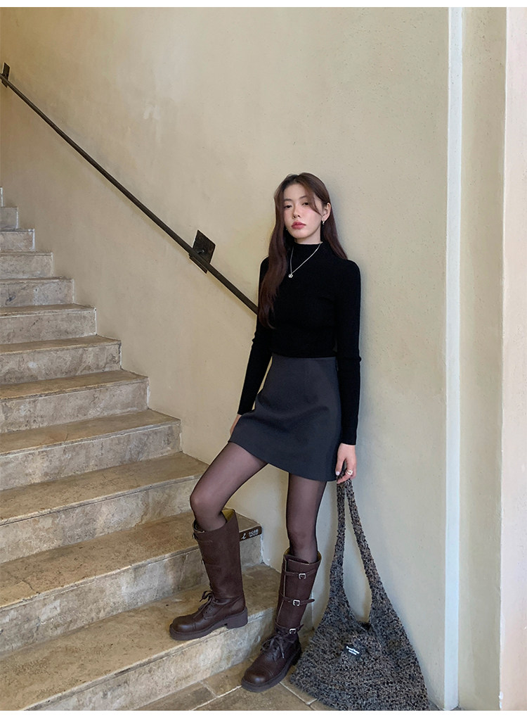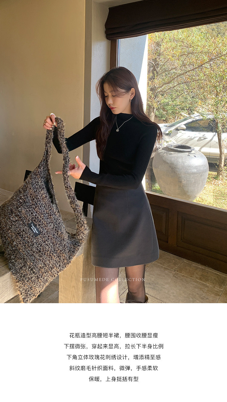 Pusumede Korean Women's Curves Black Short Skirt Half-Length Skirt Women's Brushed Hip-Hugging A-Line Skirt High-Waisted Elegant Skirt
