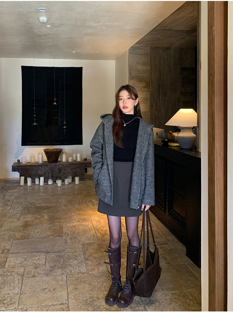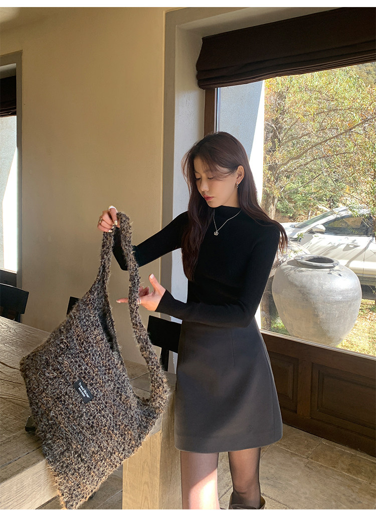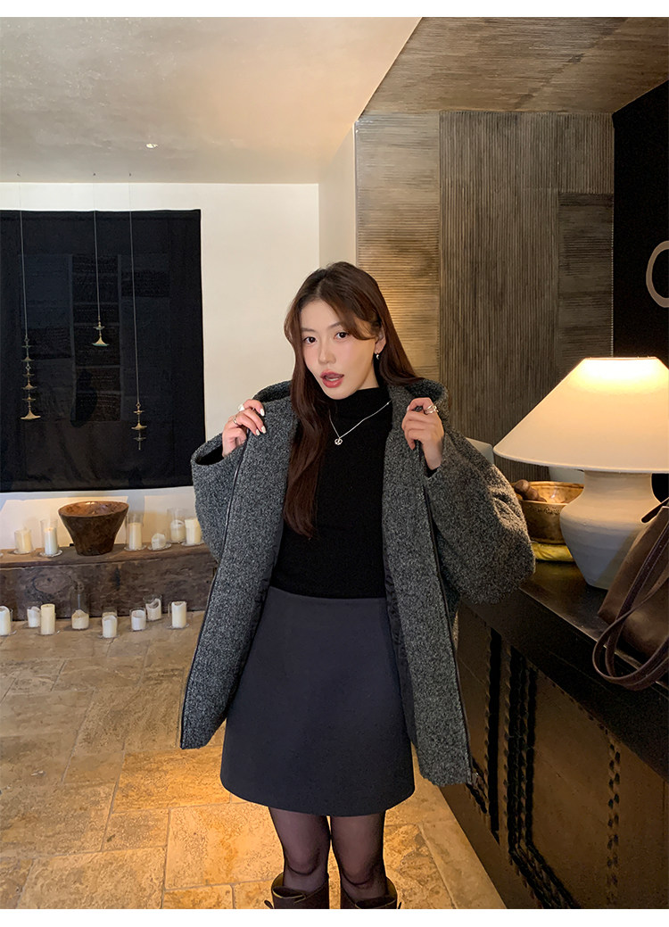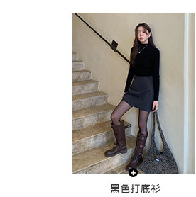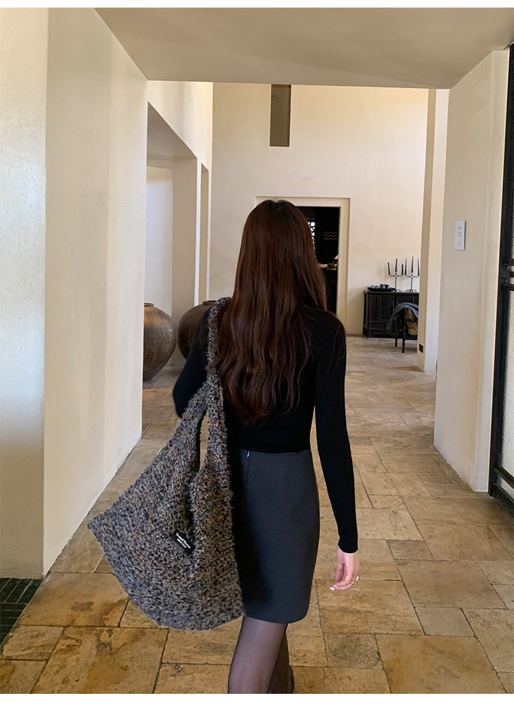 Pusumede Korean Women's Curves Black Short Skirt Half-Length Skirt Women's Brushed Hip-Hugging A-Line Skirt High-Waisted Elegant Skirt