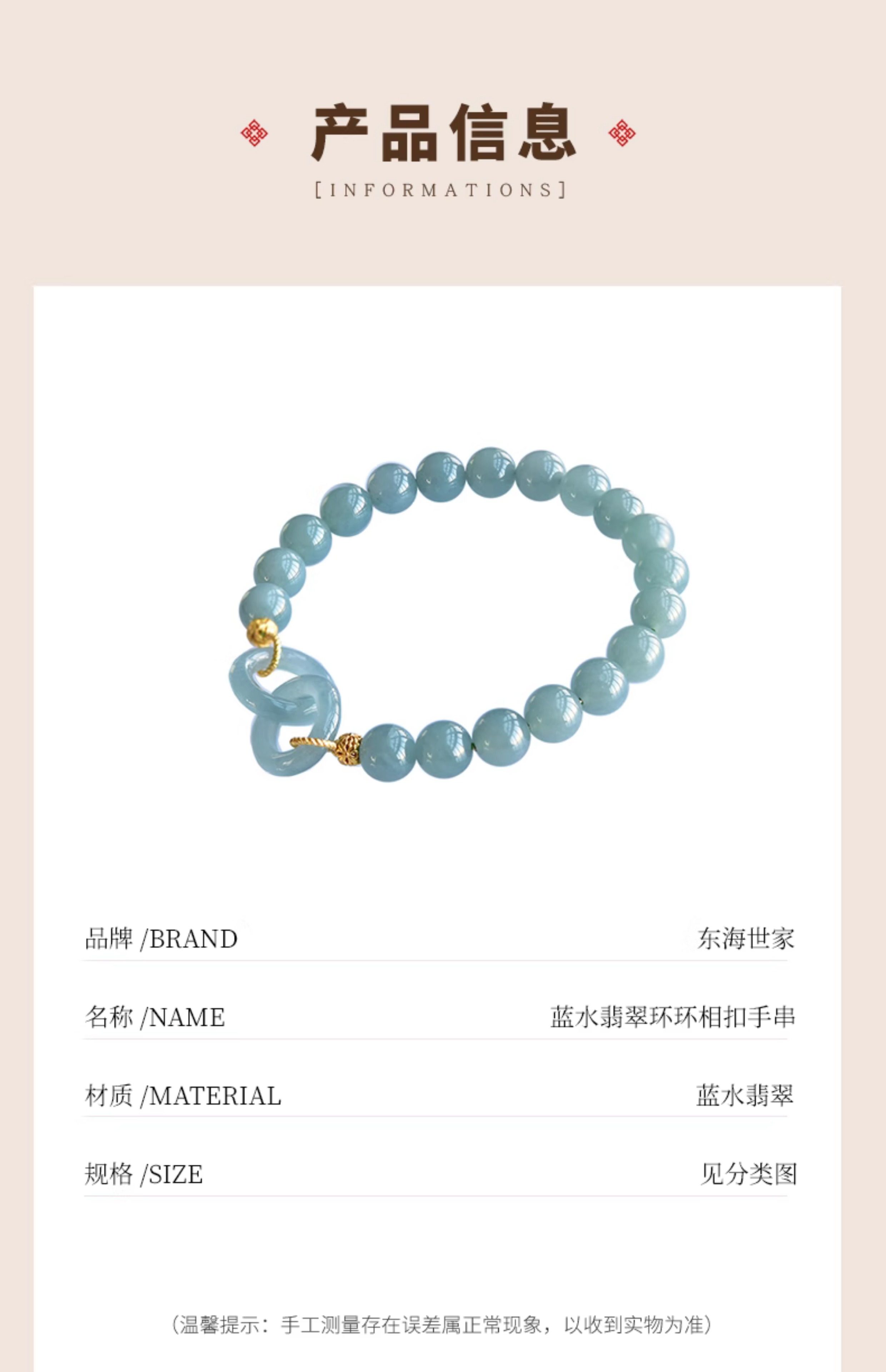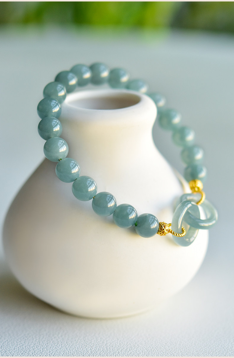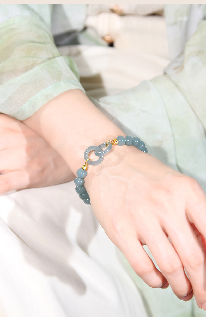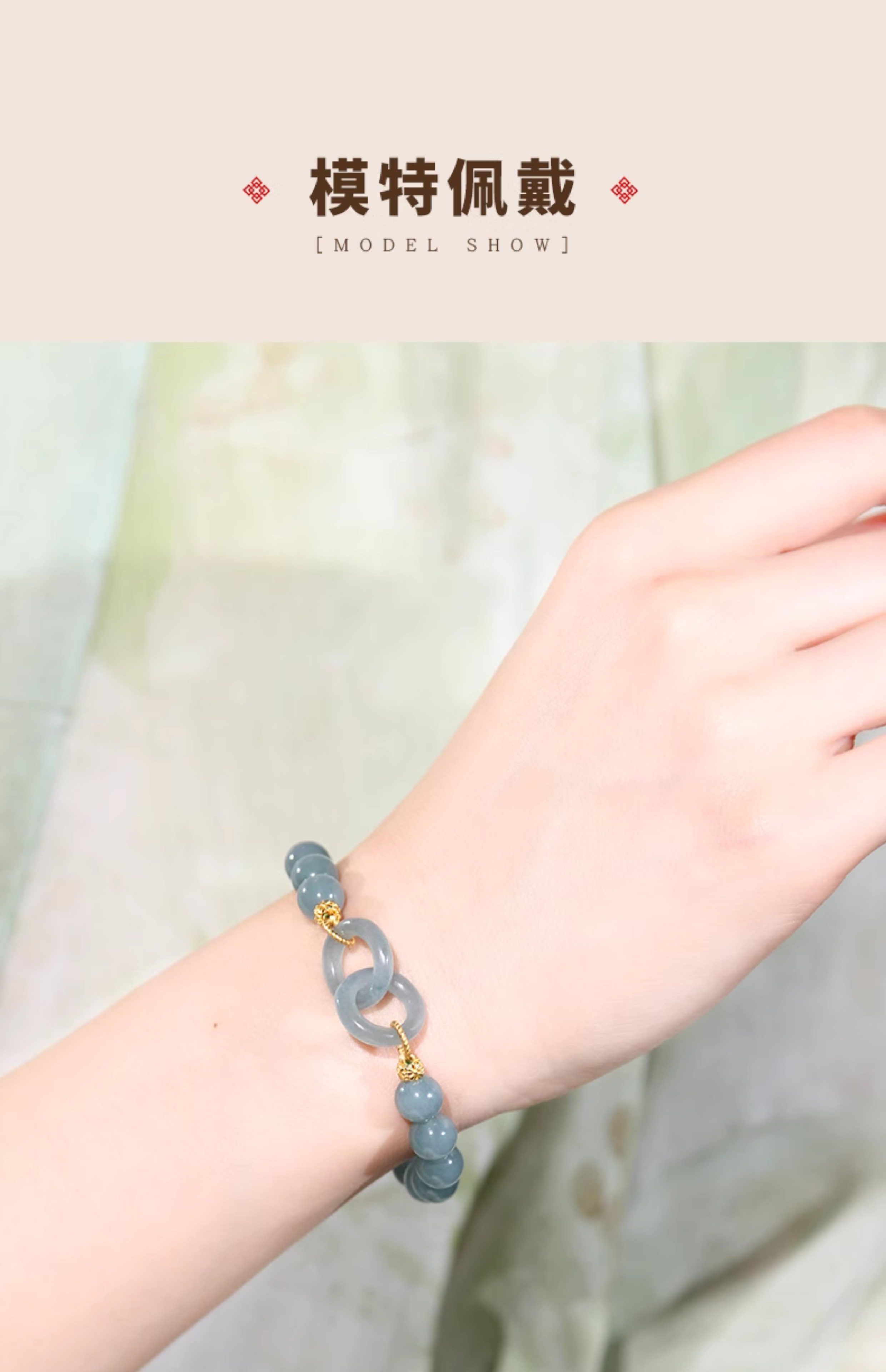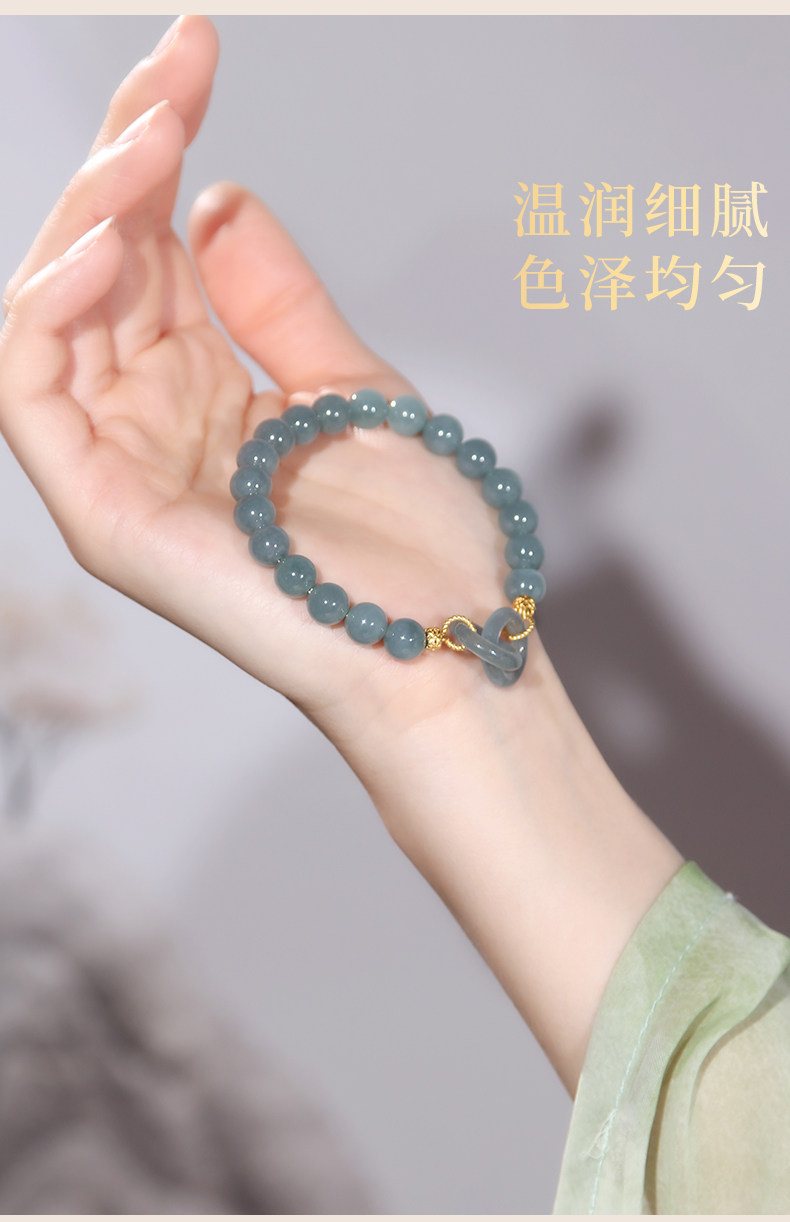 Blue Water Jade Bracelet for Women and Men, East China Sea Crystal Agate Chalcedony Jade Loose Beads Interlocking Jade Bracelet