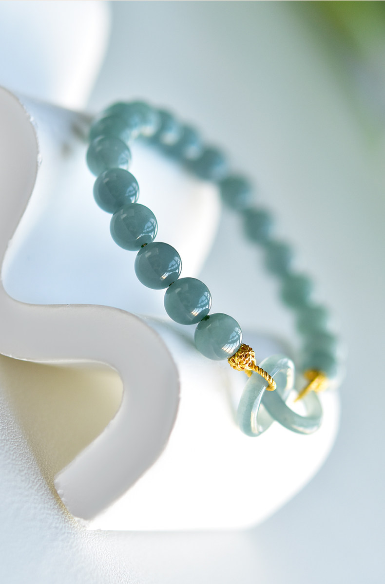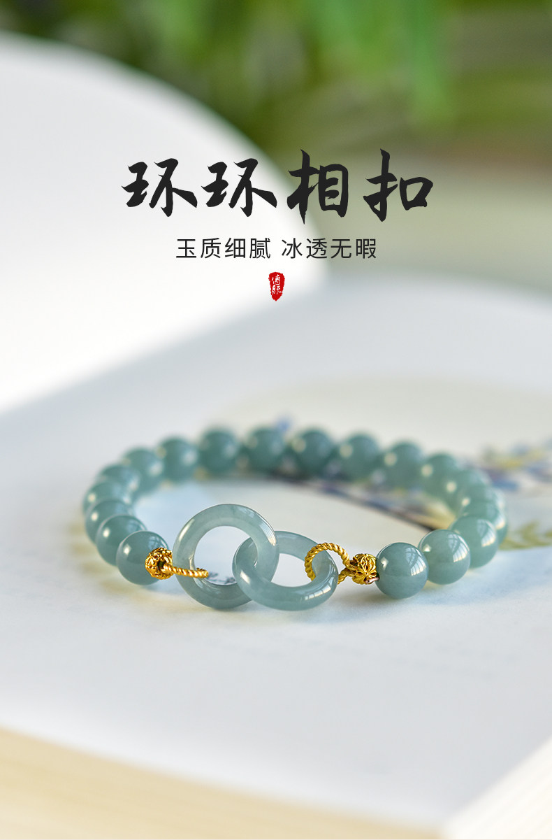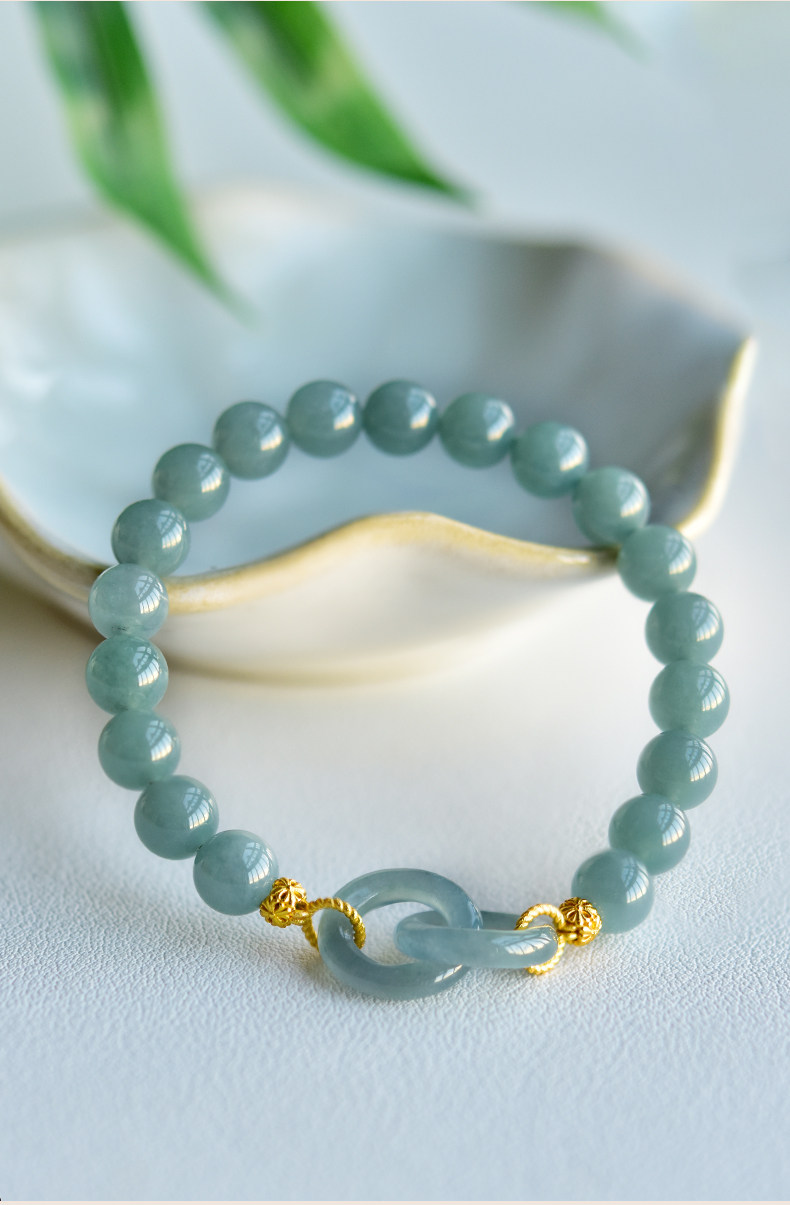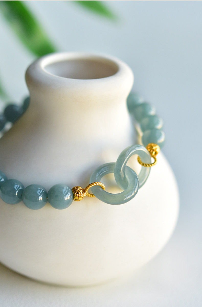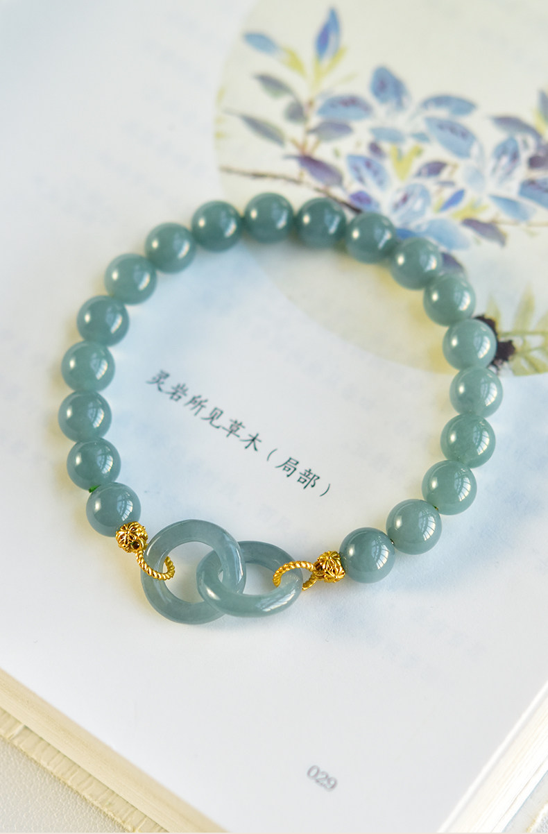 Blue Water Jade Bracelet for Women and Men, East China Sea Crystal Agate Chalcedony Jade Loose Beads Interlocking Jade Bracelet