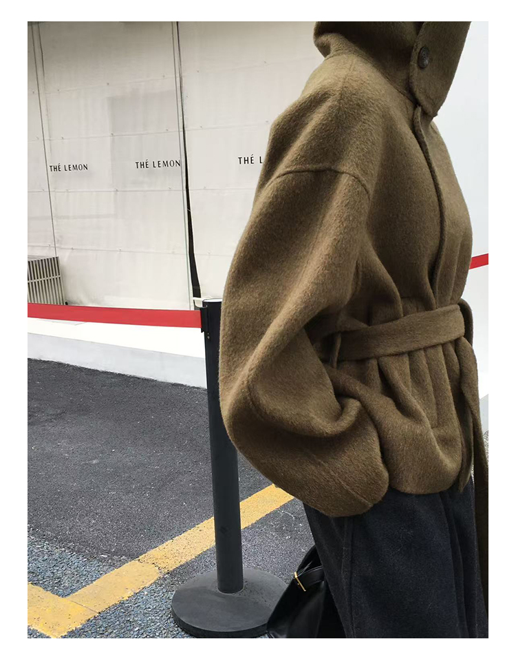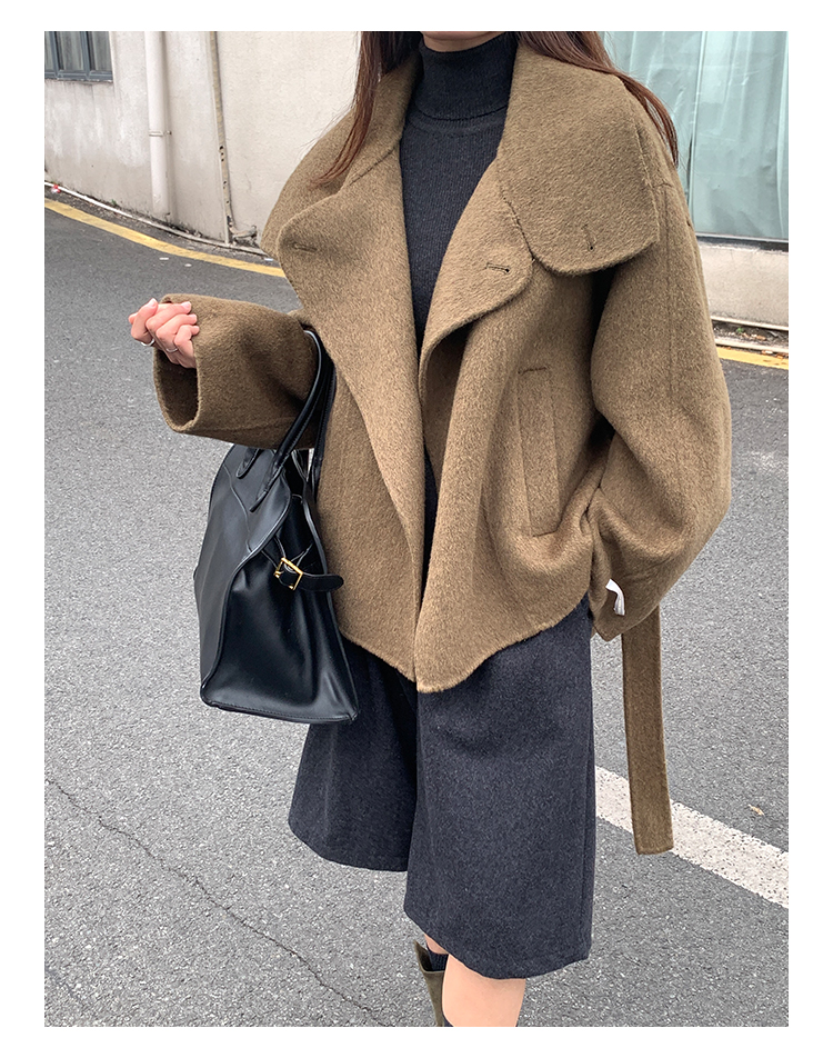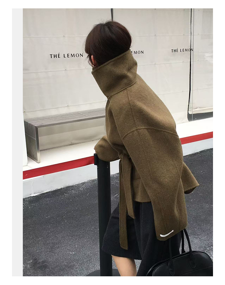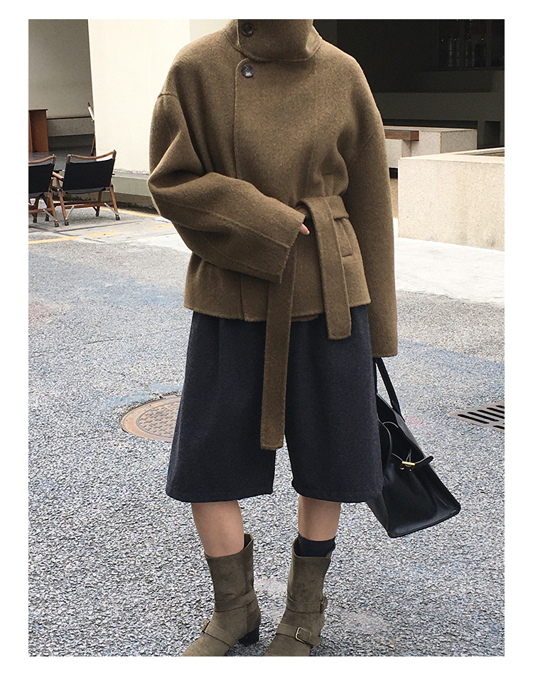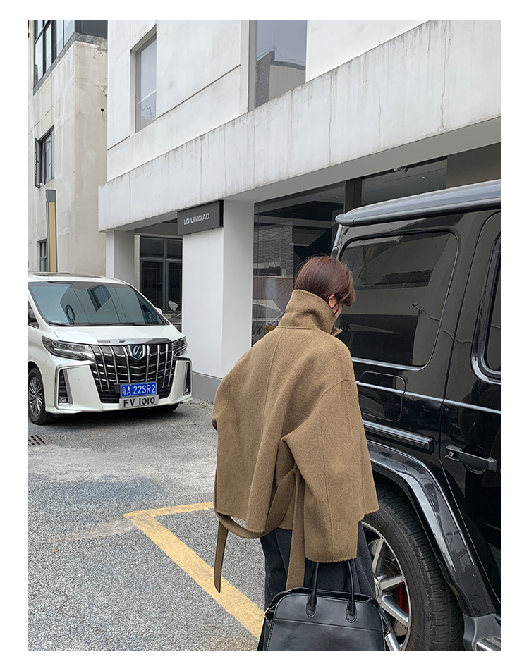 2025 New Autumn Style Jin Minxi's Same Style Korean Style Loose Stand-Up Collar Double-Sided Wool Outwear Short Lace-Up Woolen Outwear