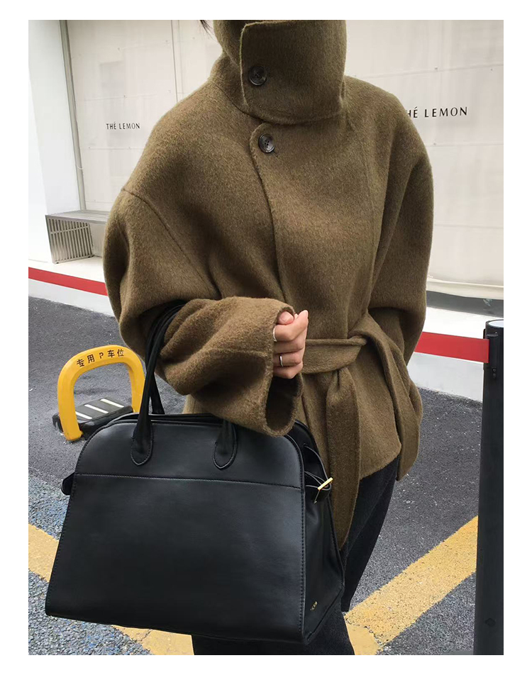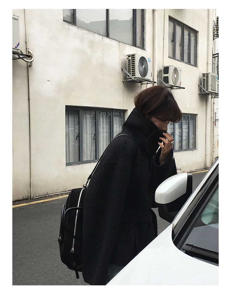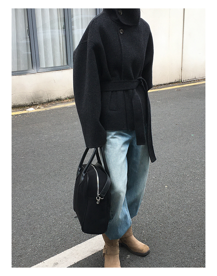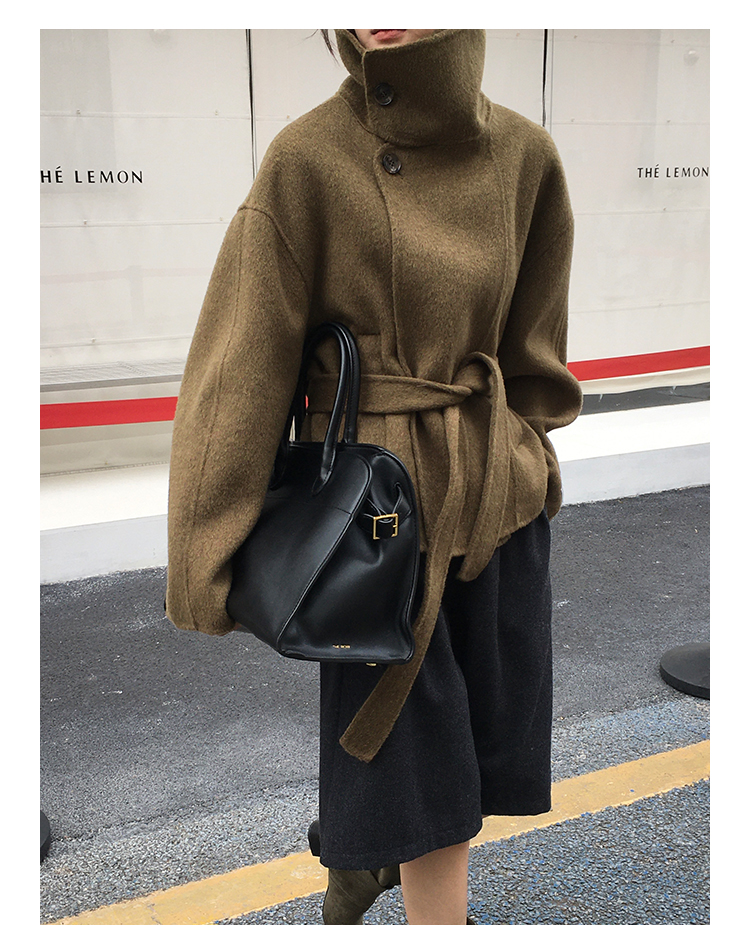 2025 New Autumn Style Jin Minxi's Same Style Korean Style Loose Stand-Up Collar Double-Sided Wool Outwear Short Lace-Up Woolen Outwear