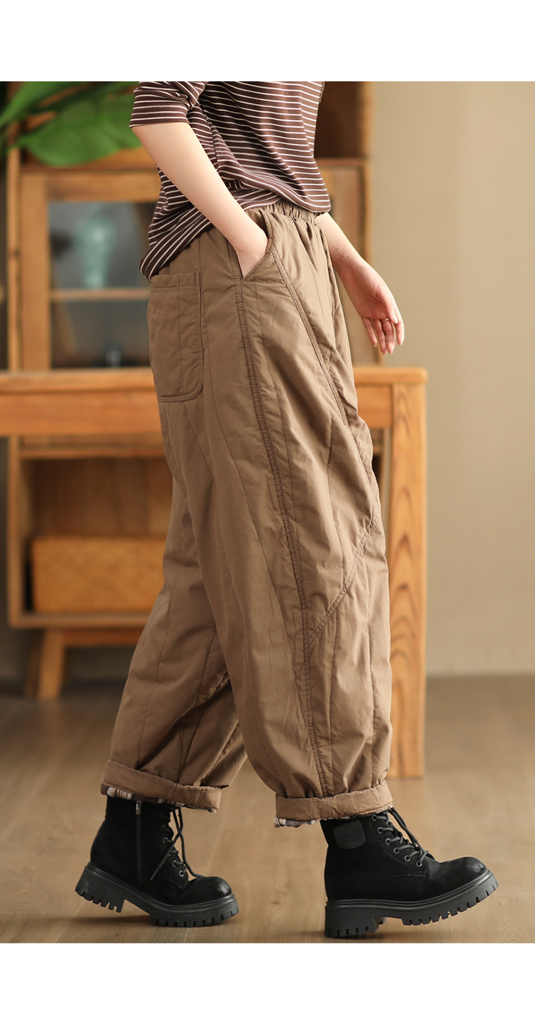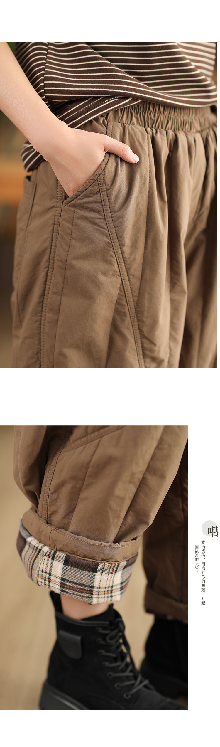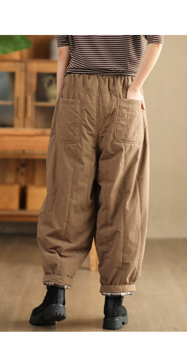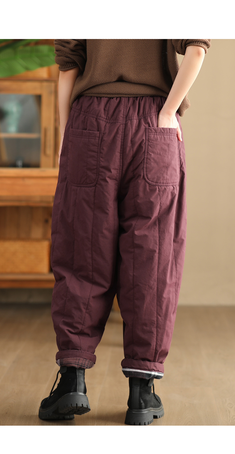 Yuanyuanmeiyi Winter High-Density Cotton Thickened Quilted Cotton Pants for Women with Elastic Waist and Plaid Lining, Warm Harem Pants