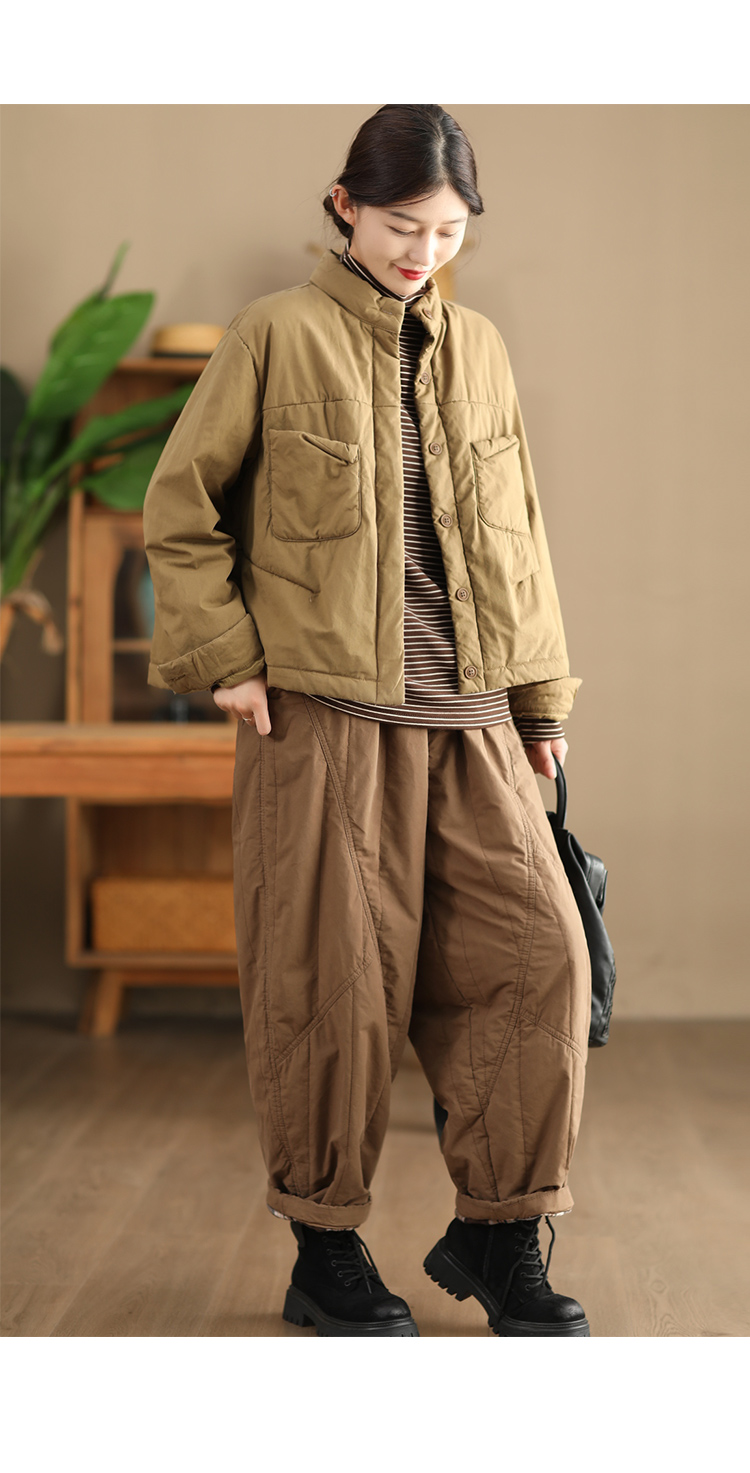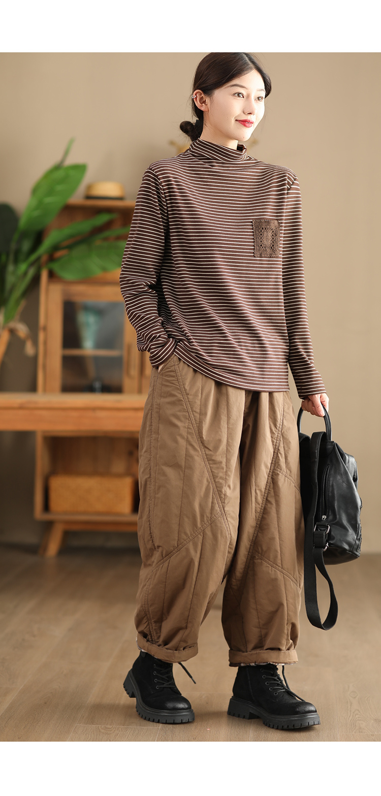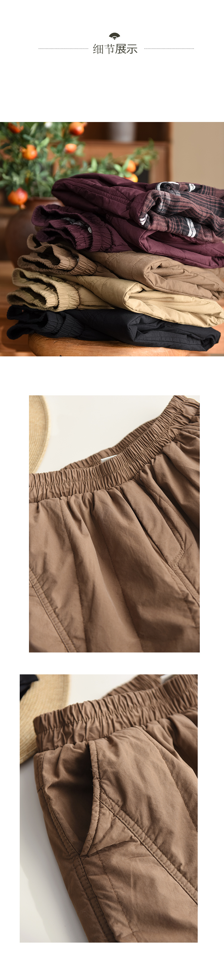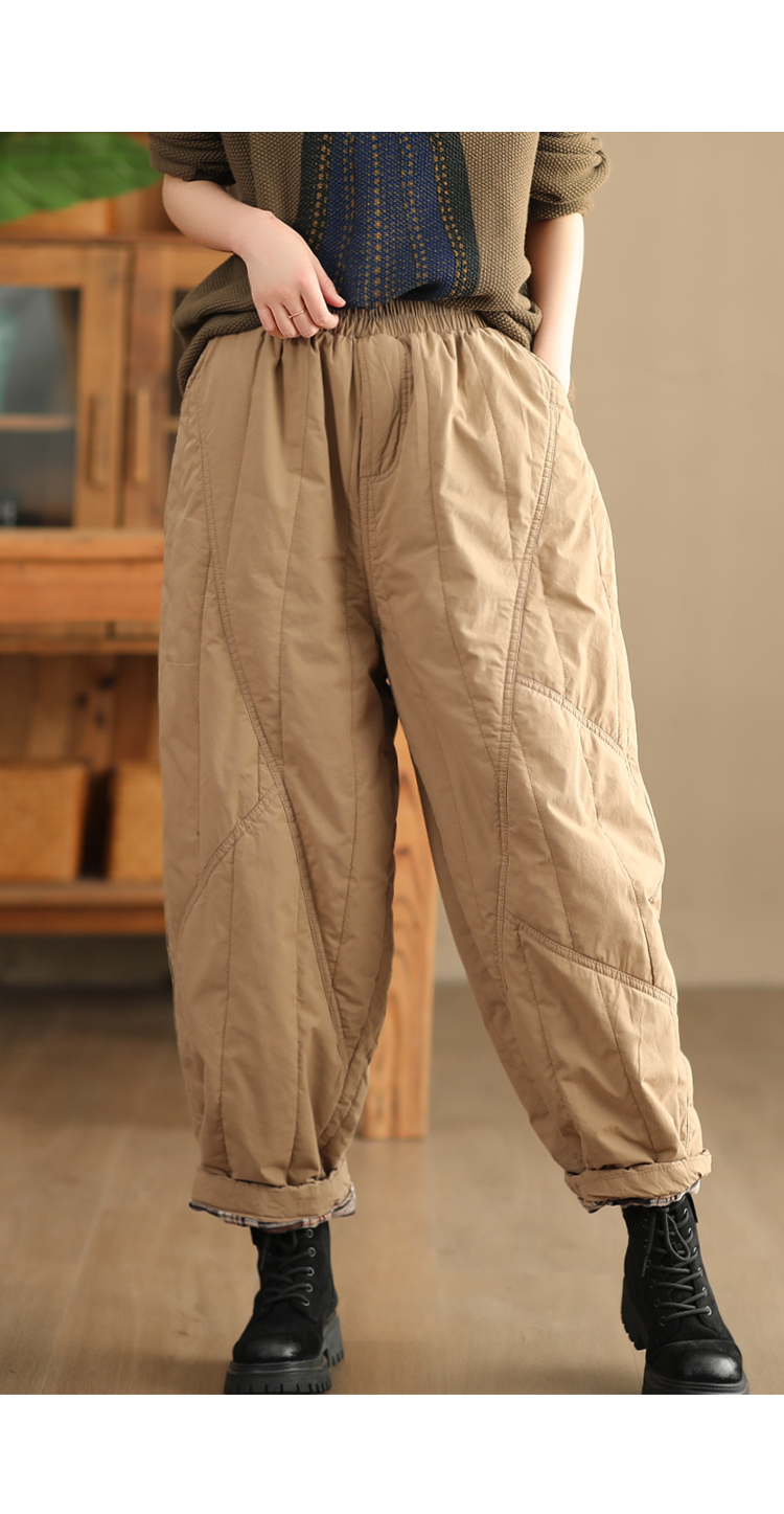 Yuanyuanmeiyi Winter High-Density Cotton Thickened Quilted Cotton Pants for Women with Elastic Waist and Plaid Lining, Warm Harem Pants