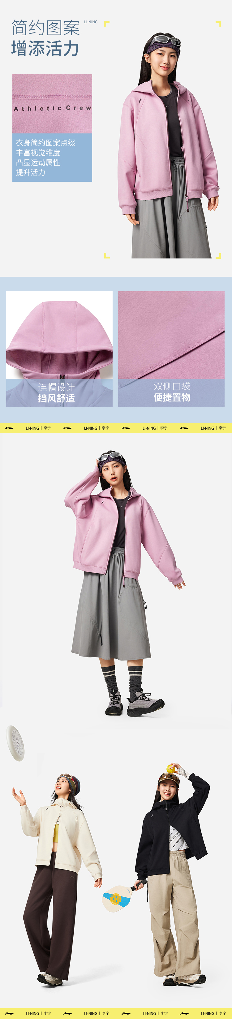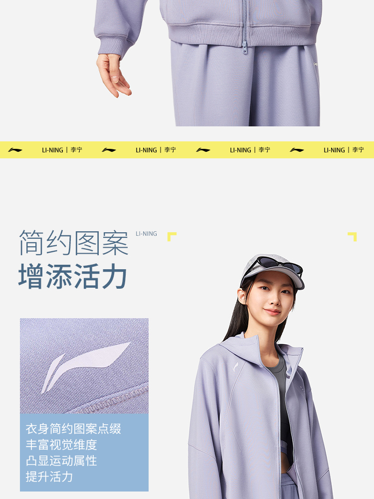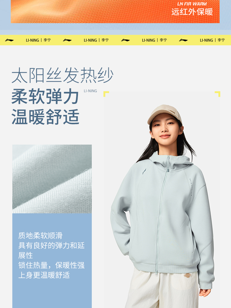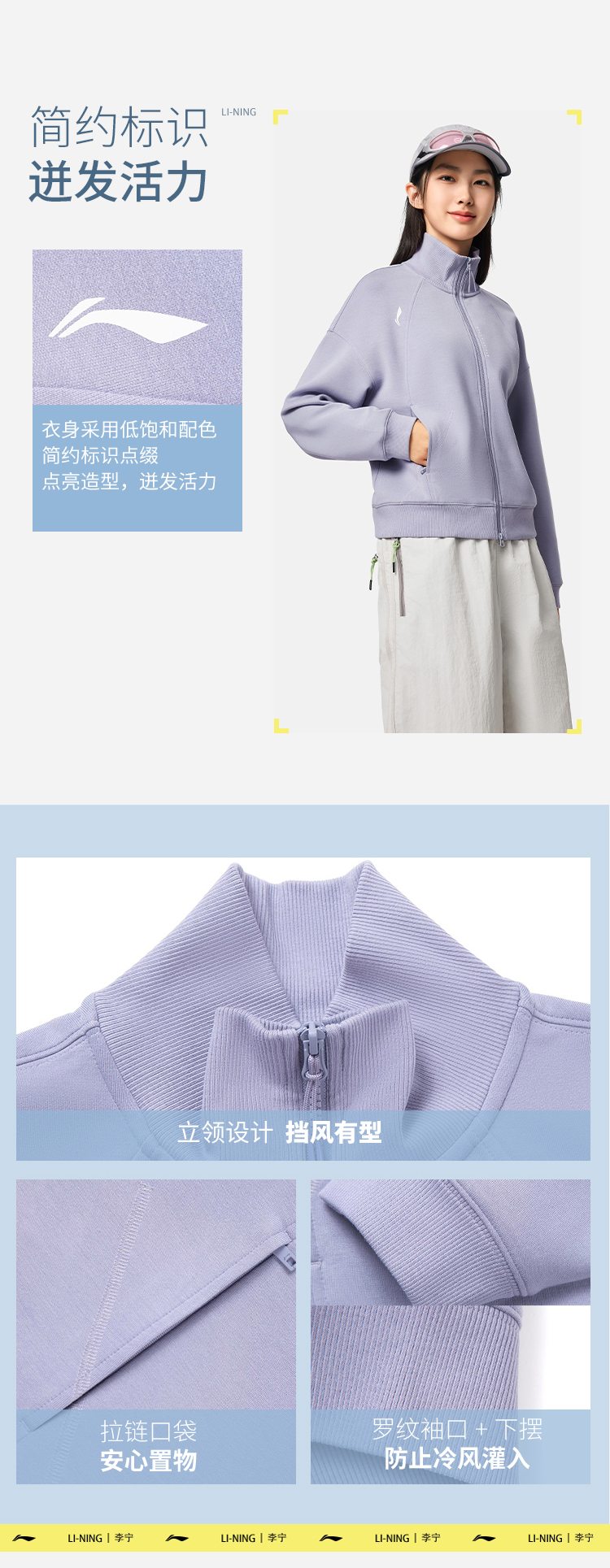 [Double 11 ] Li-Ning Women's Walking Jacket Autumn/Winter New Women's Clothing Fleece-Lined Top Zipper Sports Sweatshirt