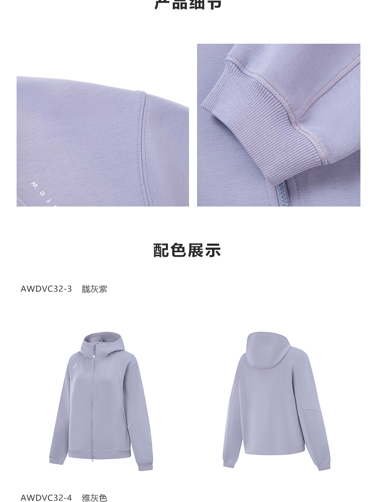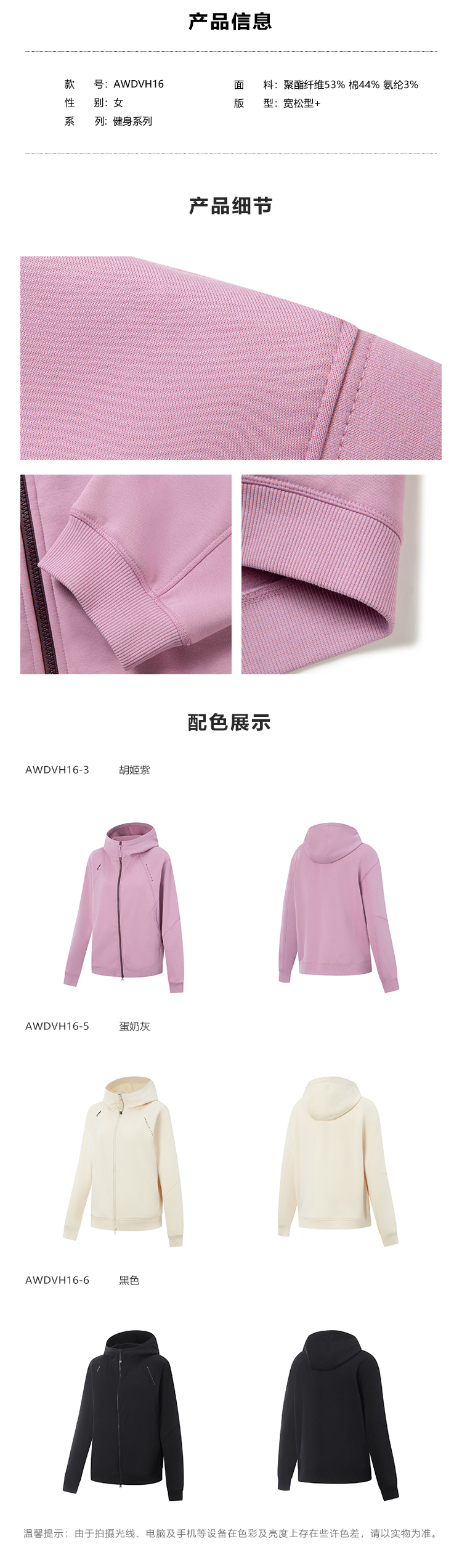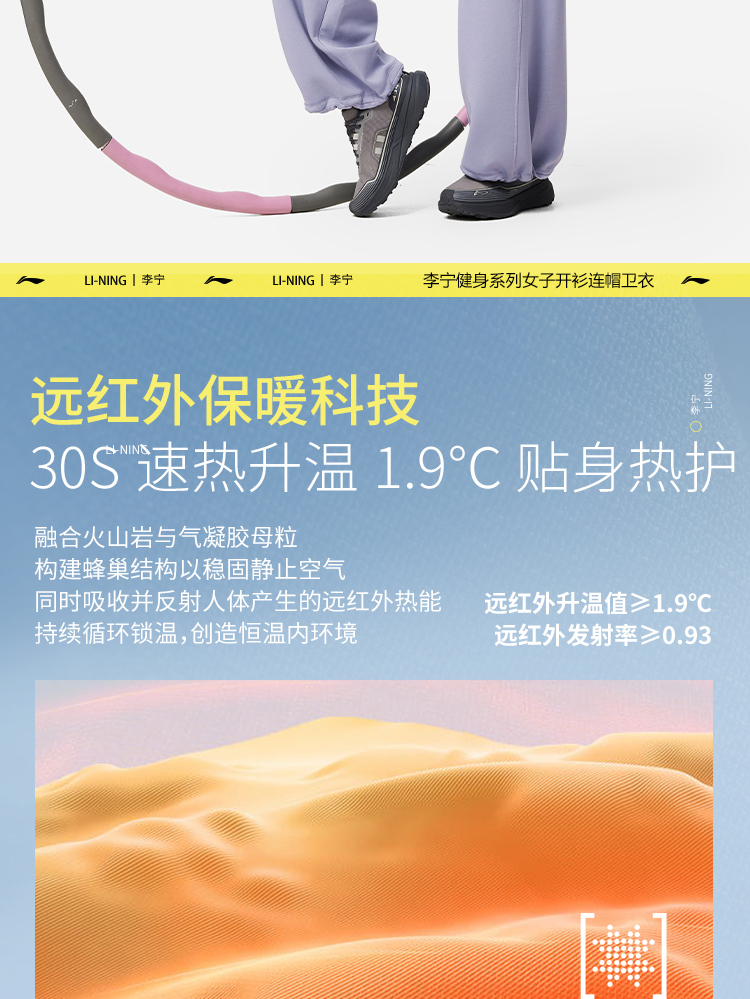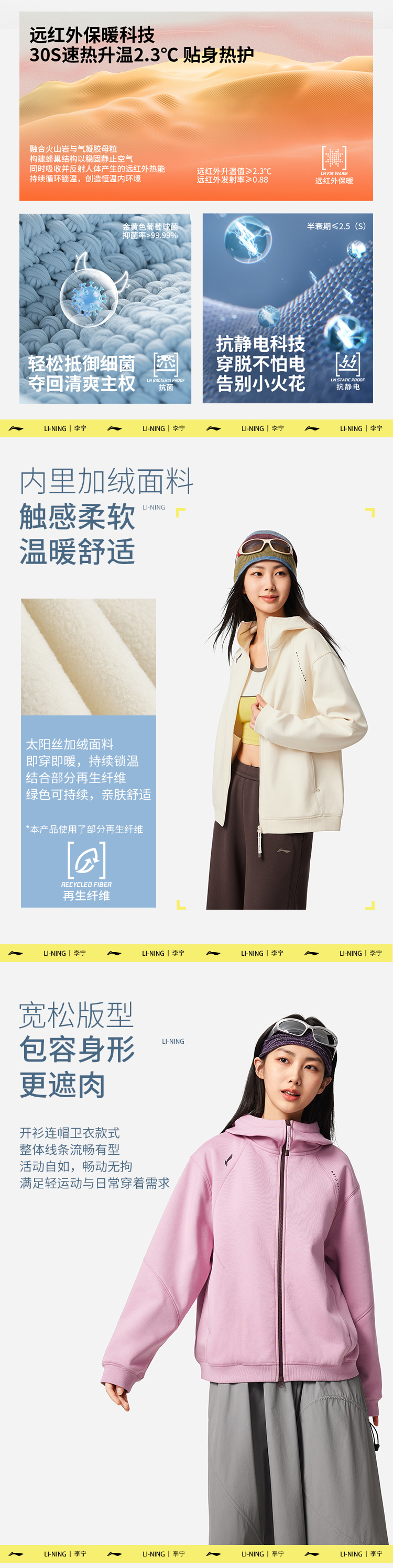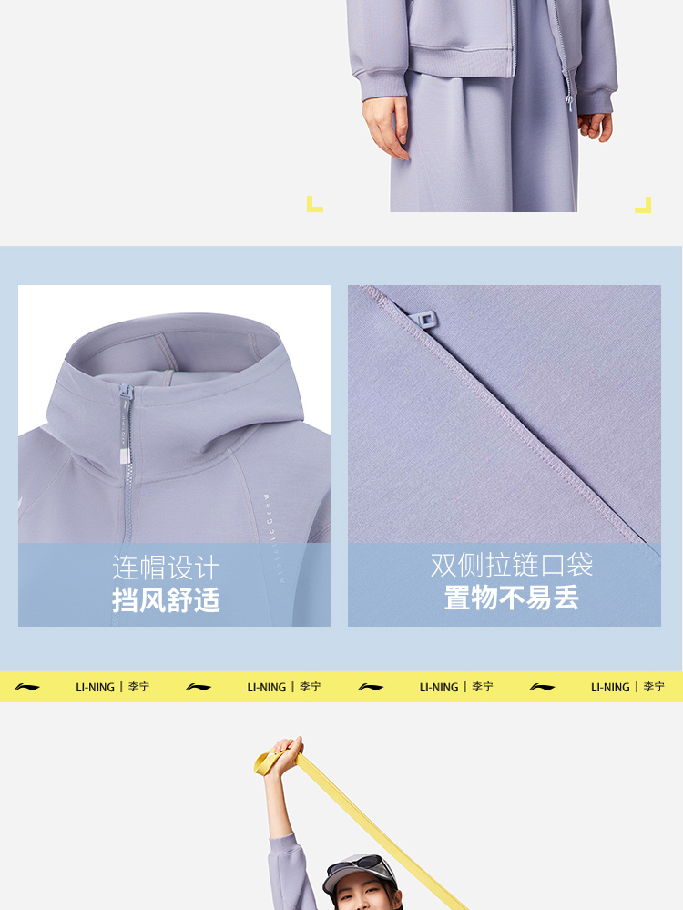 [Double 11 ] Li-Ning Women's Walking Jacket Autumn/Winter New Women's Clothing Fleece-Lined Top Zipper Sports Sweatshirt
