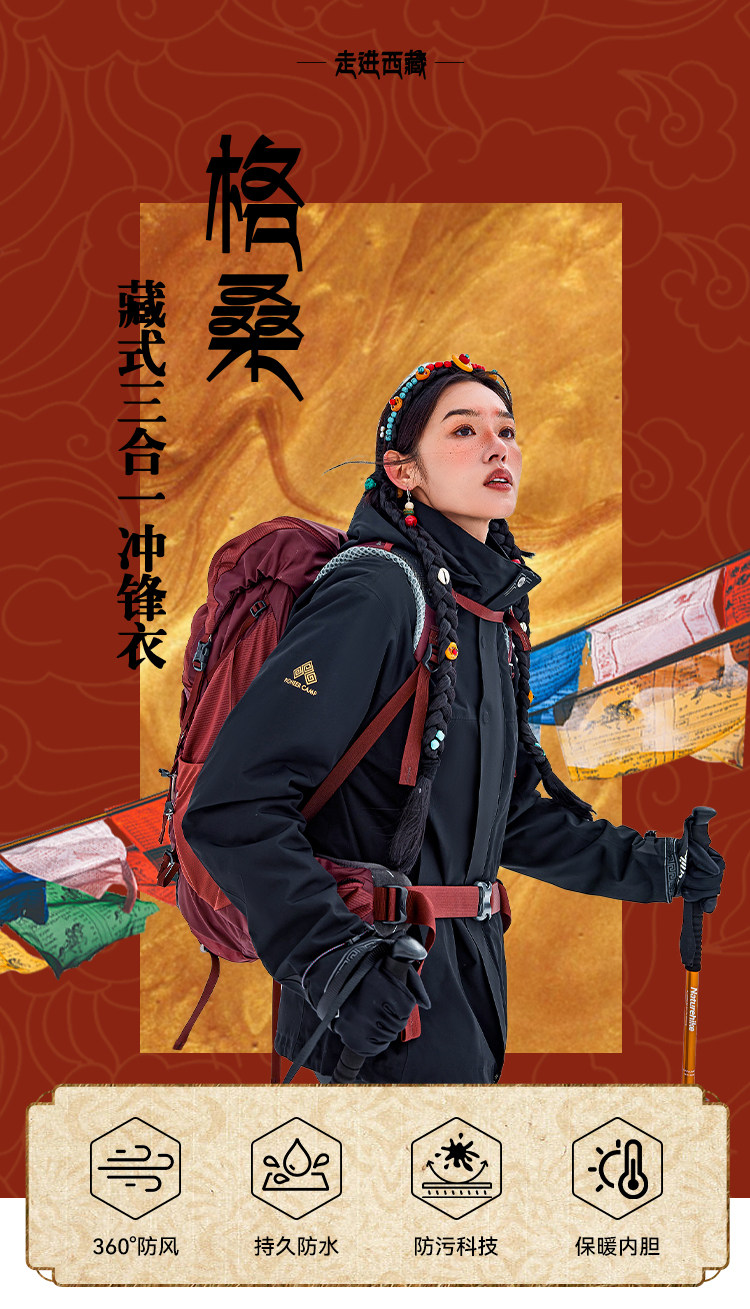 【Gesang】Tibetan-Style Storm Jacket, Rainproof Fleece Detachable Three-In-One Women's Mountaineering Jacket