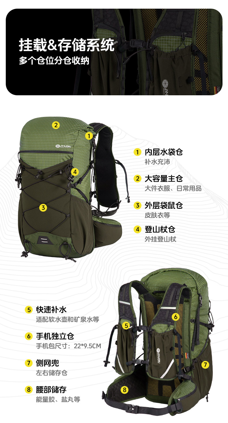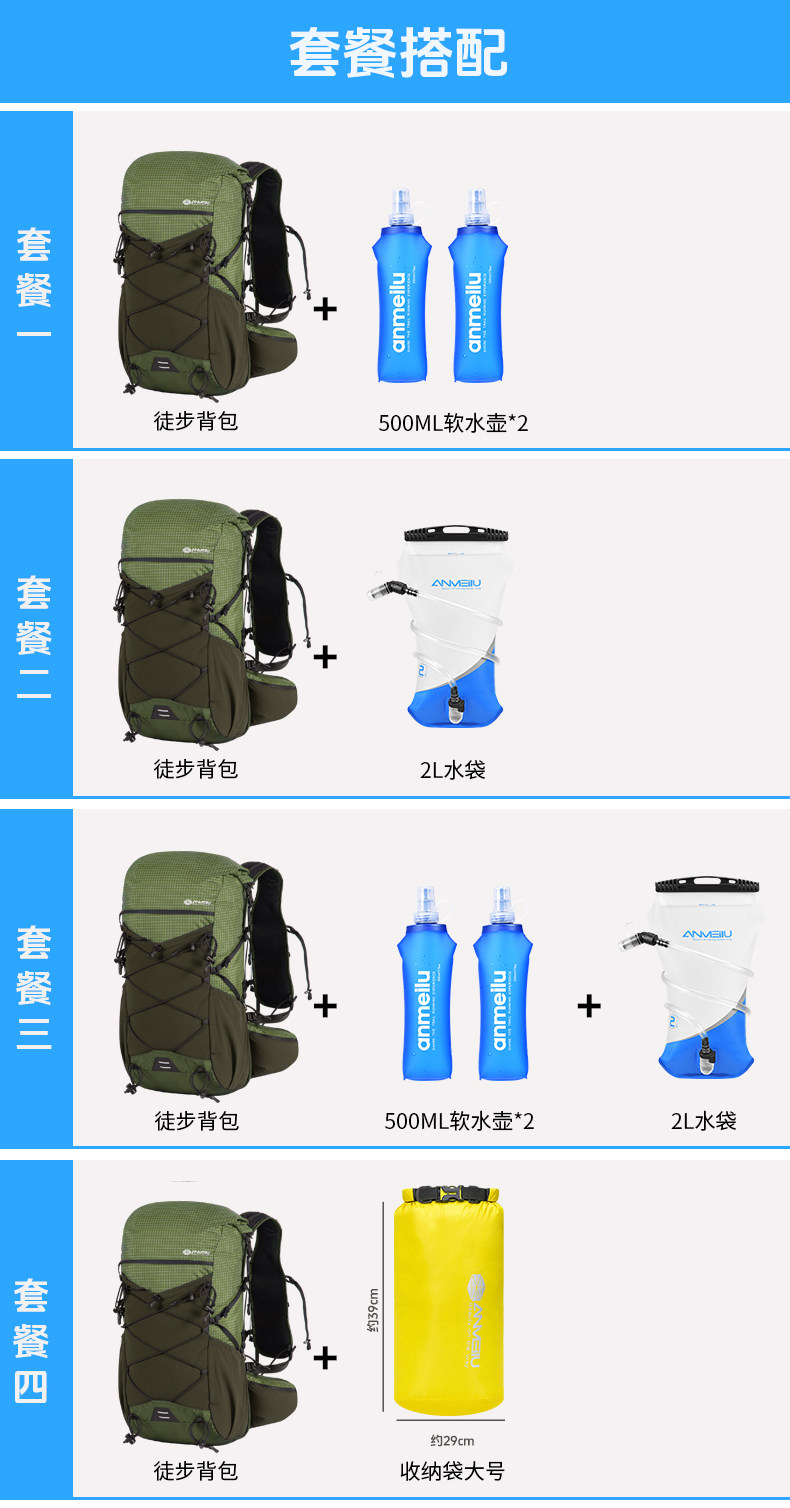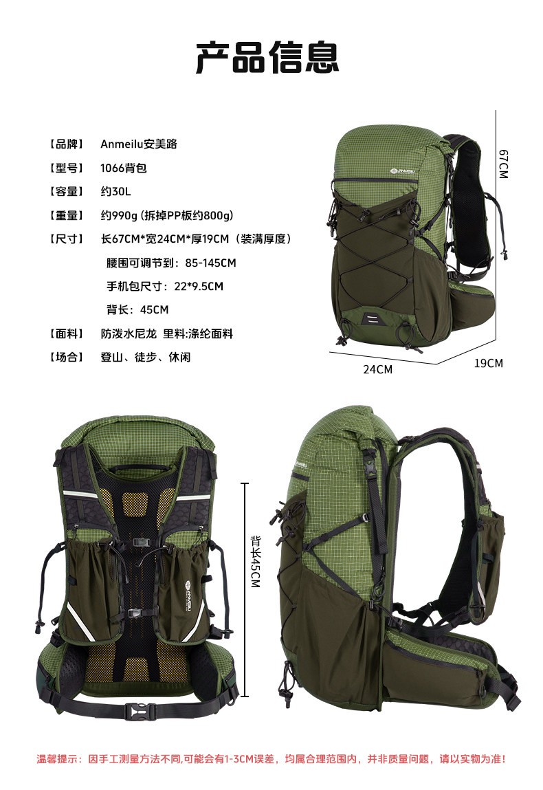 Anmeilu Outdoor Backpack Mountaineering Backpack 30L Mountain Series Lightweight Large Capacity Travel Hiking Cross-Country Water Bag Bag