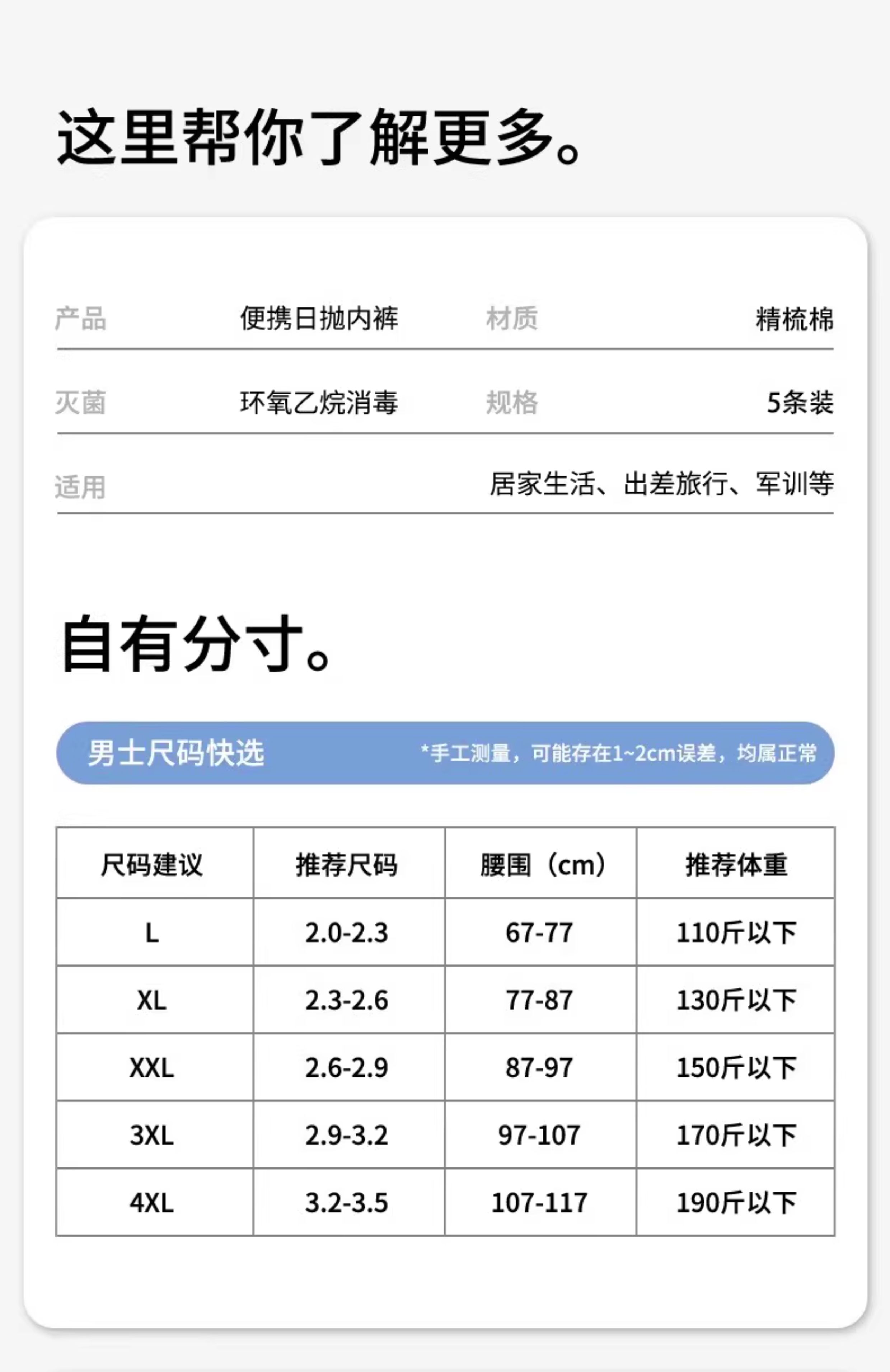 2024 Disposable Men's Boxer Briefs, Pure Cotton, Sterilized, Travel-Friendly, Large Size, Daily Use, No-Wash Shorts