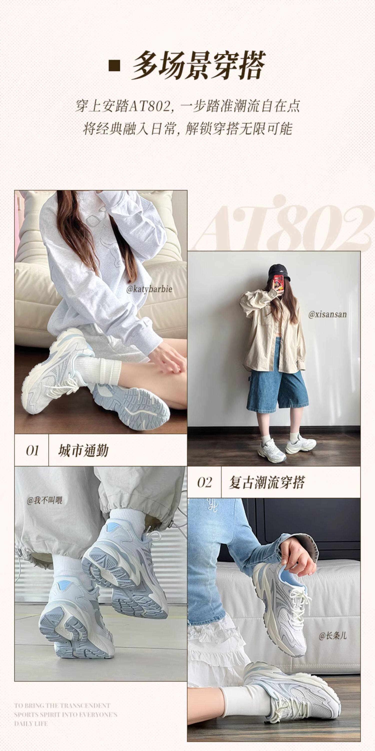 Anta At802 | Retro Running Shoes with Cushioning and Rebound, Casual Shoes for Women, Trendy Versatile Sports Shoes, Soft Sole Women's Shoes