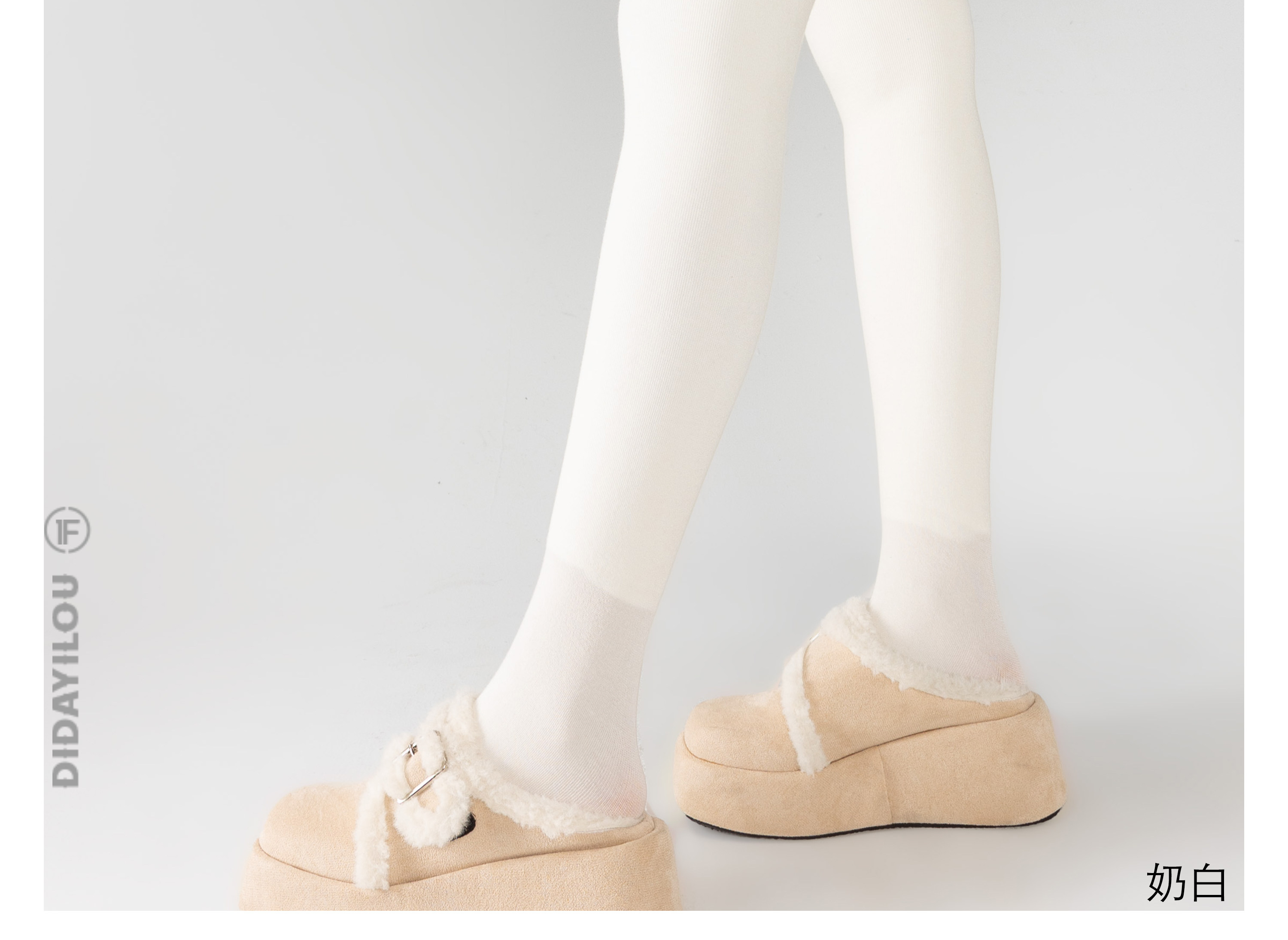 Arrive at the First Floor and Get Thickened Fleece-Lined White Pantyhose for Women, Suitable for Wearing Outside in Autumn and Winter, Warm and Versatile, Solid Color Lolita Leggings
