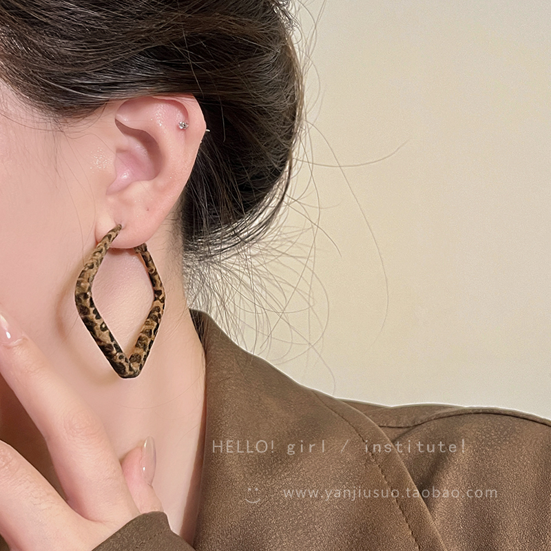 Retro Leopard Print Hong Kong Style Hoop Earrings for Women 2025 New Hot Style Fashionable Exaggerated Earrings High-End Elegant Earrings
