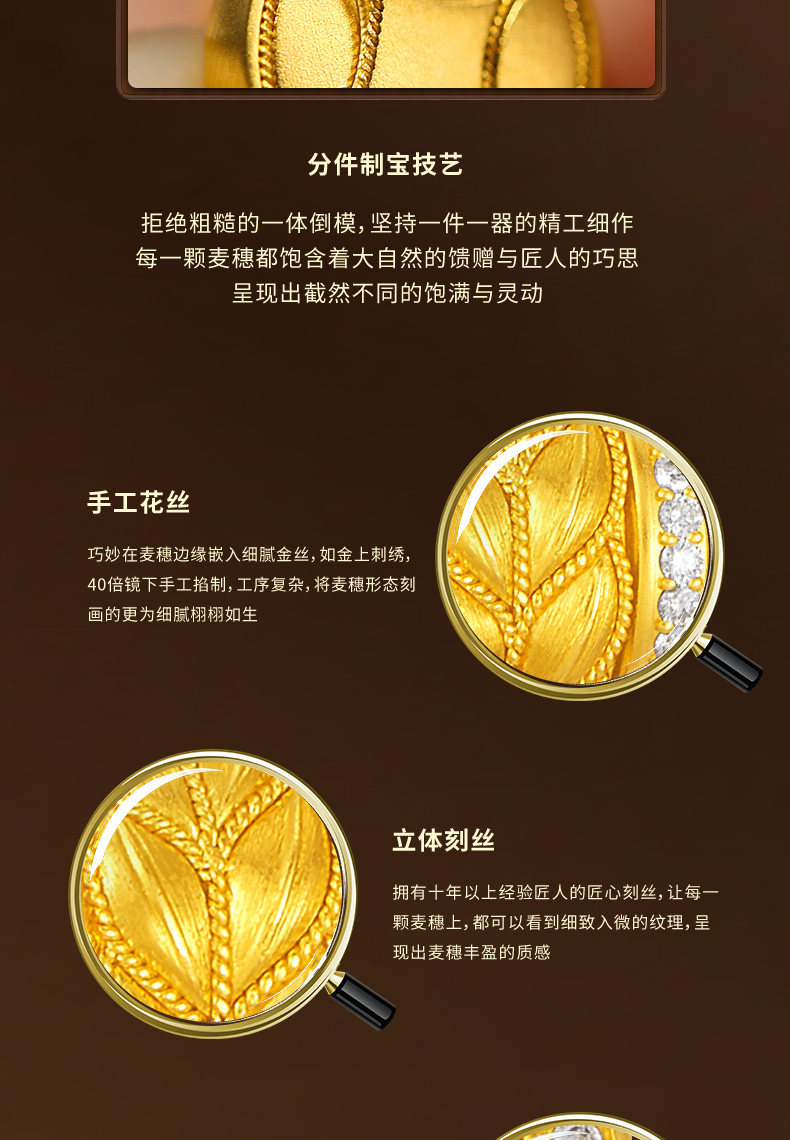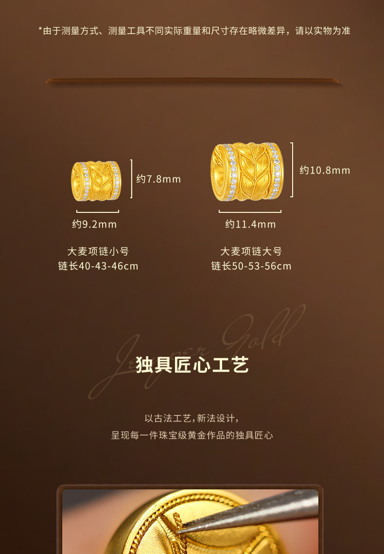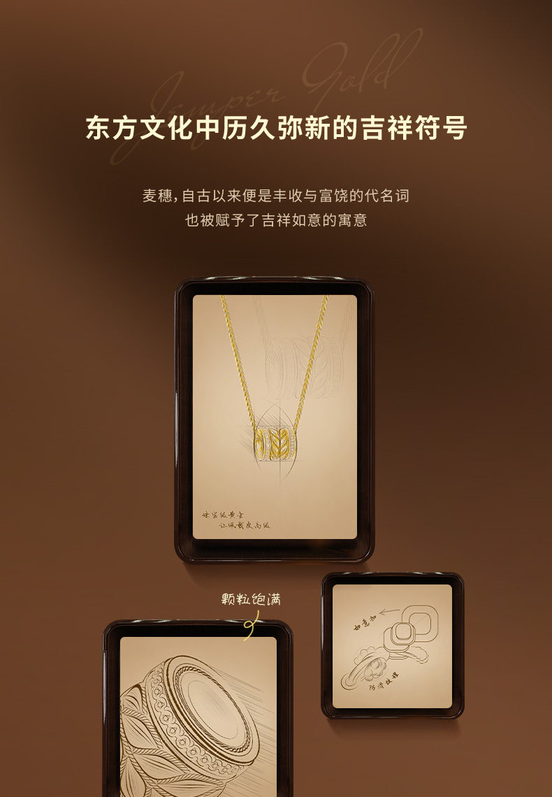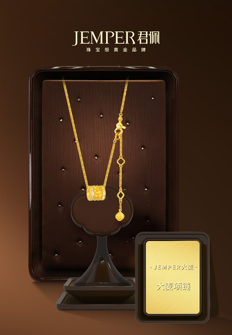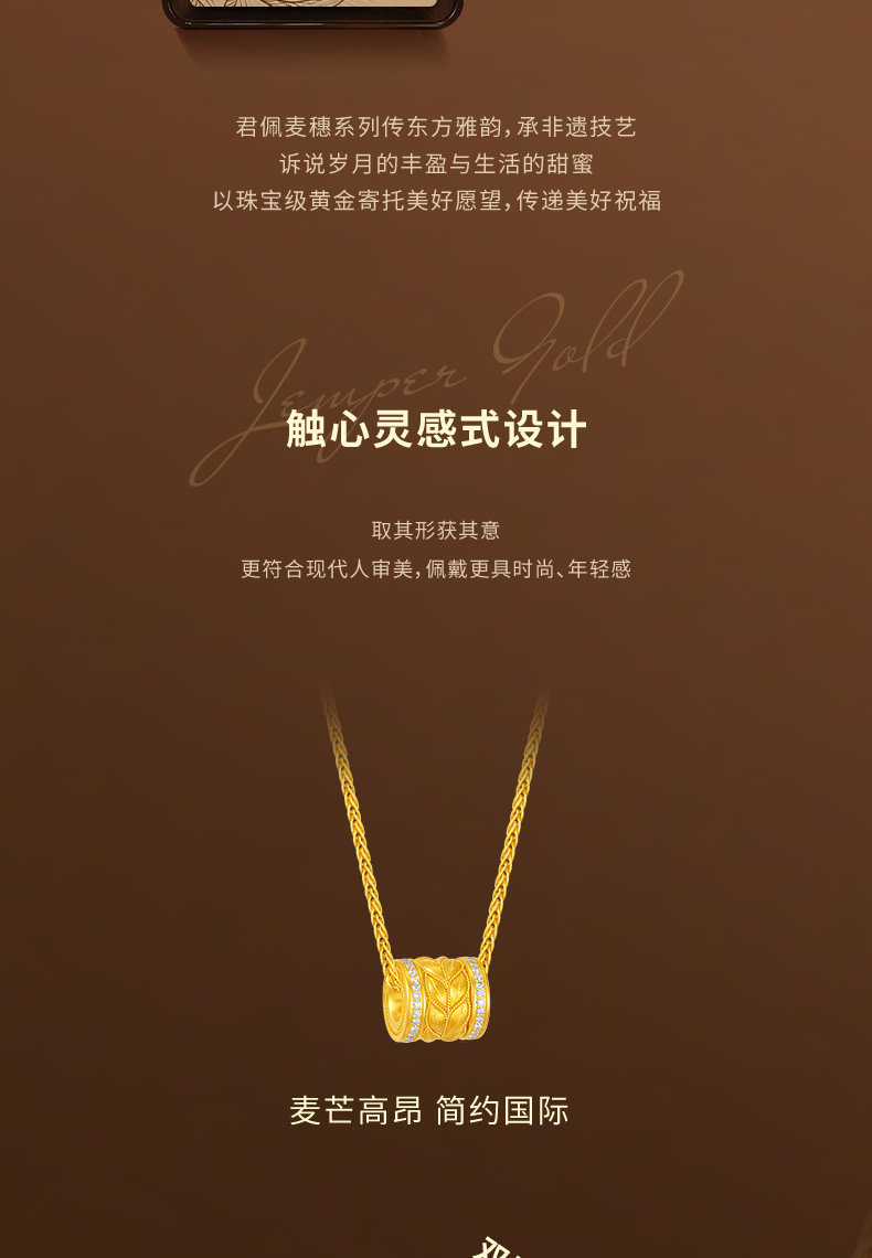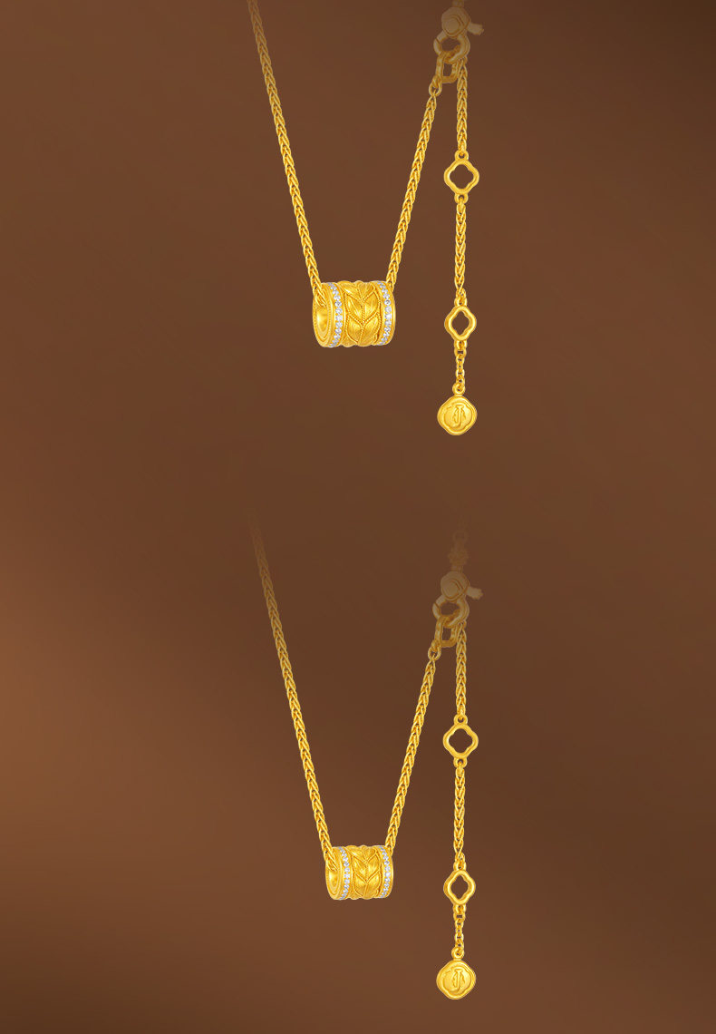 Jemper/Junpei Wheat Spike Diamond-Encrusted Traditional Handmade Gold Necklace New Pure Gold Fashionable Versatile Small Pendant