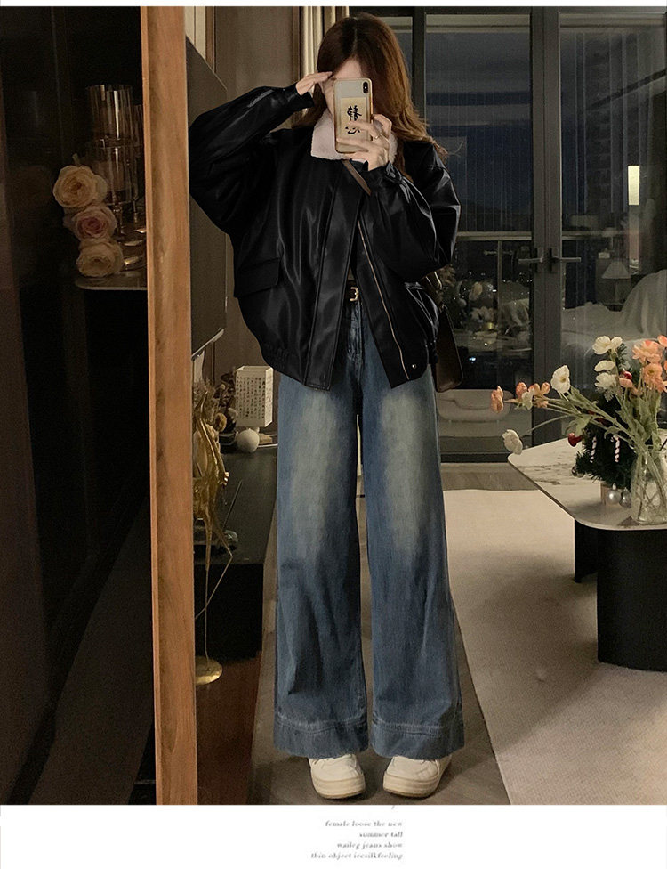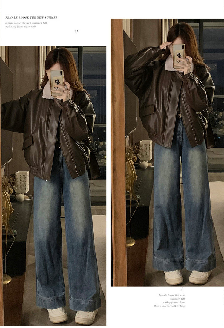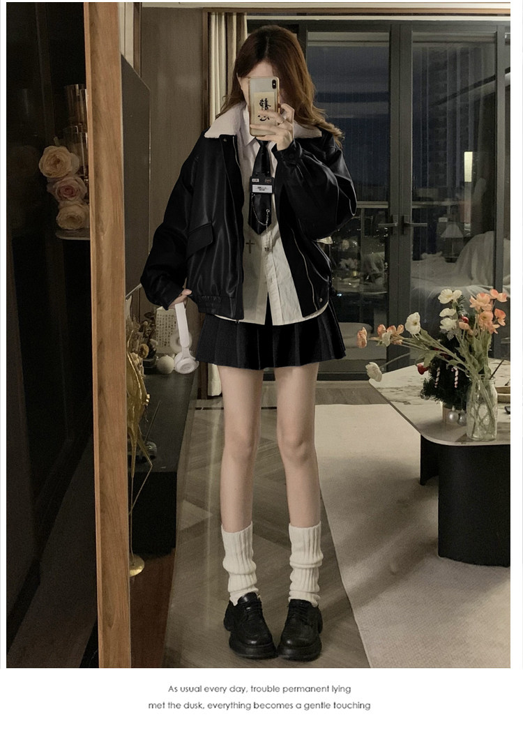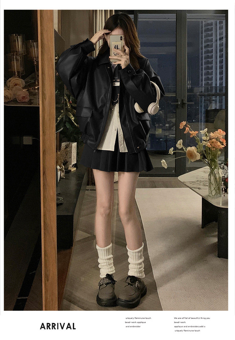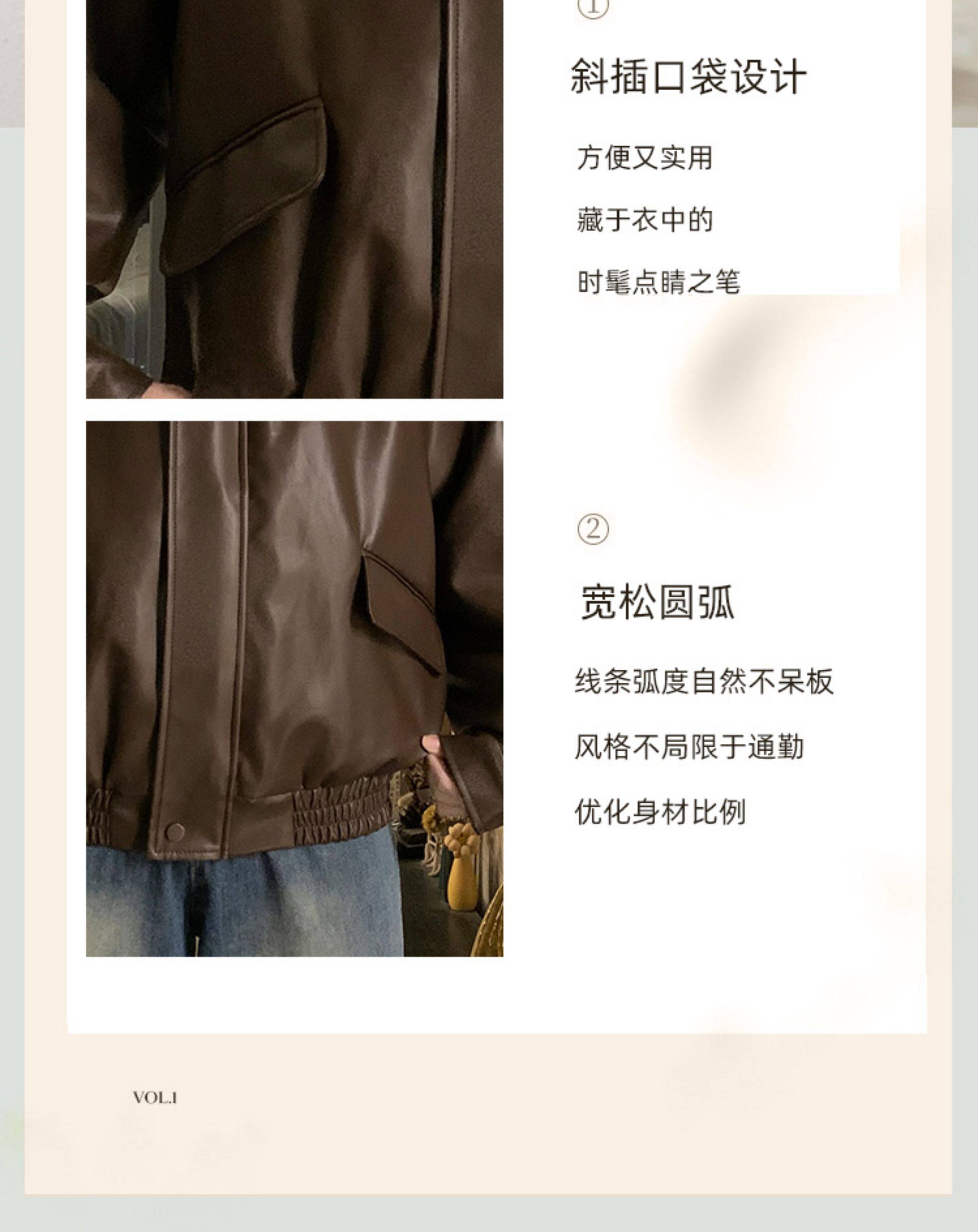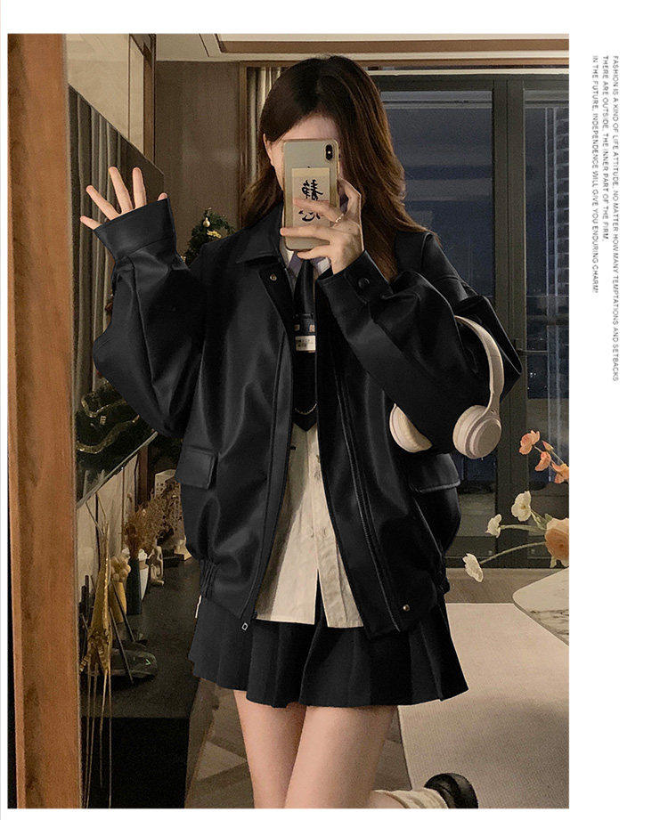 Maillard Brown Motorcycle Pu Leather Jacket with Fleece Lining, Thickened Coat for Women, Winter 2025, American Retro Loose Cotton Coat