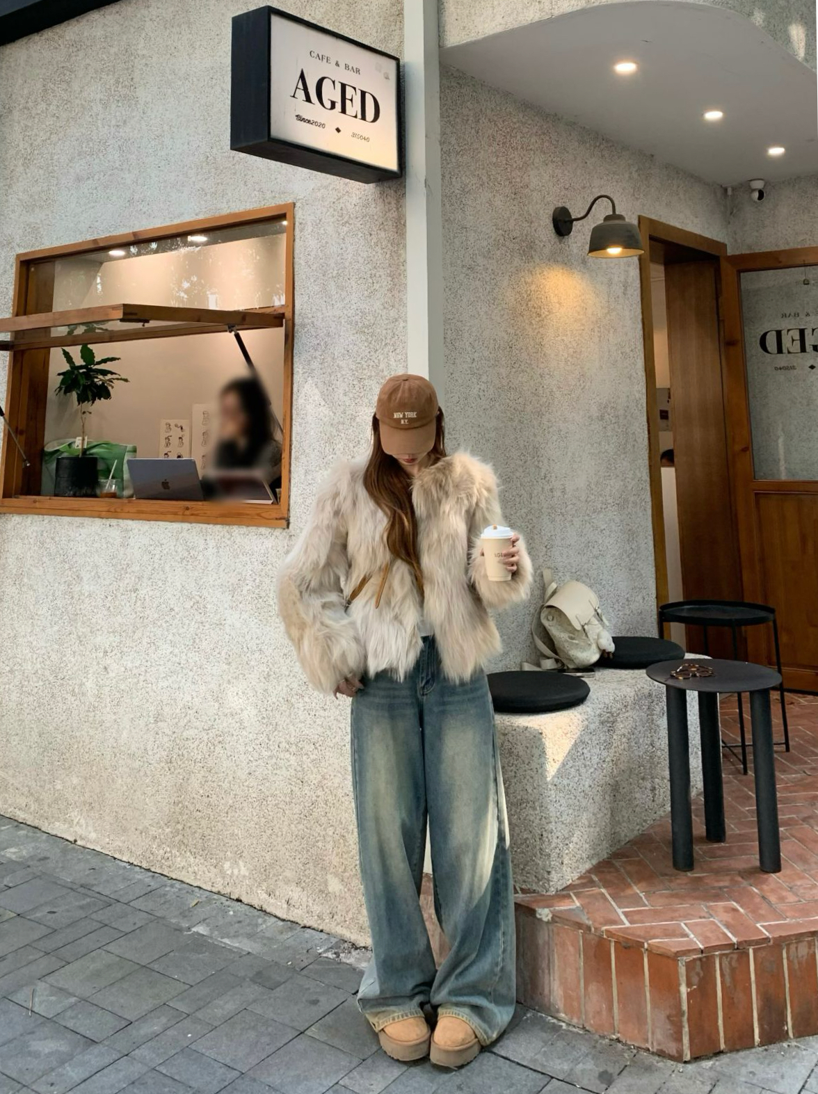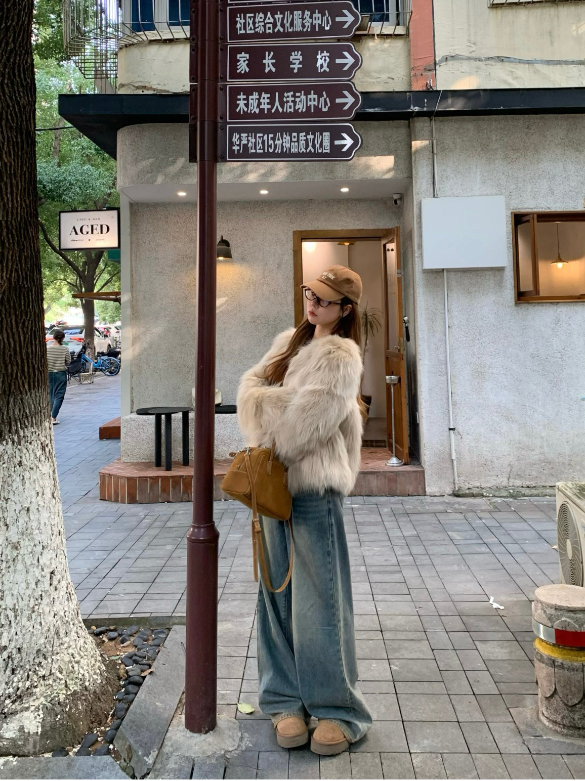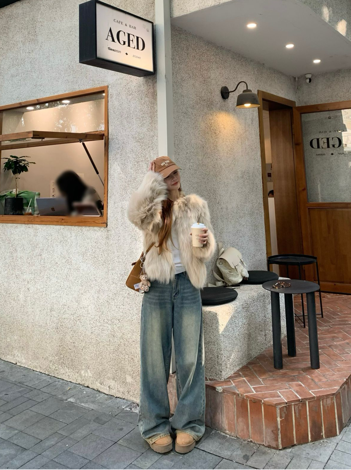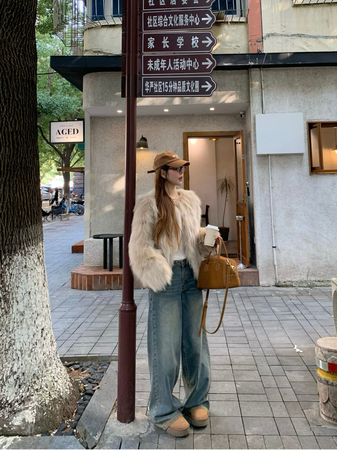 Yilann2025 New Autumn and Winter Women's Korean Style Washed Blue Wide-Leg Pants, Loose and Versatile, Fleece-Lined High-Waisted Jeans