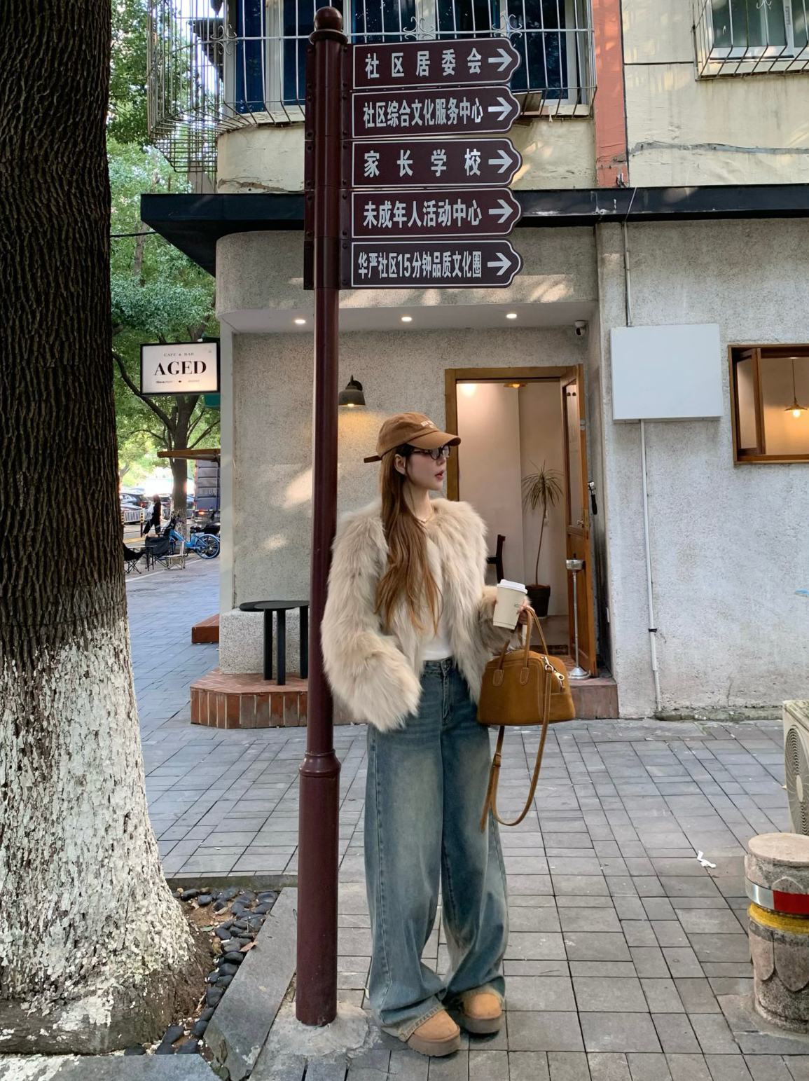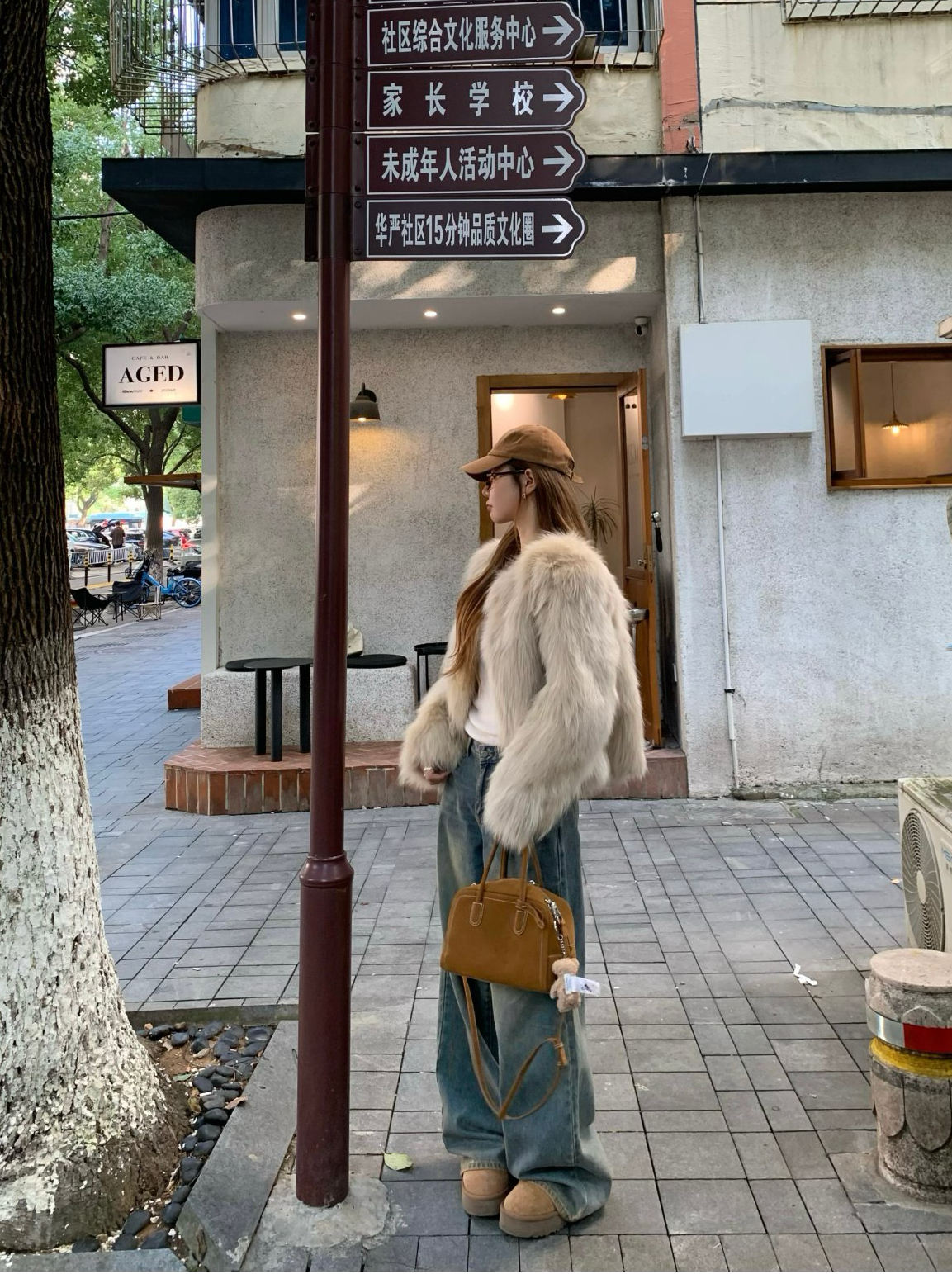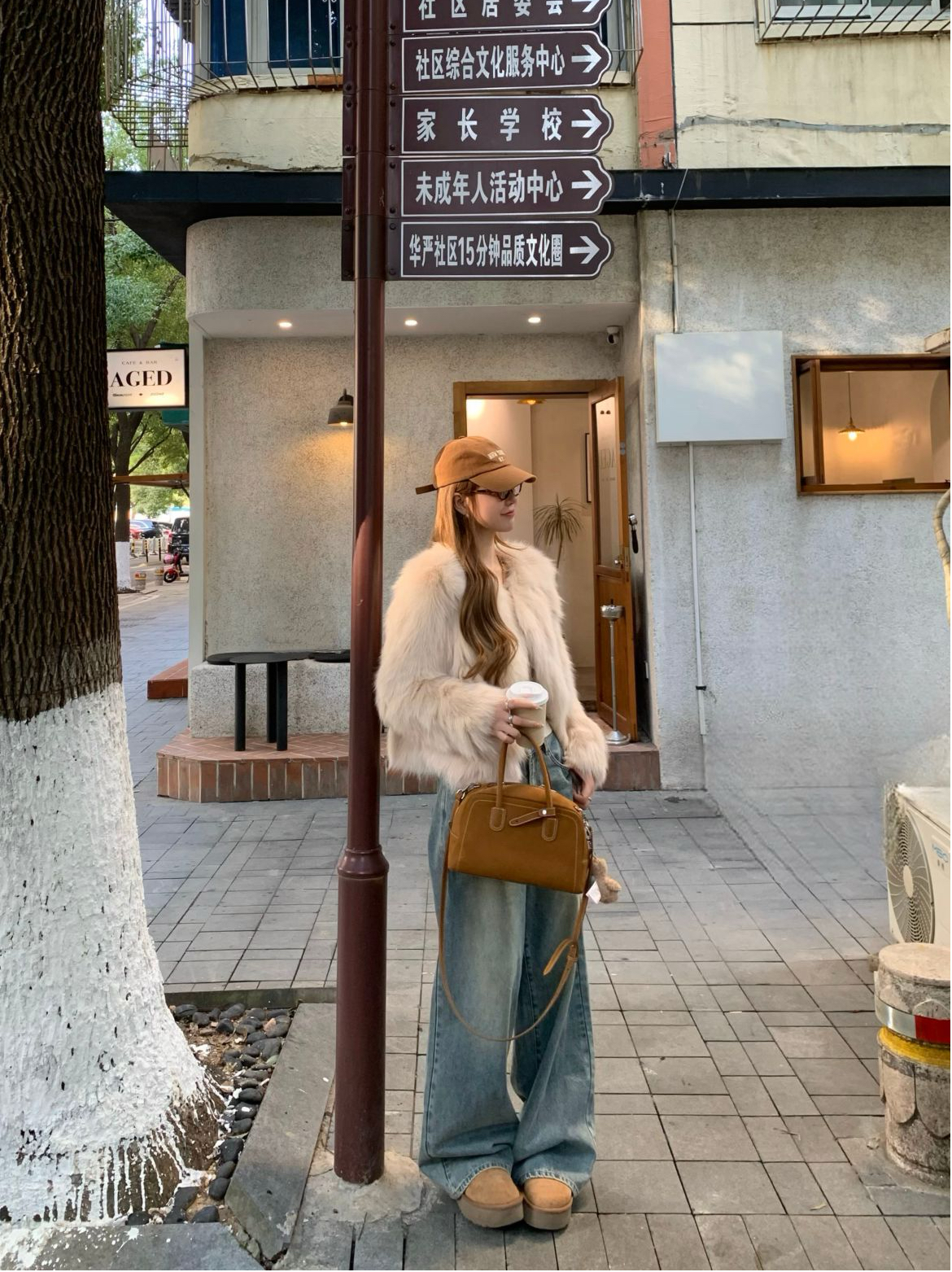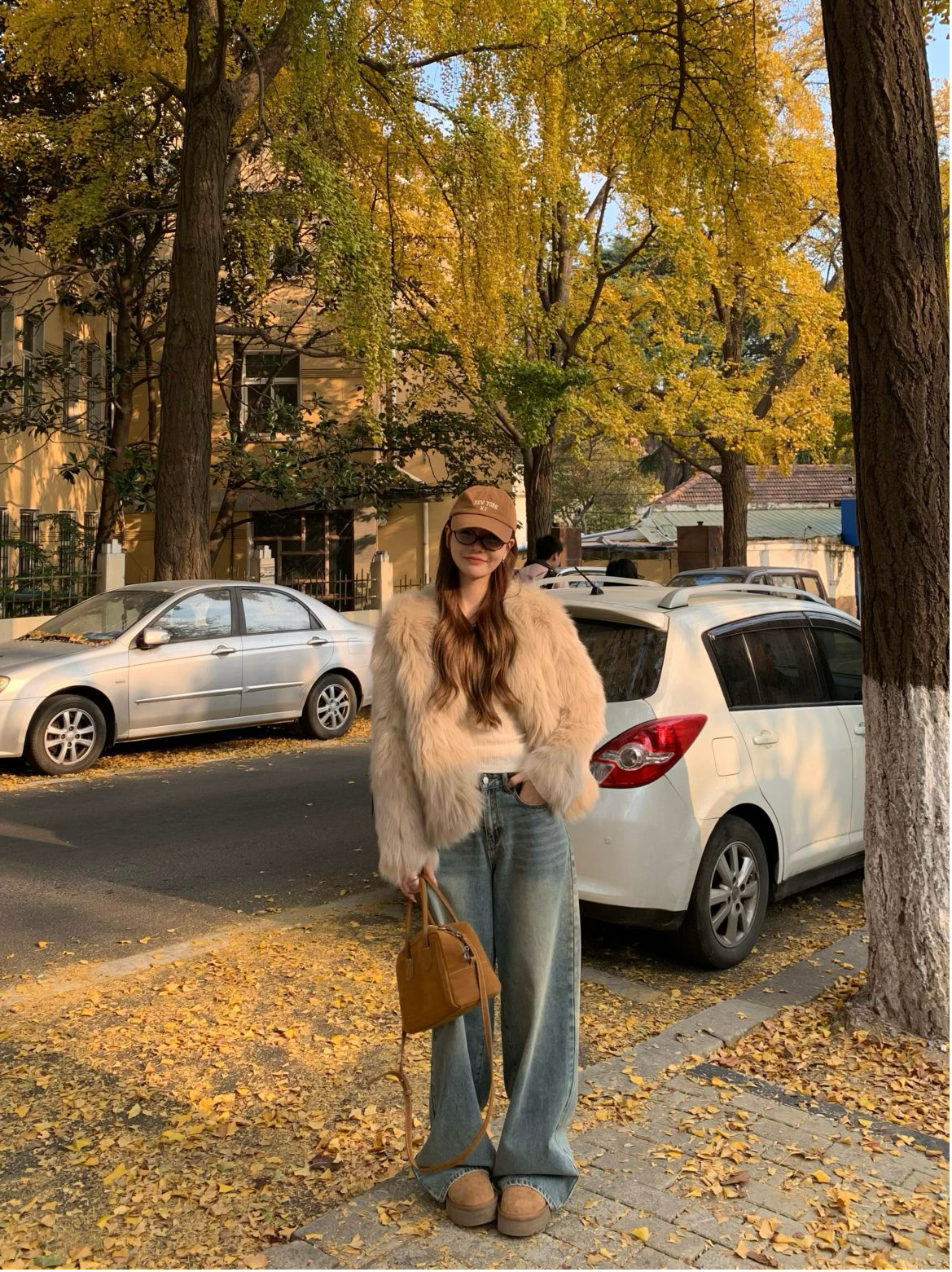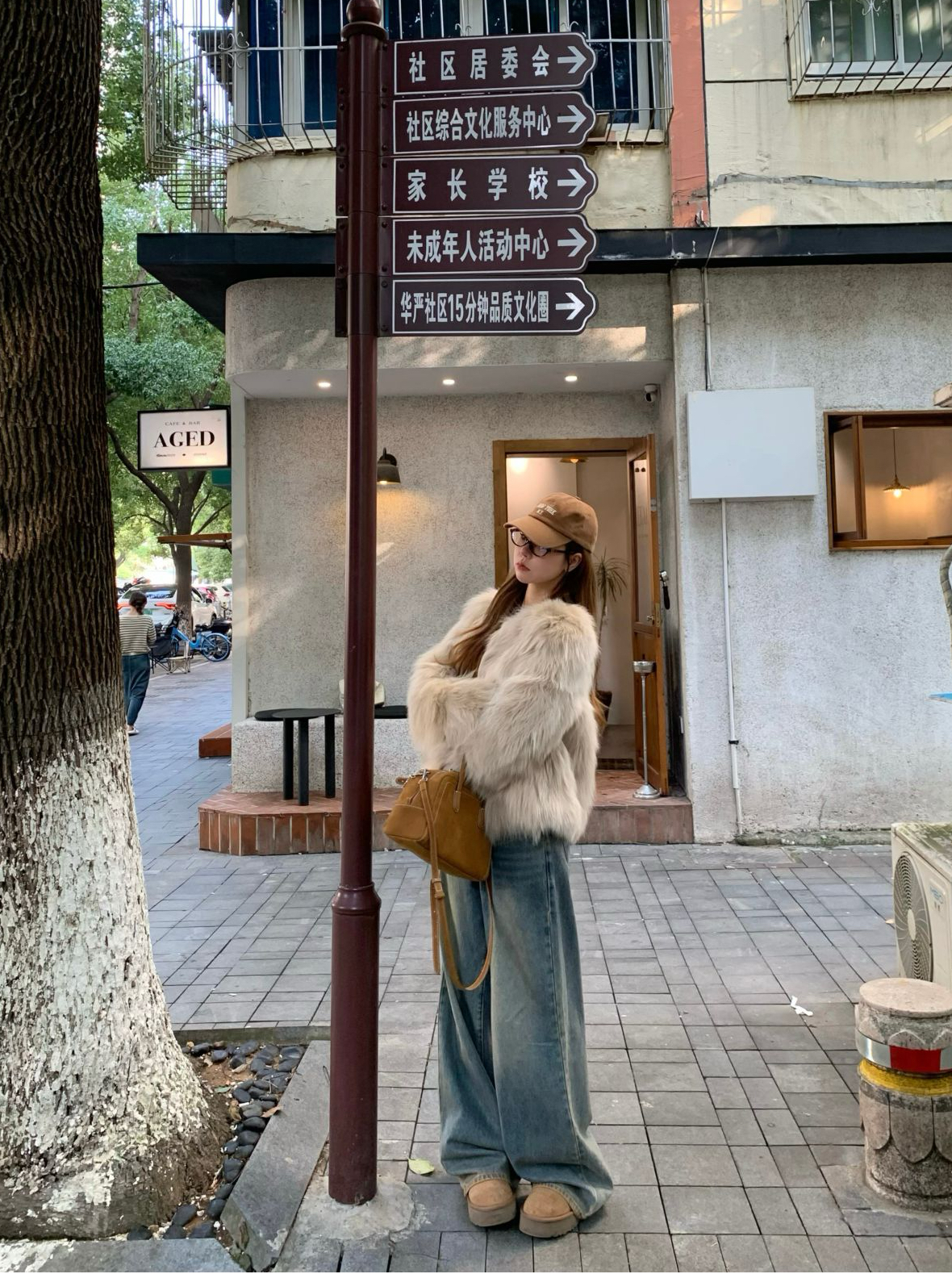 Yilann2025 New Autumn and Winter Women's Korean Style Washed Blue Wide-Leg Pants, Loose and Versatile, Fleece-Lined High-Waisted Jeans