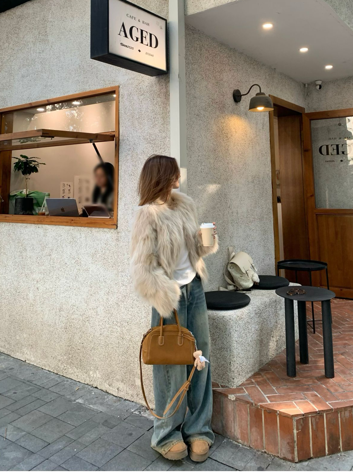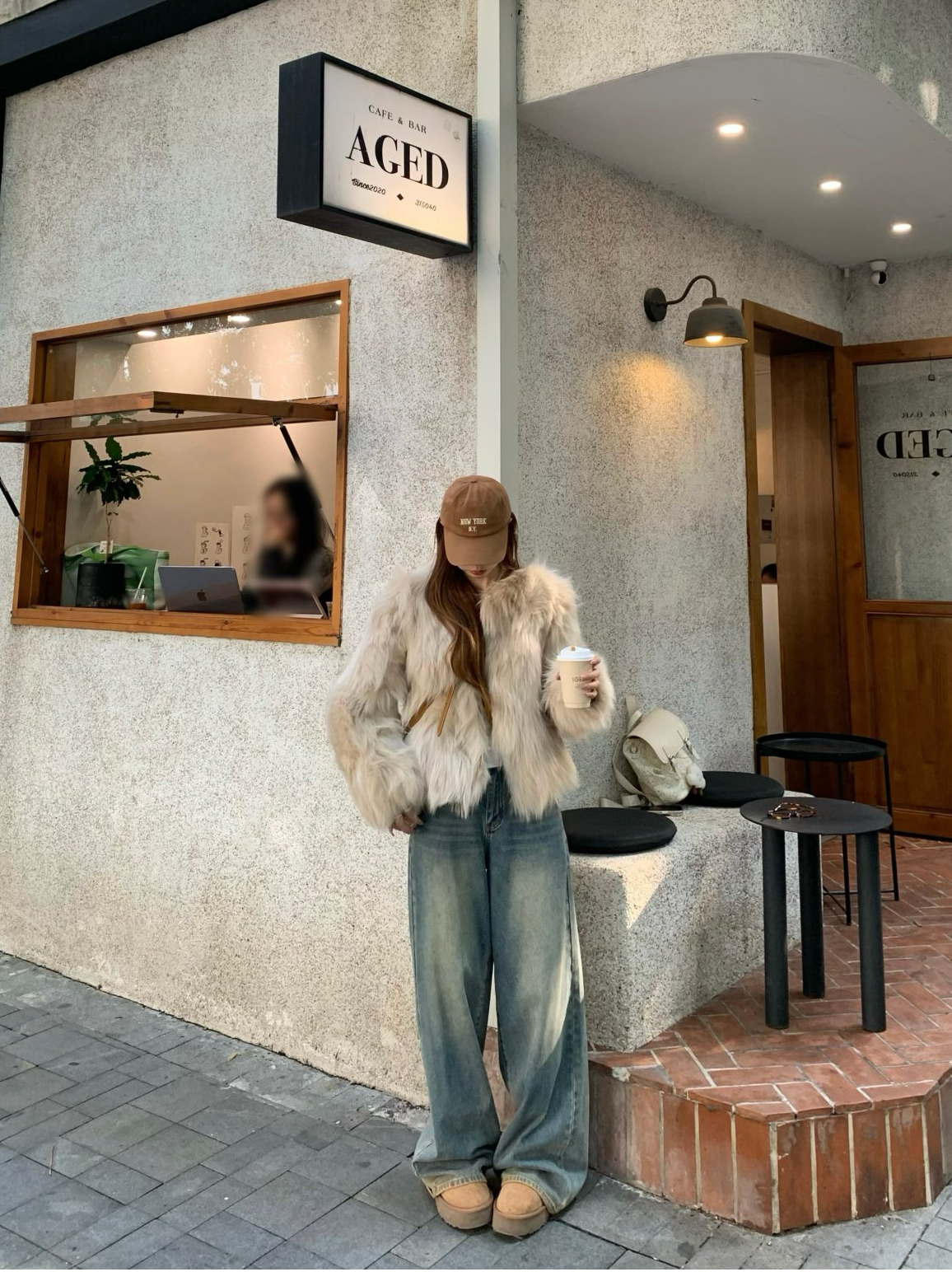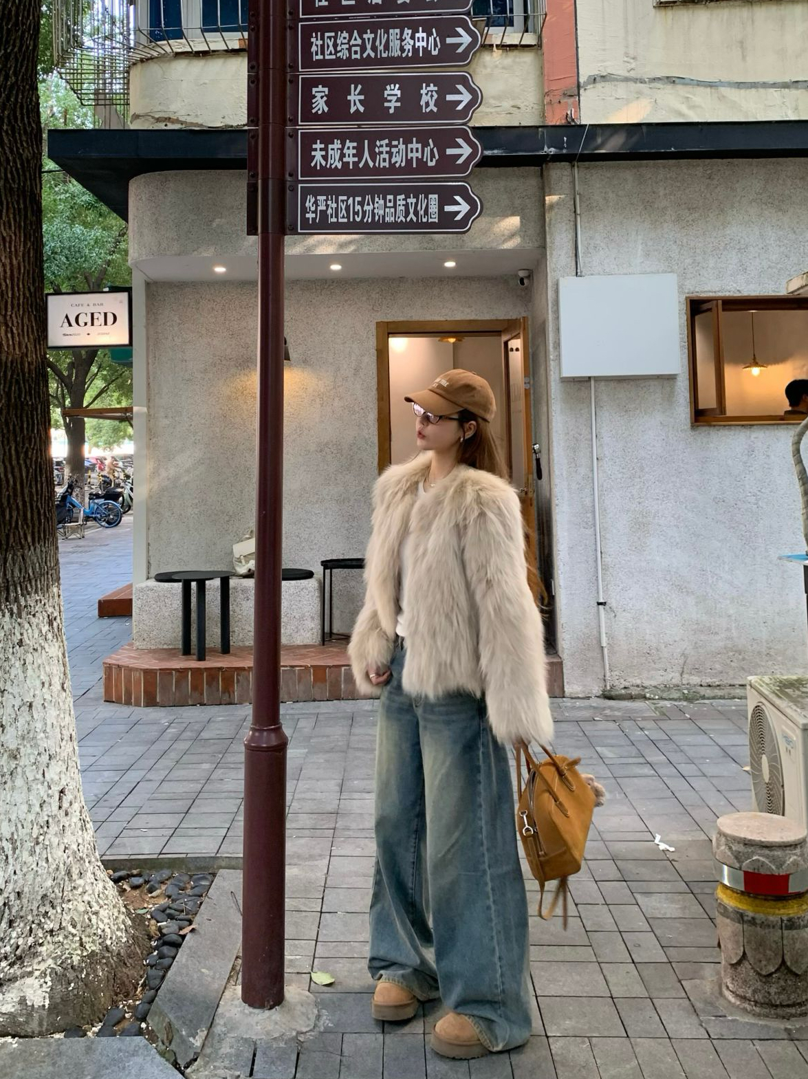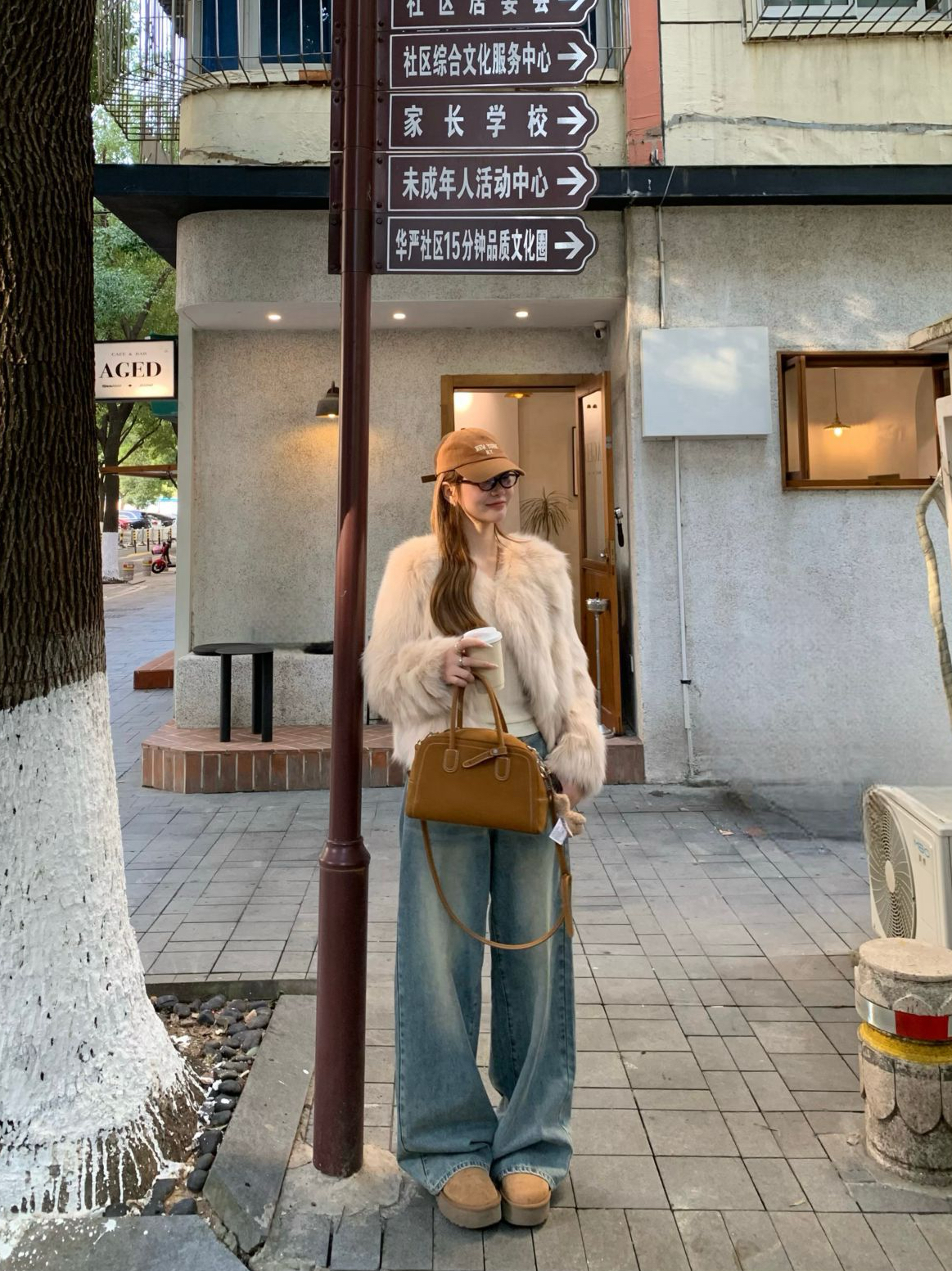 Yilann2025 New Autumn and Winter Women's Korean Style Washed Blue Wide-Leg Pants, Loose and Versatile, Fleece-Lined High-Waisted Jeans