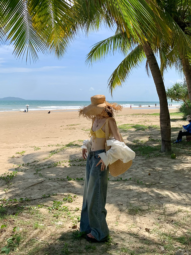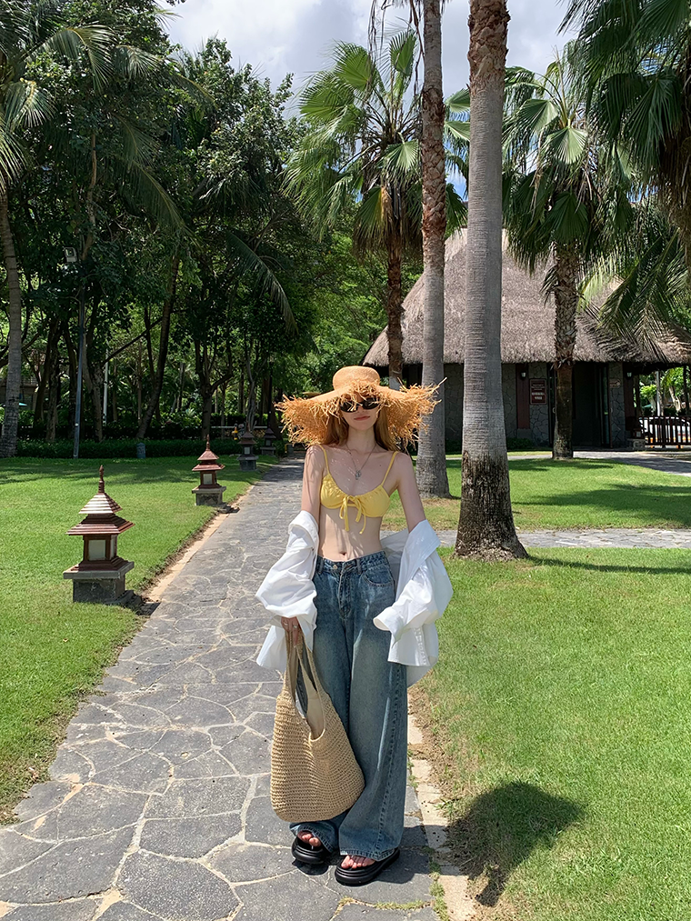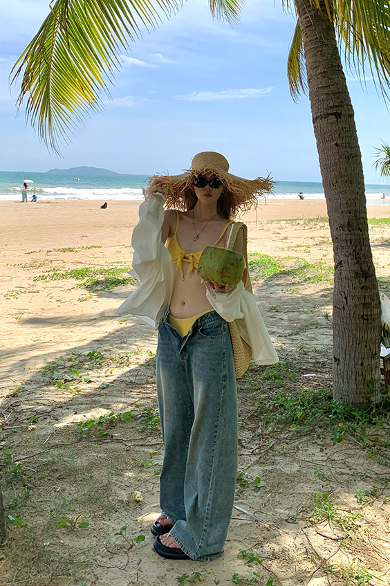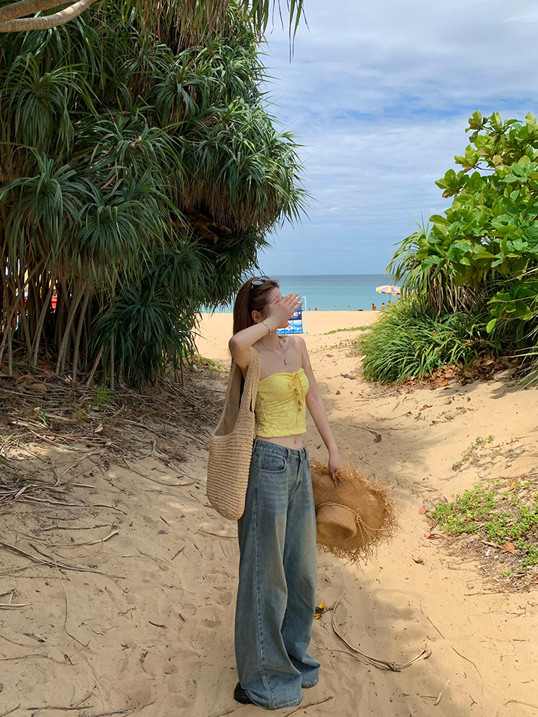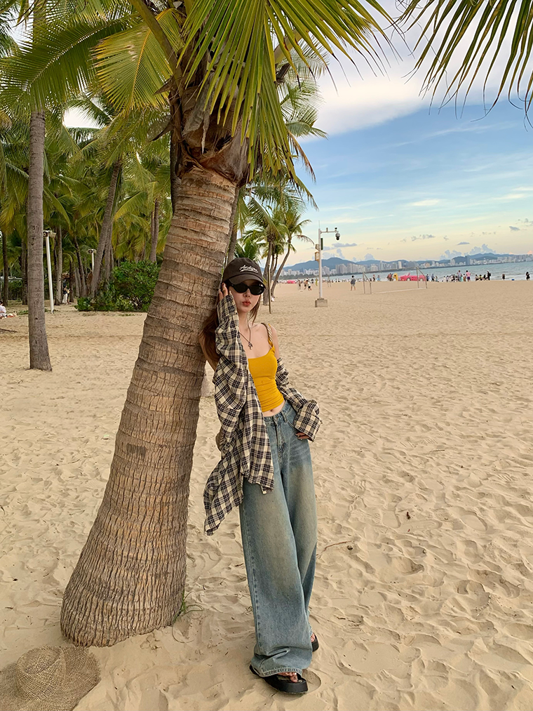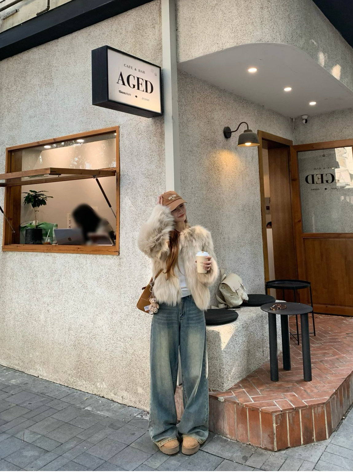 Yilann2025 New Autumn and Winter Women's Korean Style Washed Blue Wide-Leg Pants, Loose and Versatile, Fleece-Lined High-Waisted Jeans