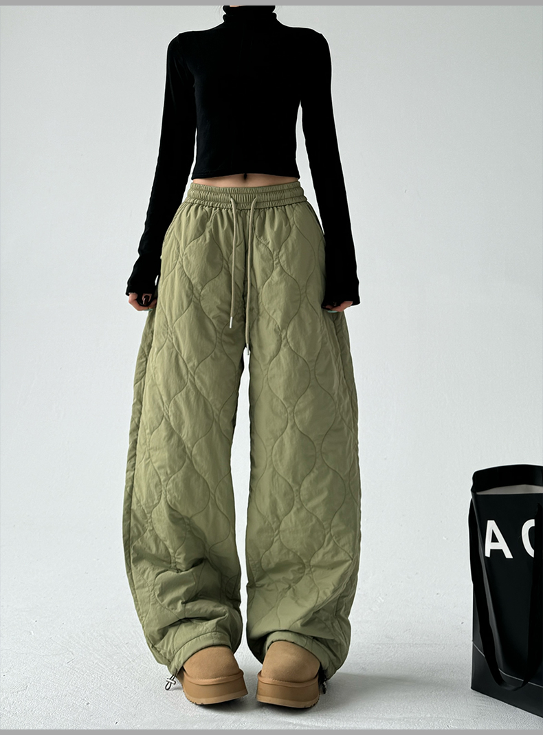 2025 Winter Thickened Warm Quilted Cotton Pants for Women with Drawstring and Frayed Edges, Loose Casual Pants for Tall Individuals