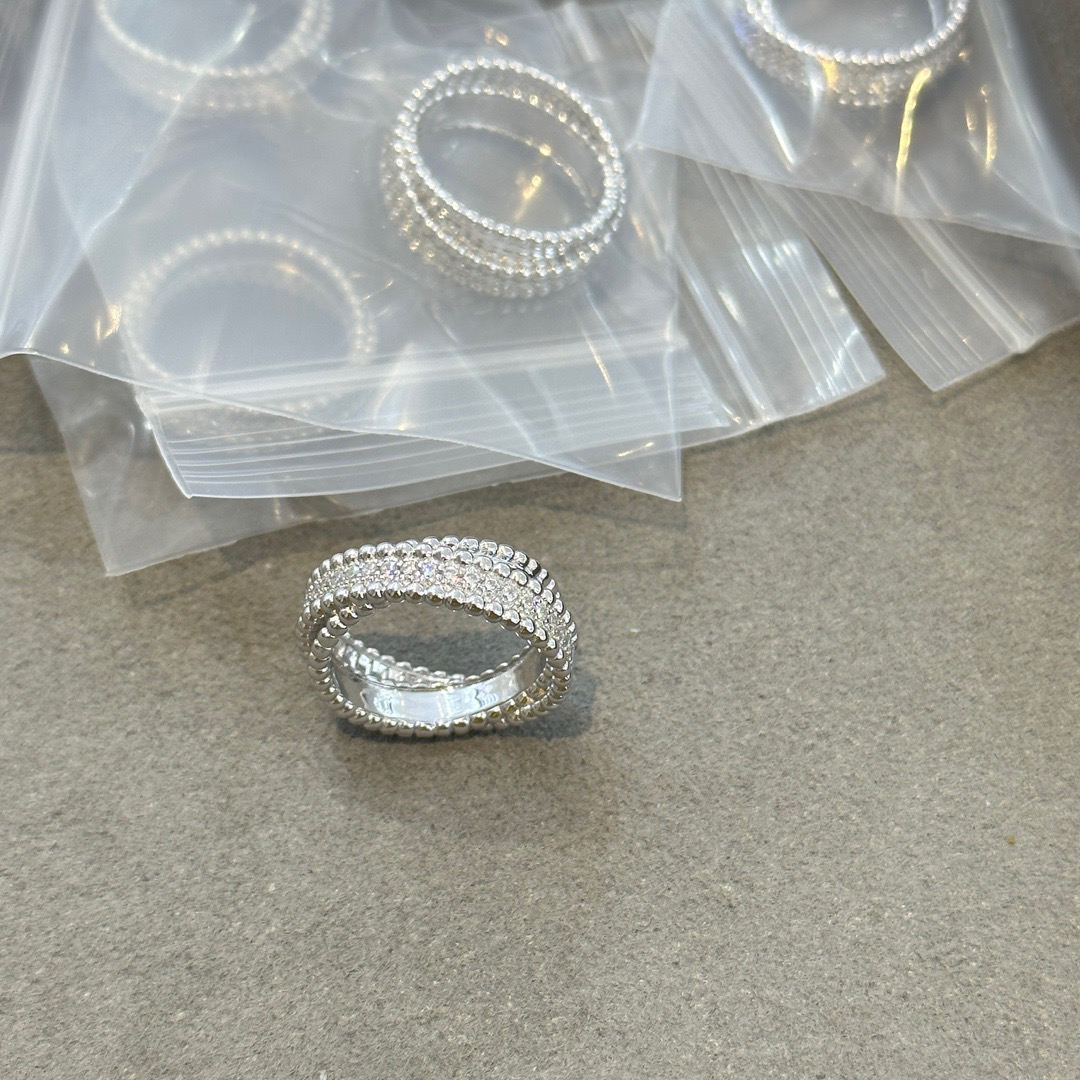 High-End Designer Series S925 Sterling Silver Bead Ring with Cross Twist Design, Fashionable and Unique Closed Ring for Women