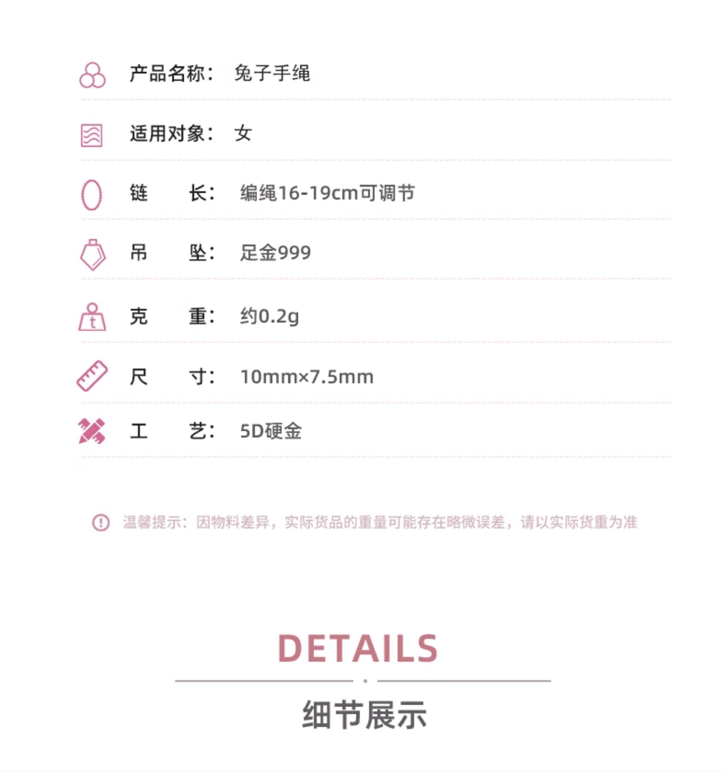 Love&Love Little Rabbit Bracelet Pure Gold 999 Gold Bracelet Pure Gold 5D Hard Gold Rabbit Gift for Girlfriend