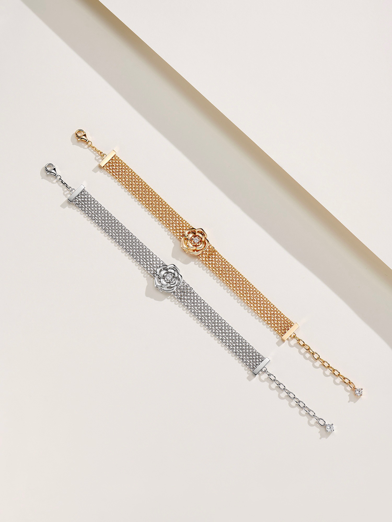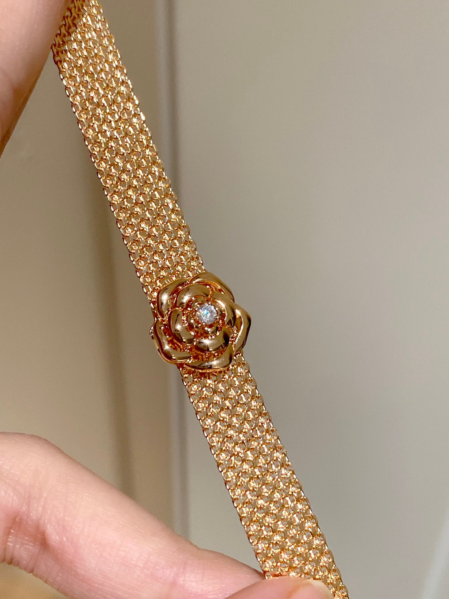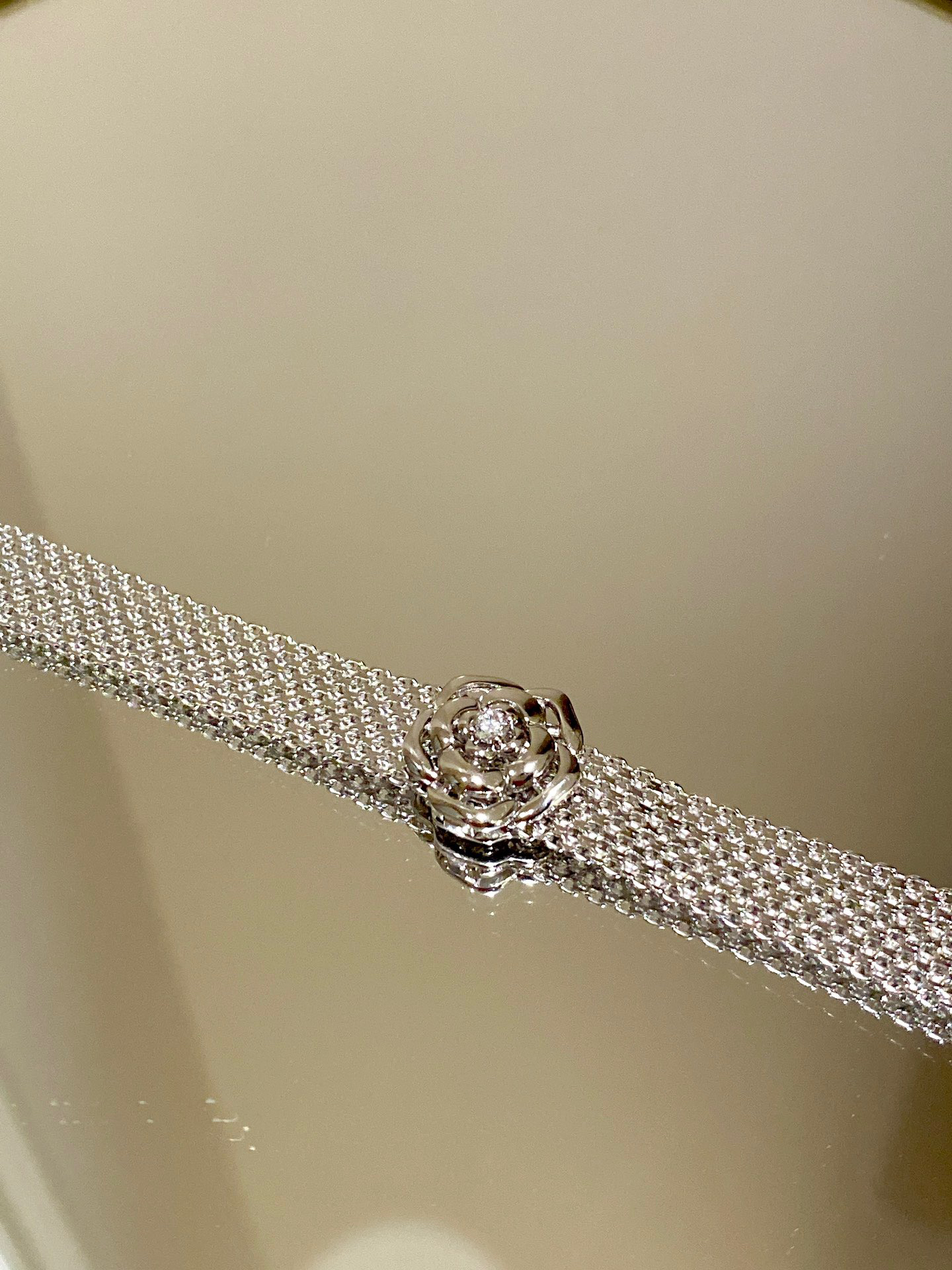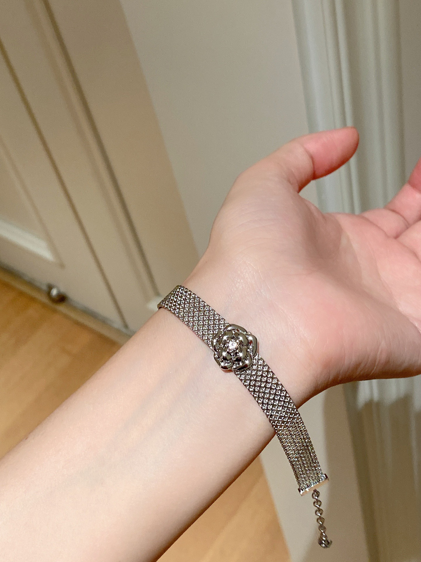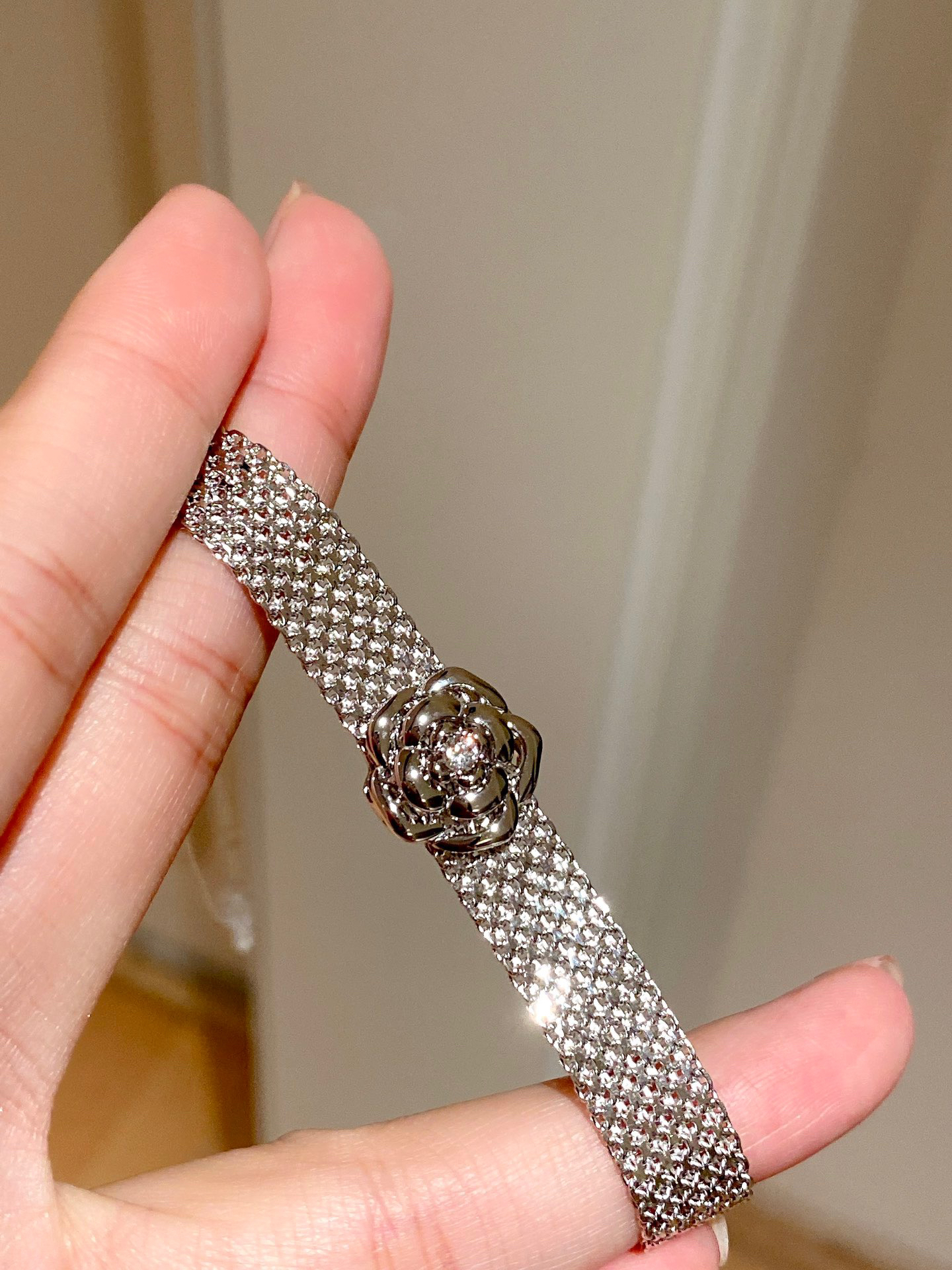 Milanese Camellia Watch Strap Bracelet for Women, Light Luxury Niche High-End Style, Chanel-Inspired Wristband, Pure Silver Dual-Use Model