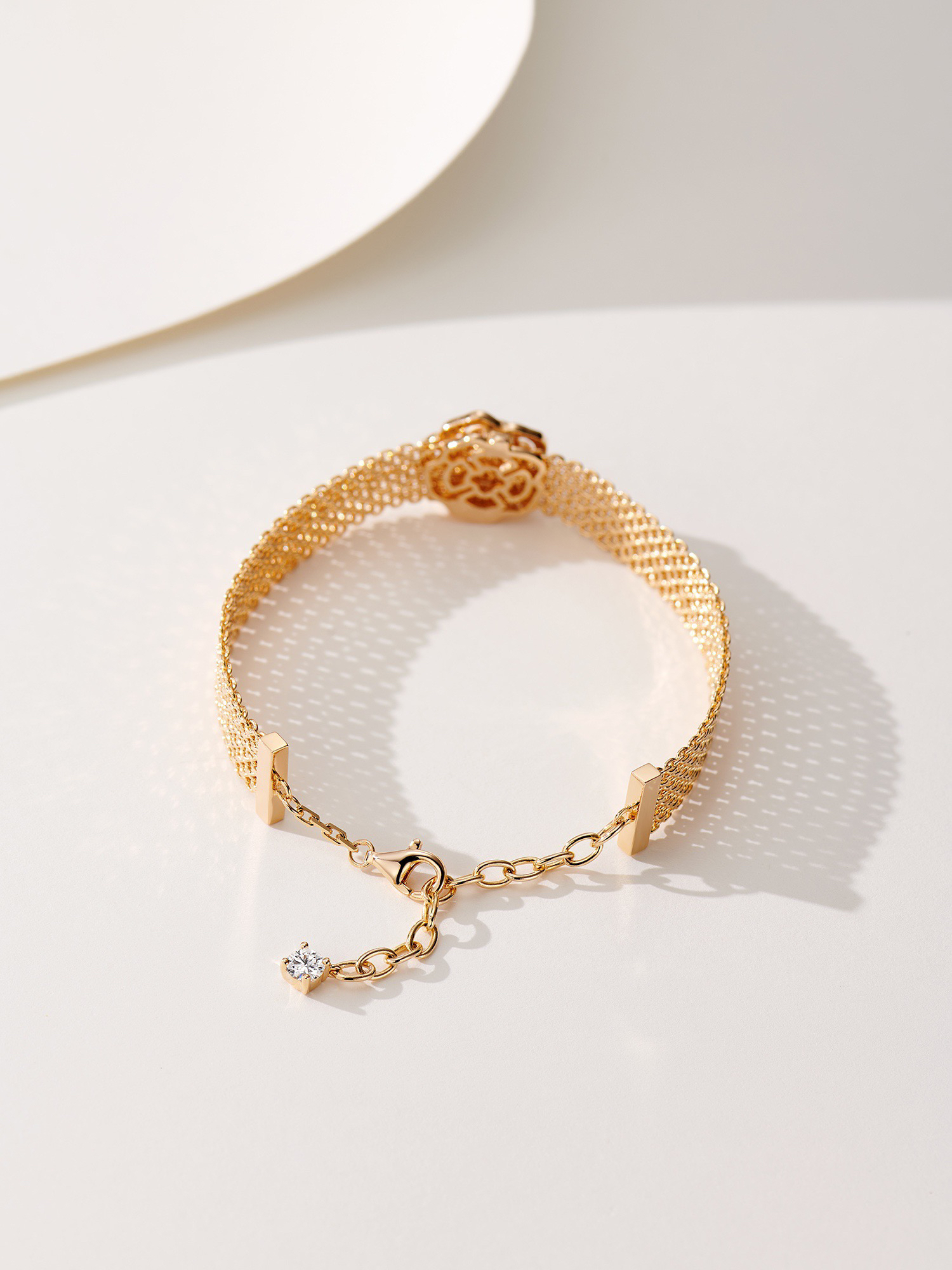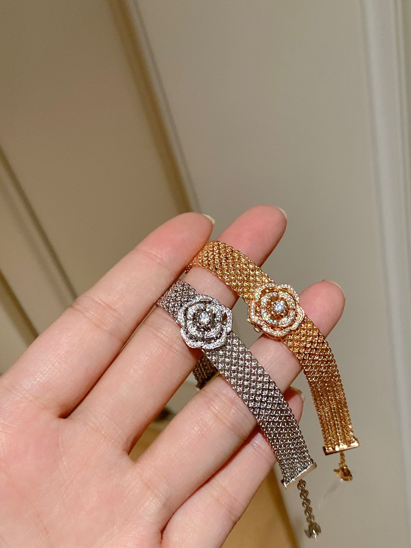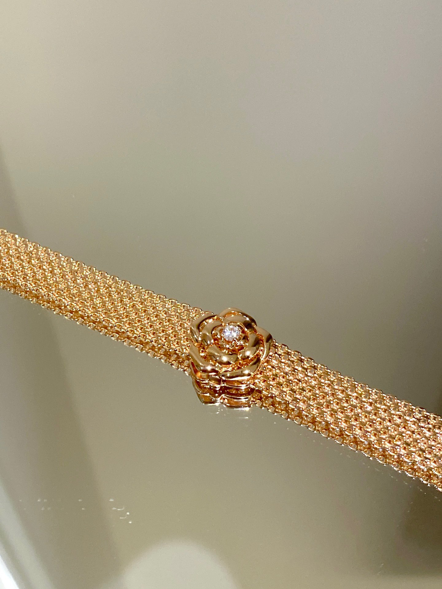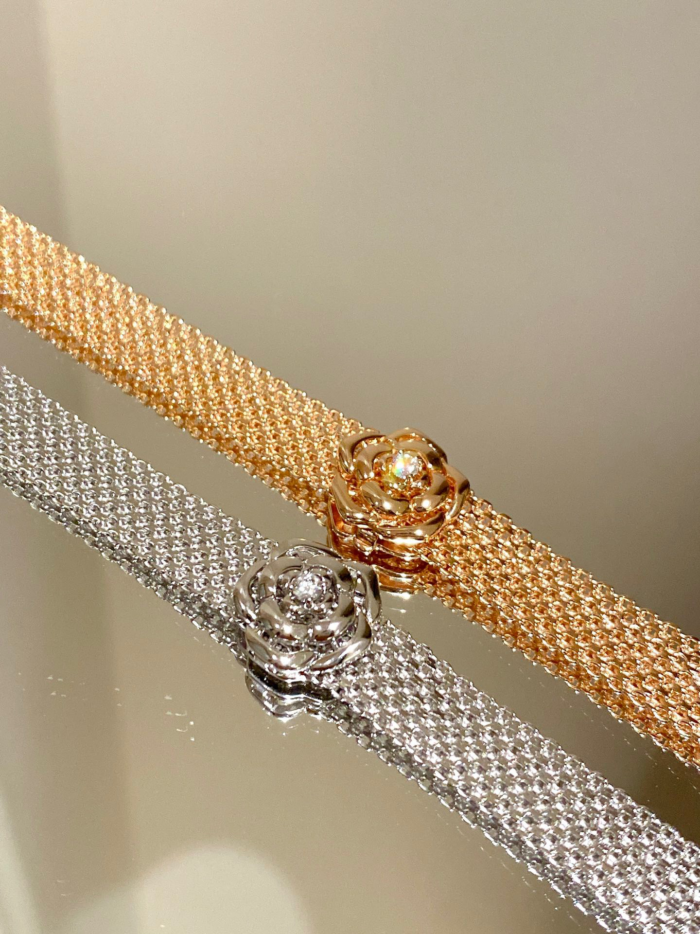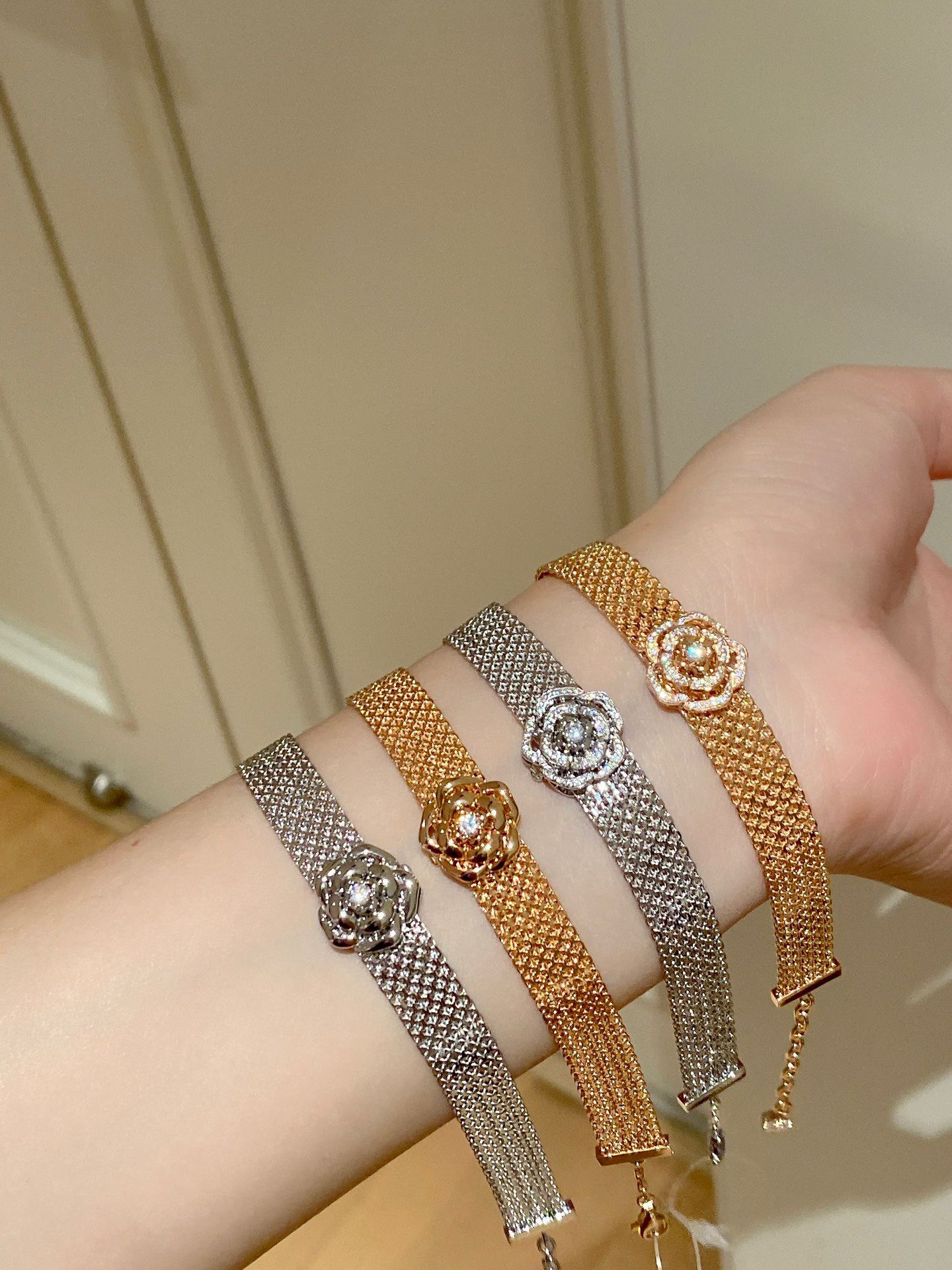 Milanese Camellia Watch Strap Bracelet for Women, Light Luxury Niche High-End Style, Chanel-Inspired Wristband, Pure Silver Dual-Use Model