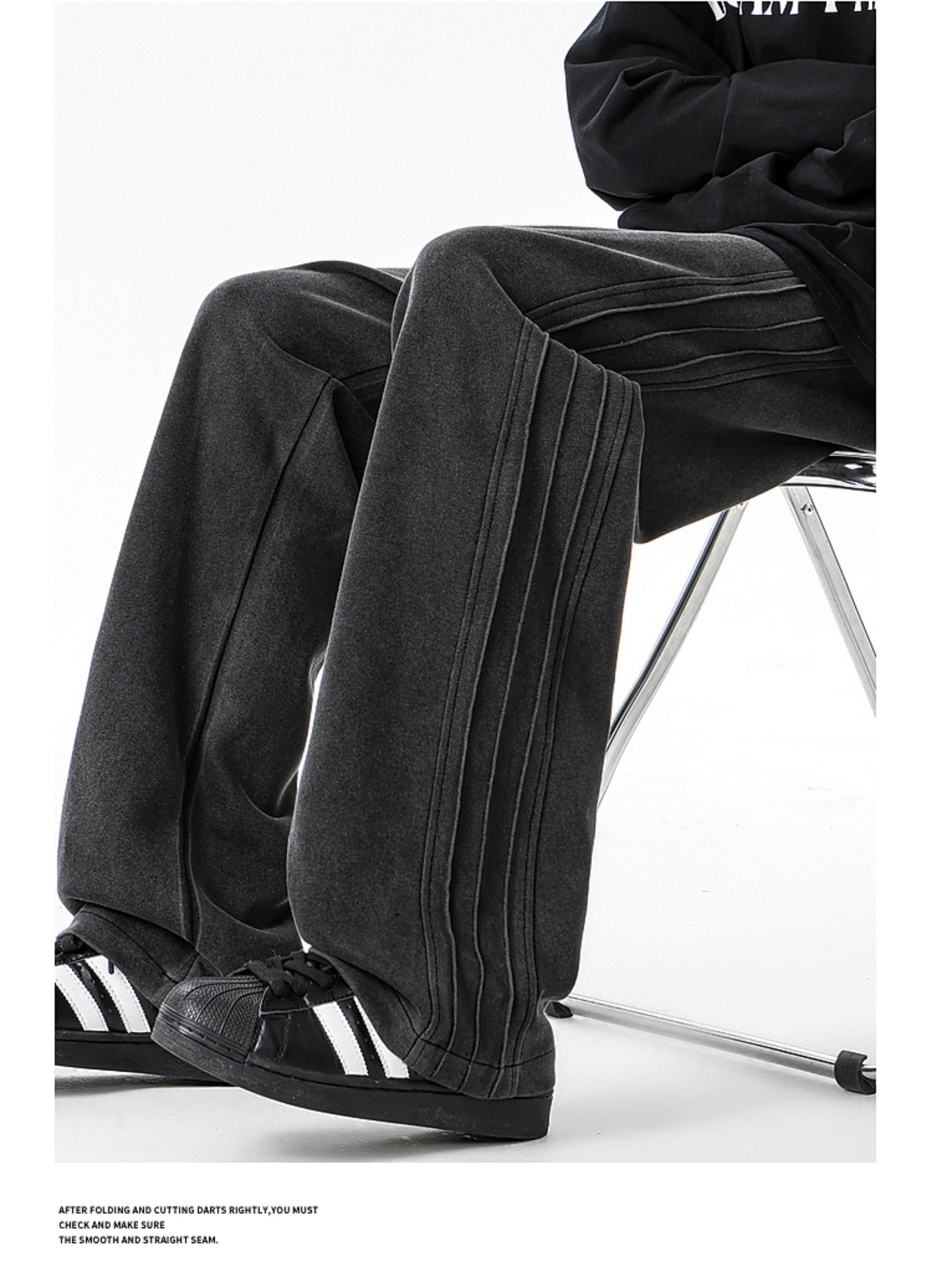 Wukong Has in Stock Retro American-Style Washed Pants with Drape, Trendy Brand Loose Wide-Leg Versatile Warm Casual Pants for Men