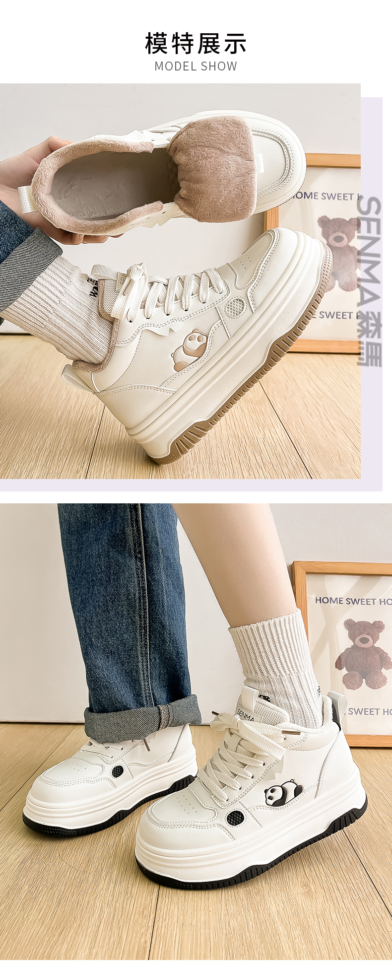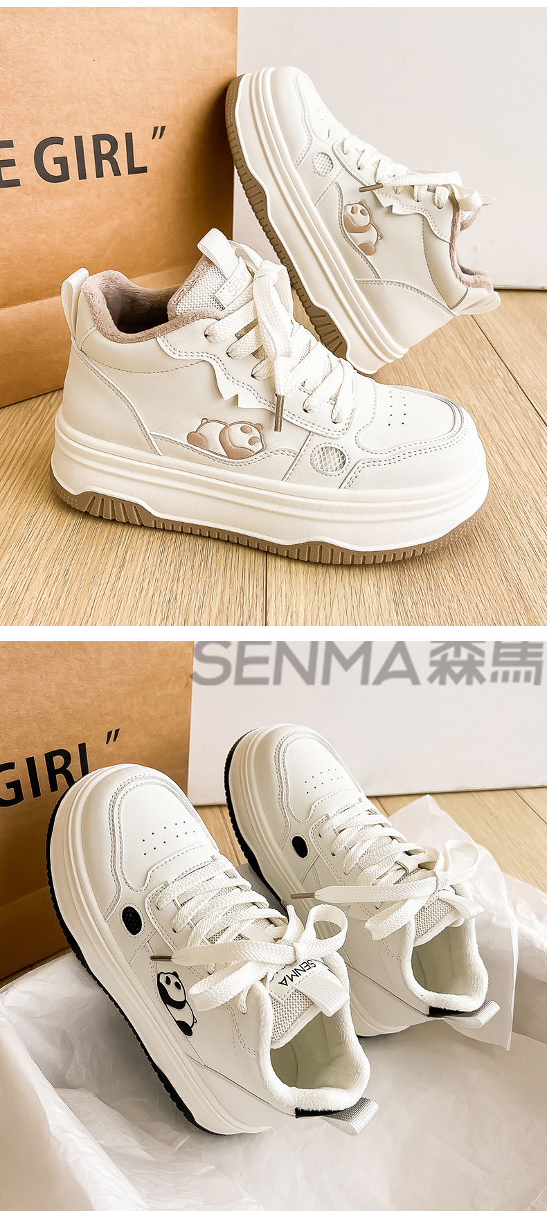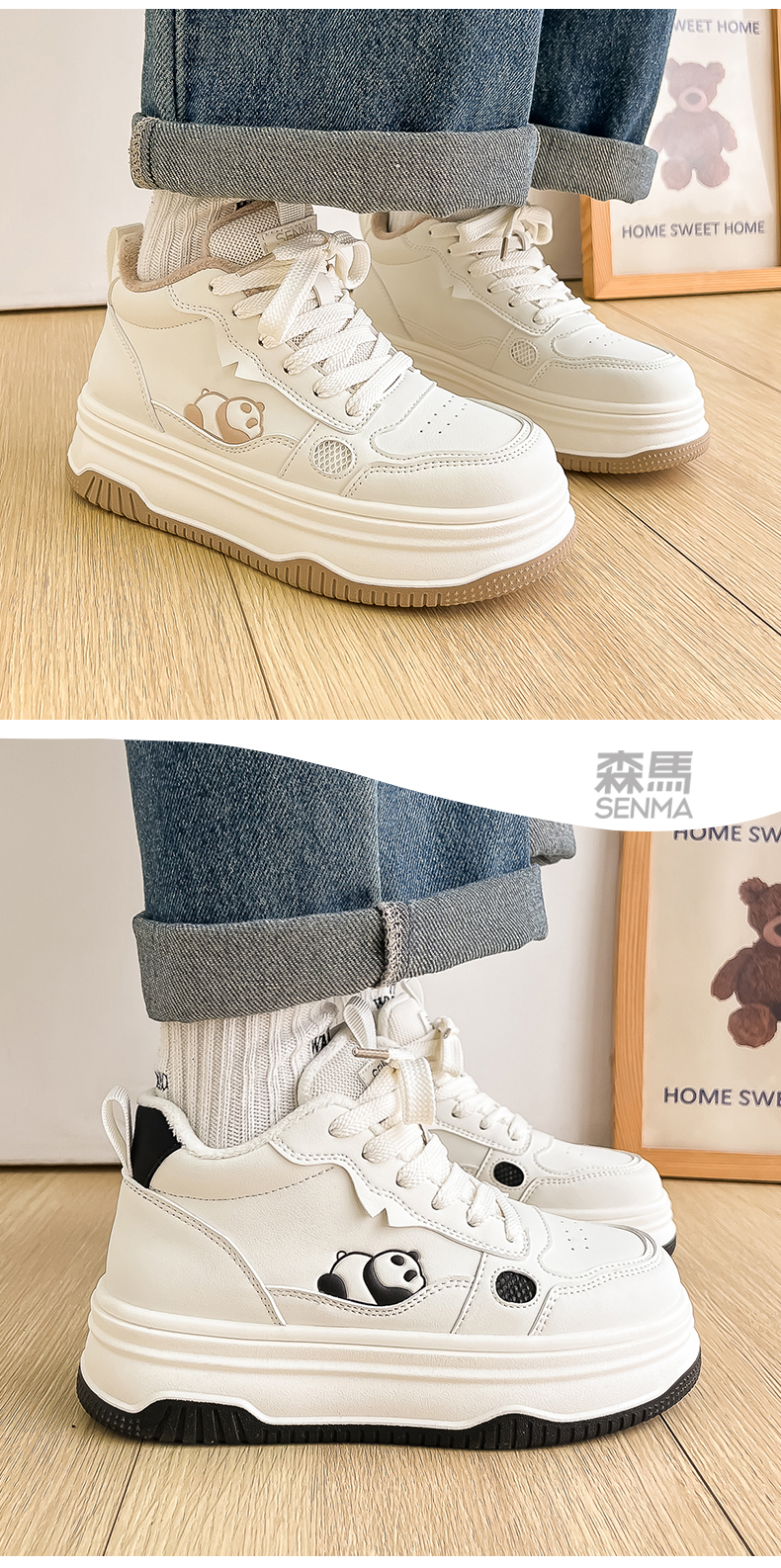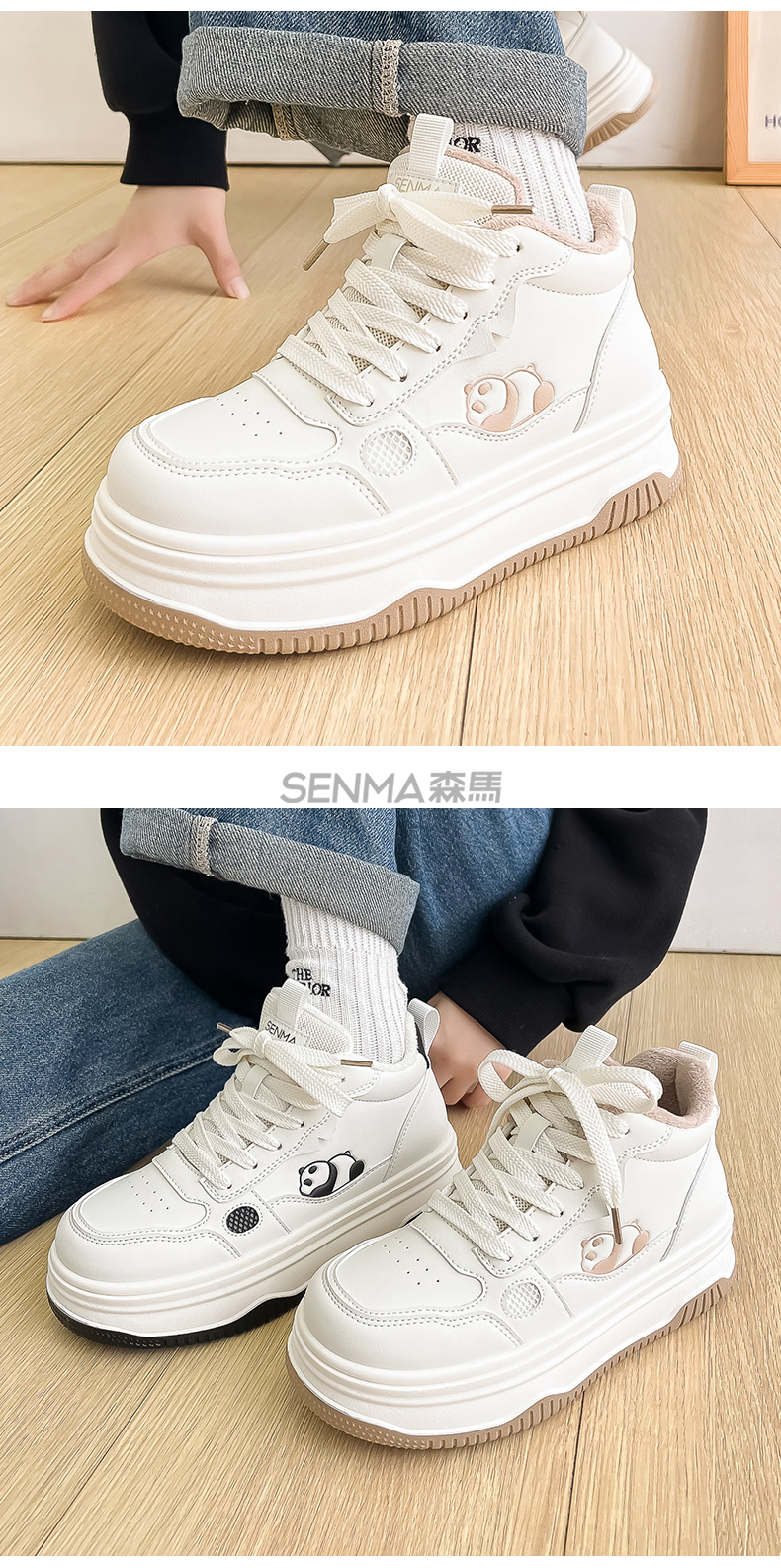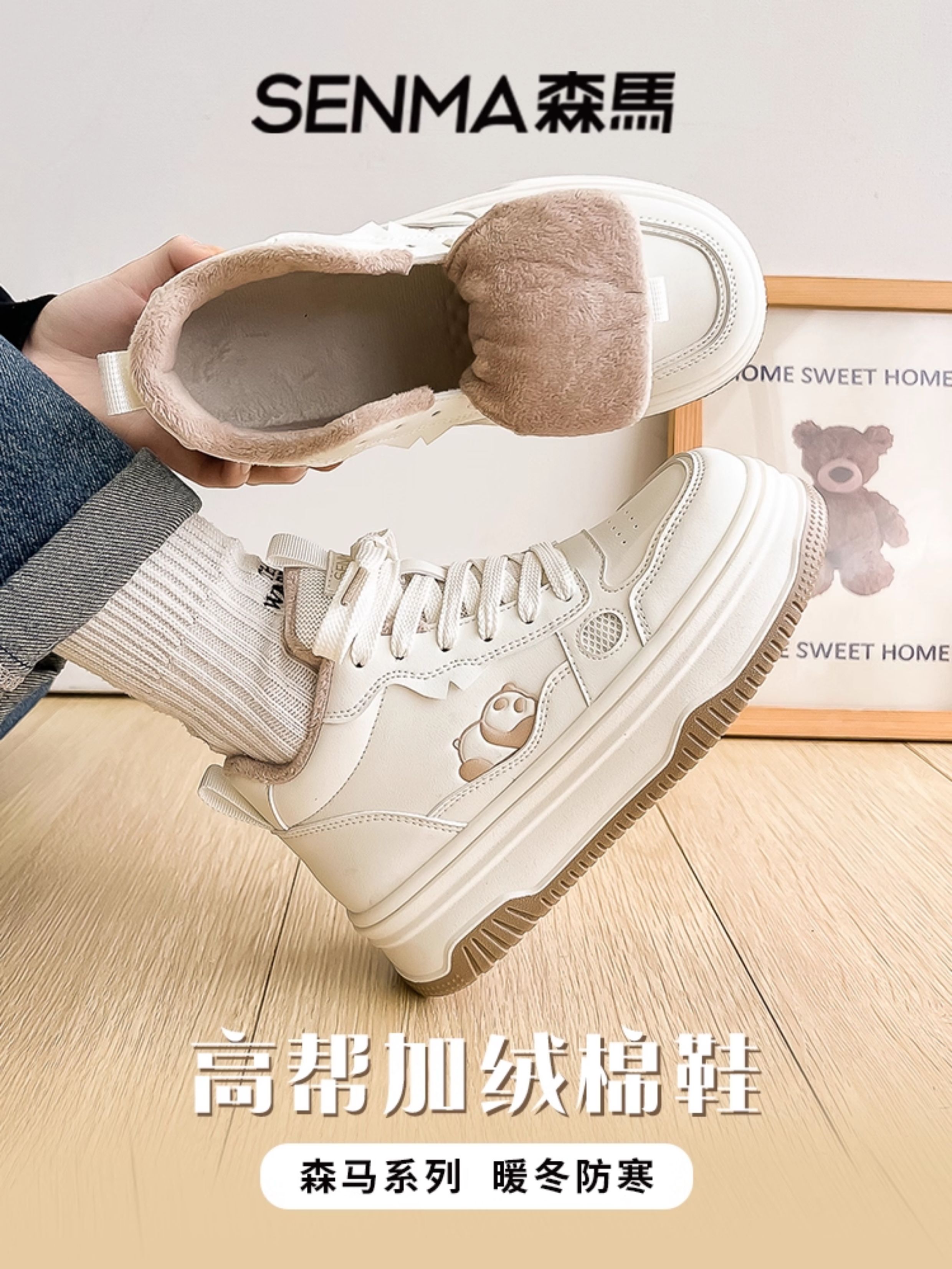 Semir High-Top Cotton Shoes for Women, Winter Fleece-Lined 2025 New Thick-Soled Sneakers, Women's Autumn and Winter Warm Double-Layer Cotton Shoes