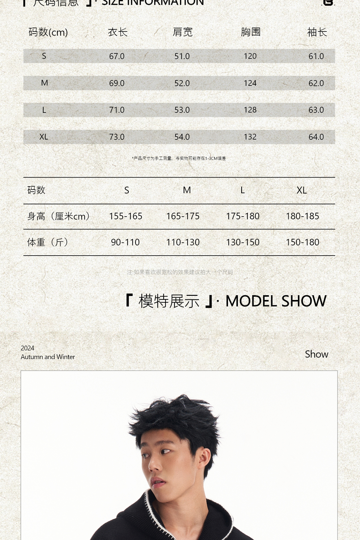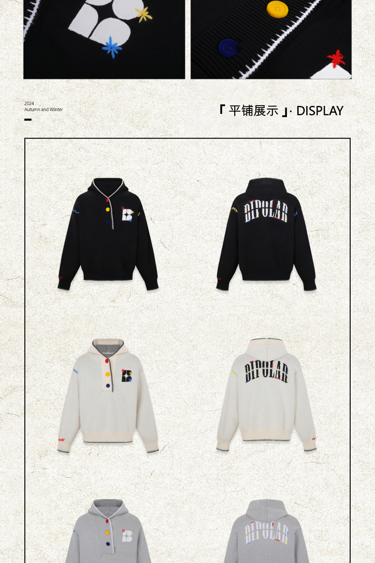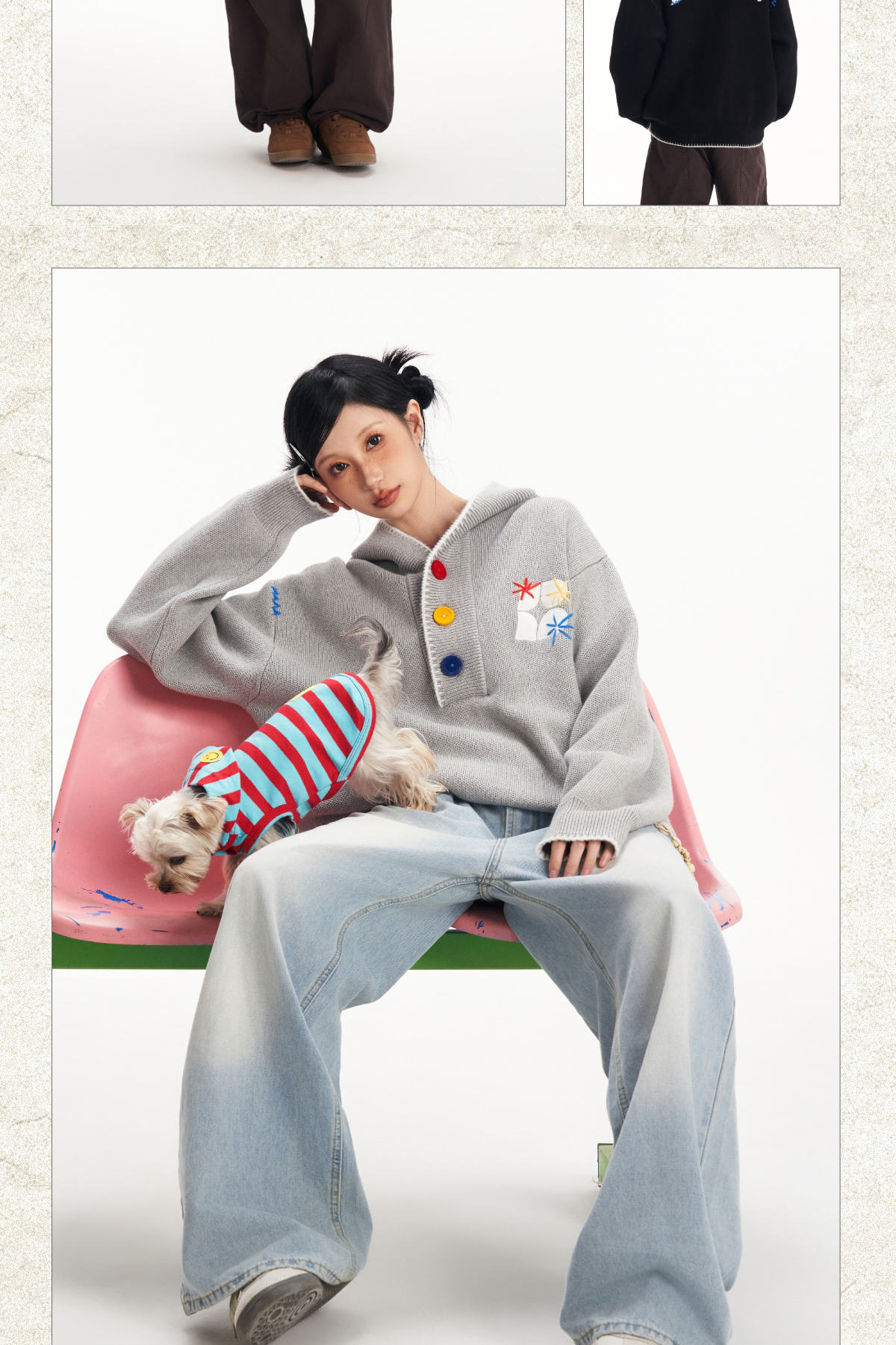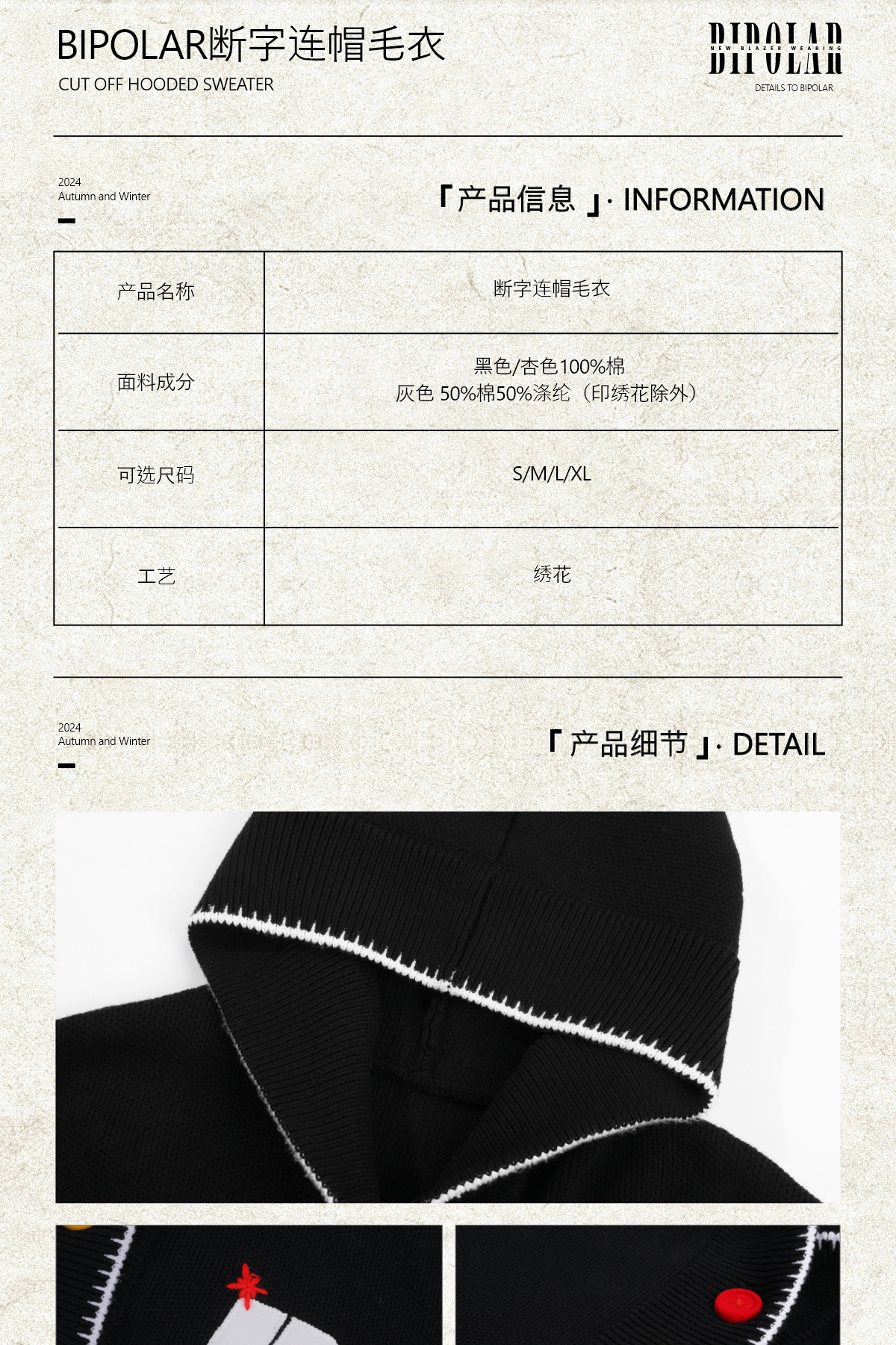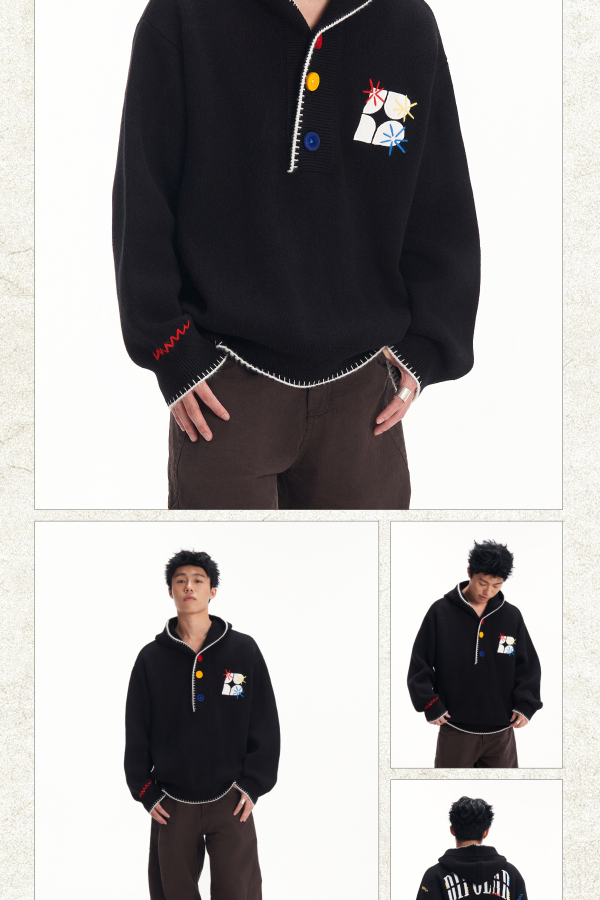 Bipolar Three-Color Patchwork Embroidered Hooded Sweater Dopamine Colorful Knitwear Trendy Design Jacket for Men