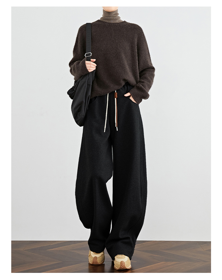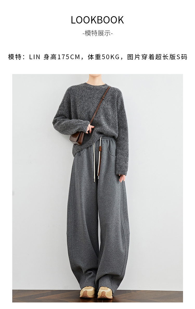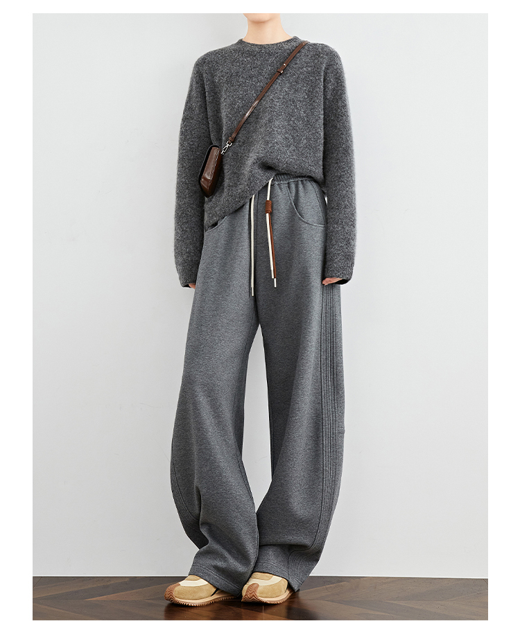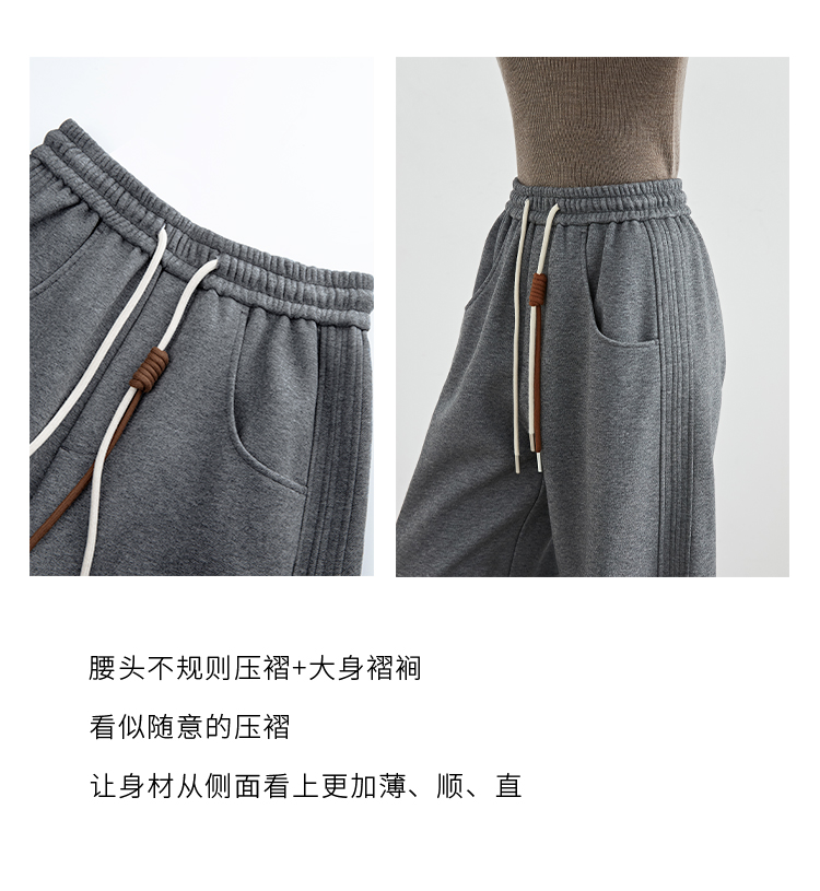 Faesslin Banana Sweatpants for Women, Autumn and Winter, Gray Casual Fleece-Lined Scythe Pants, Sports Wide-Leg Pants, Extended Curved Knife Pants