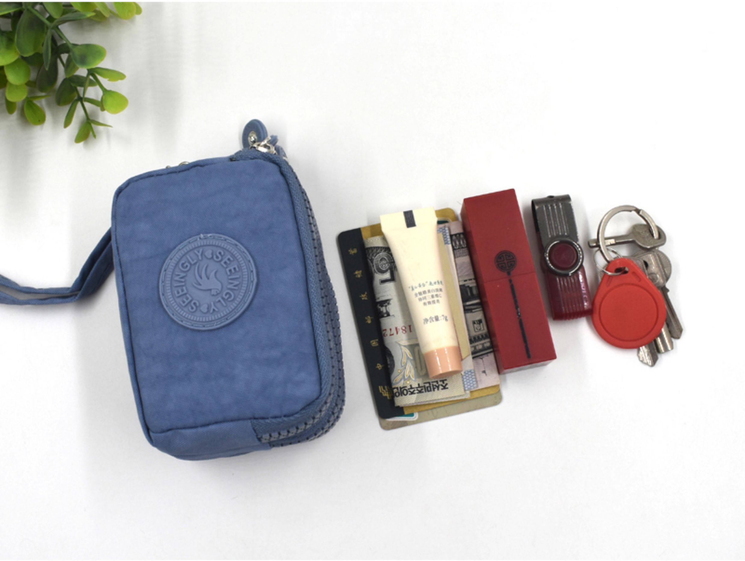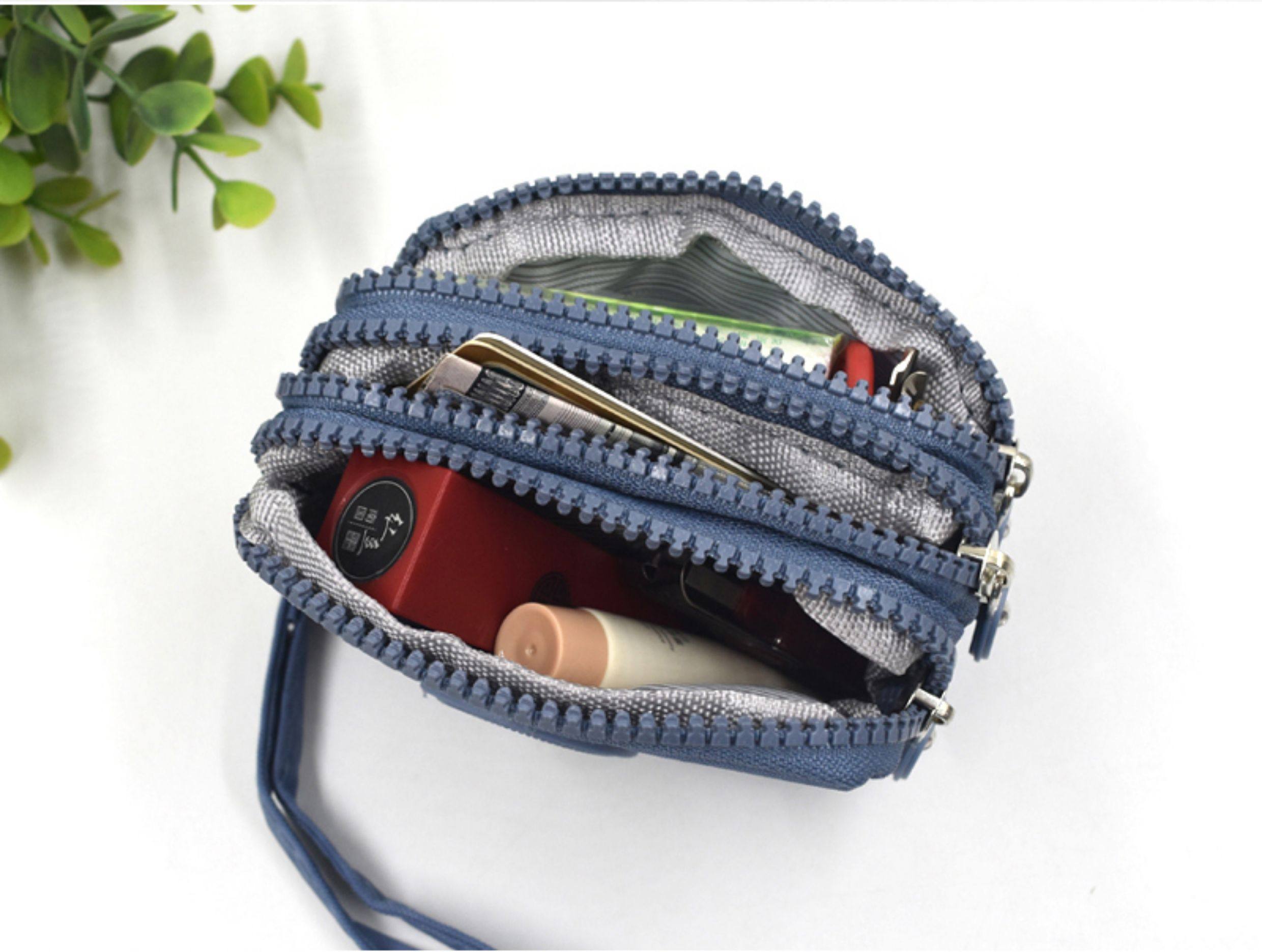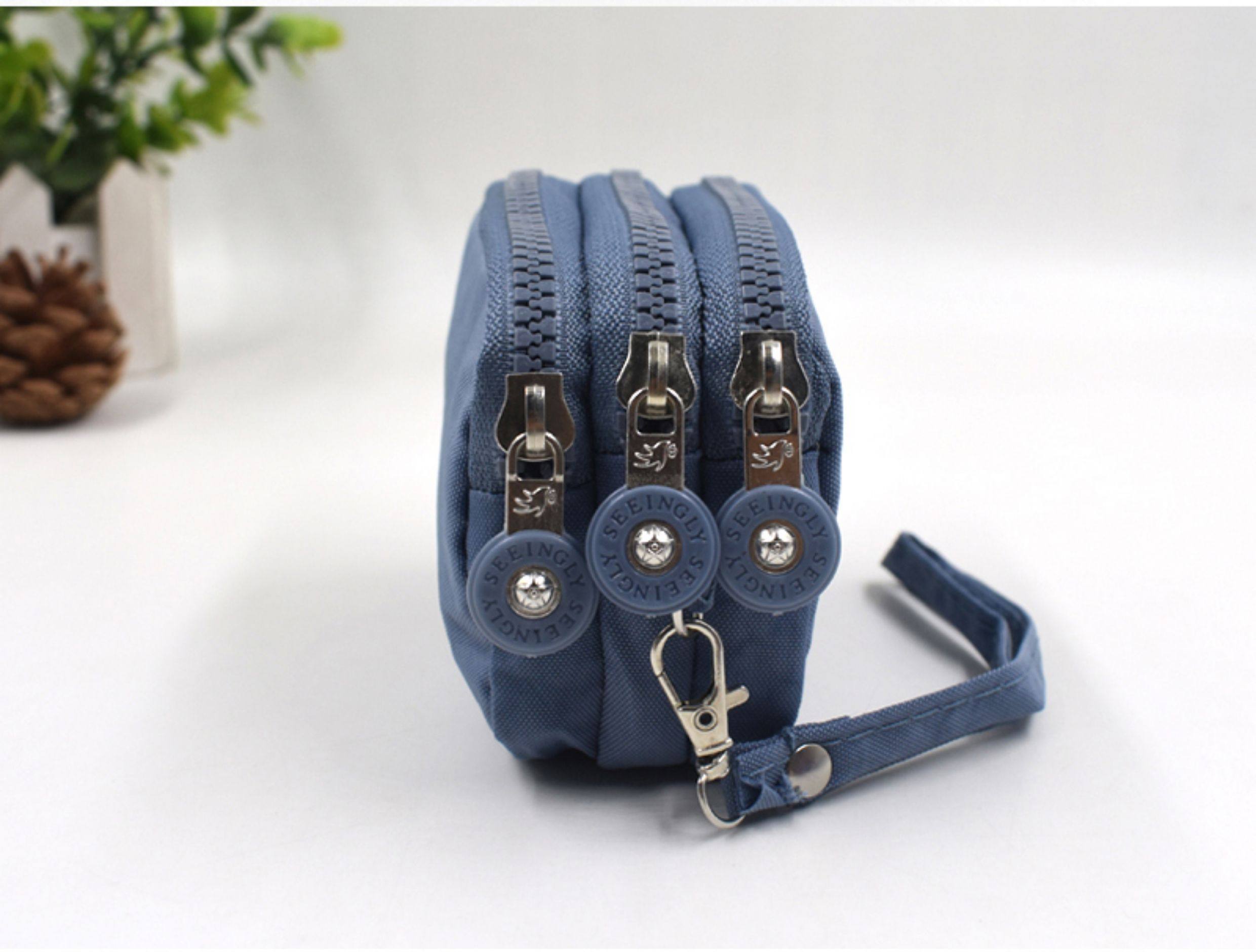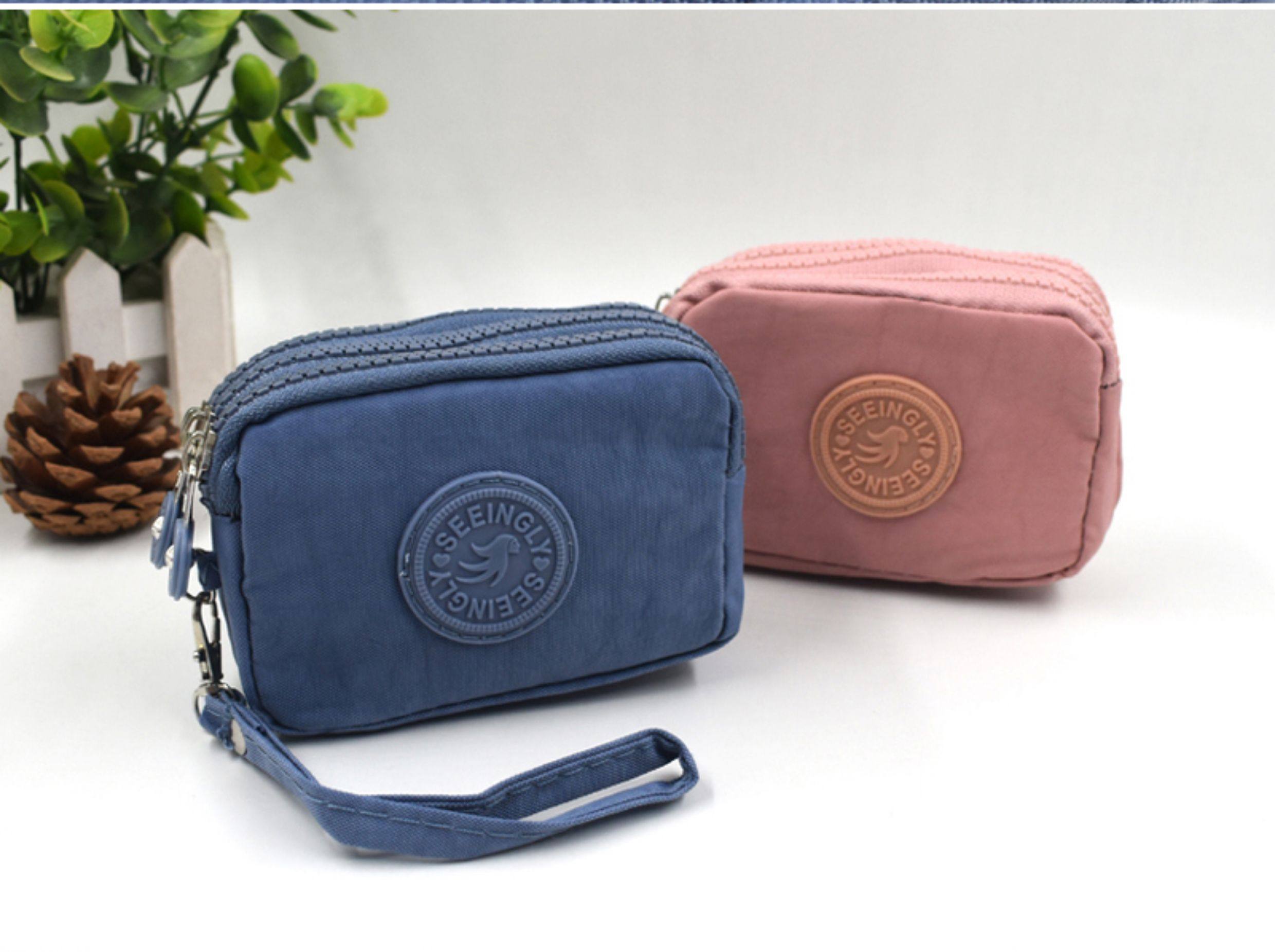 Simple Fabric Multi-Layer Zipper Pouch, Fashionable Mini Clutch Bag, Coin Purse, Large Capacity Canvas Small Square Bag