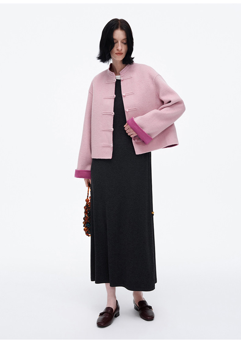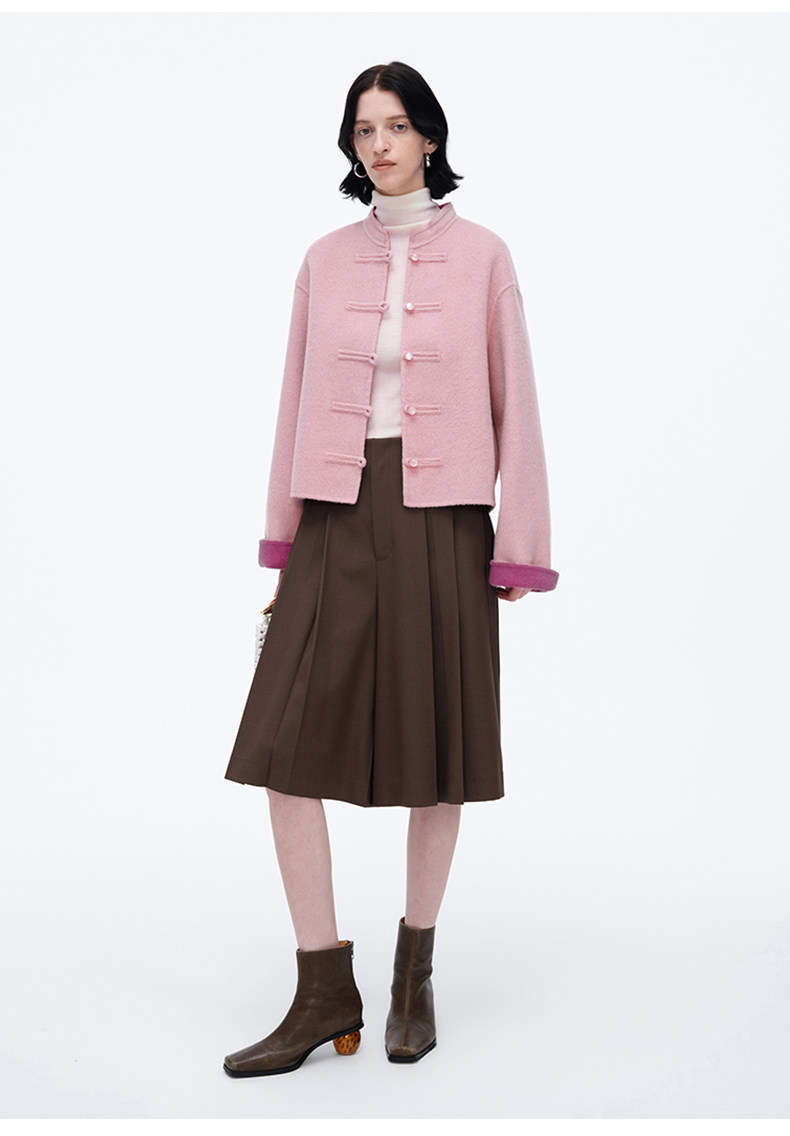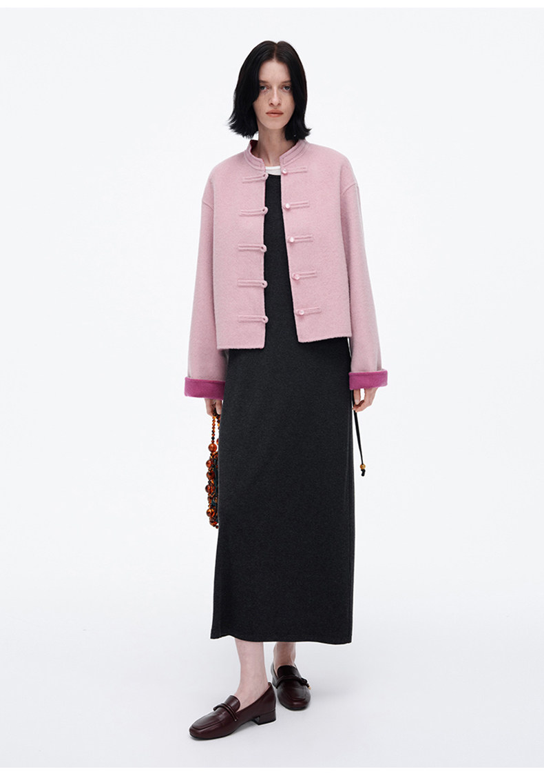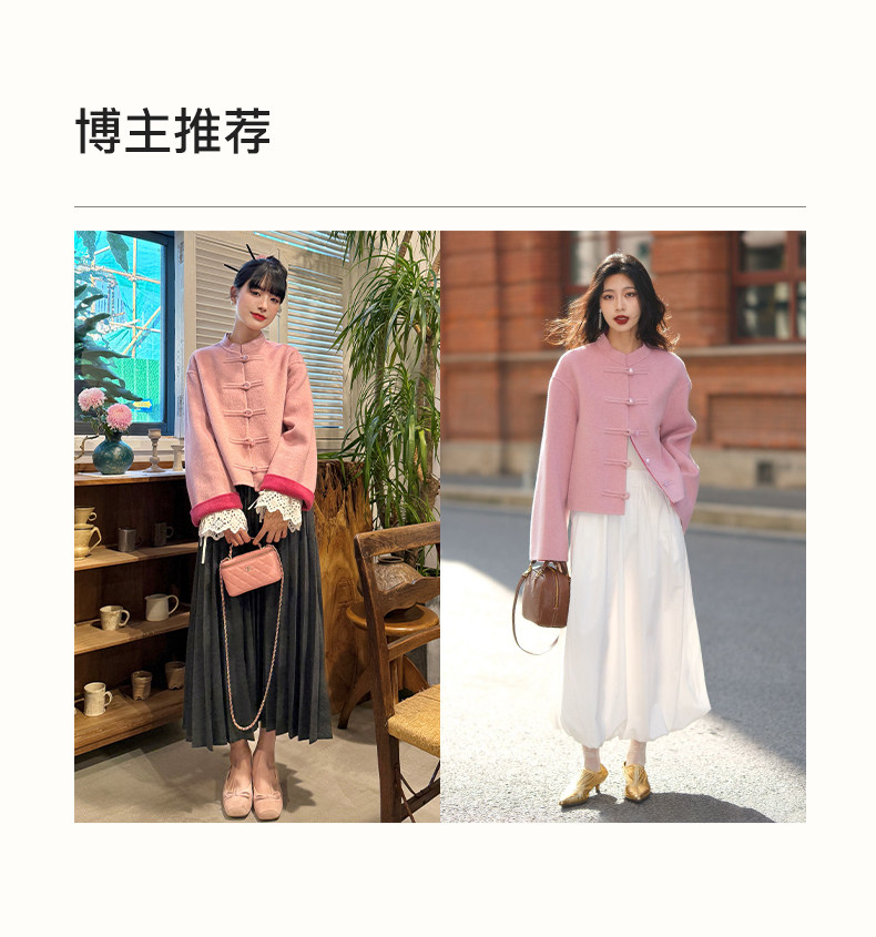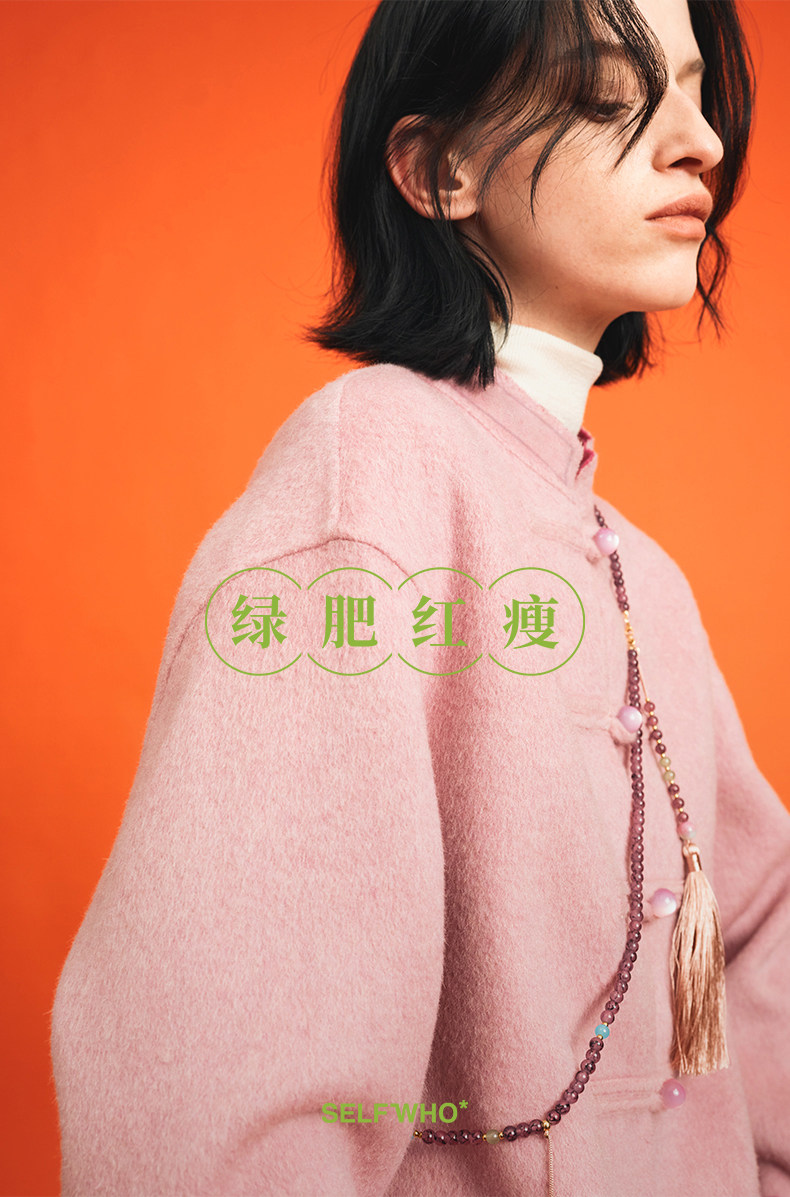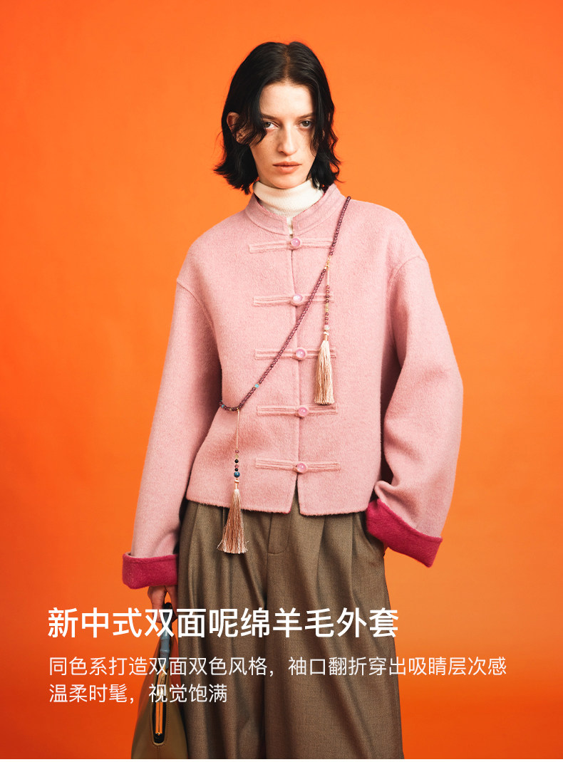 [Same Style as Jiang Yan] Selfwho Sheep Wool New Chinese Style Coat for Women, Winter National Style Pink Short Top