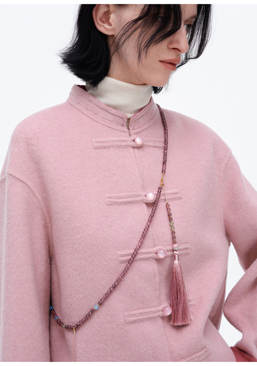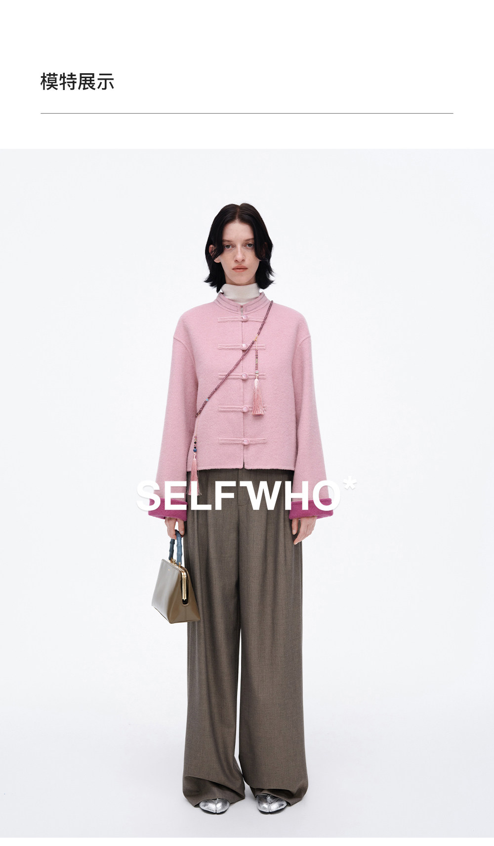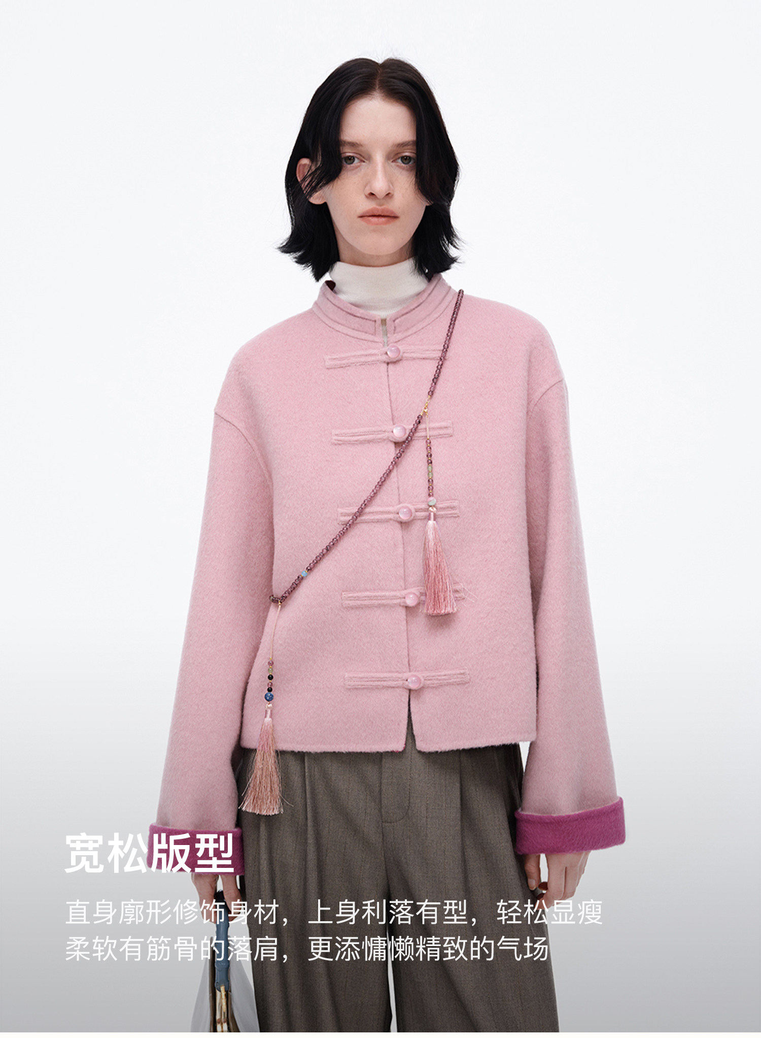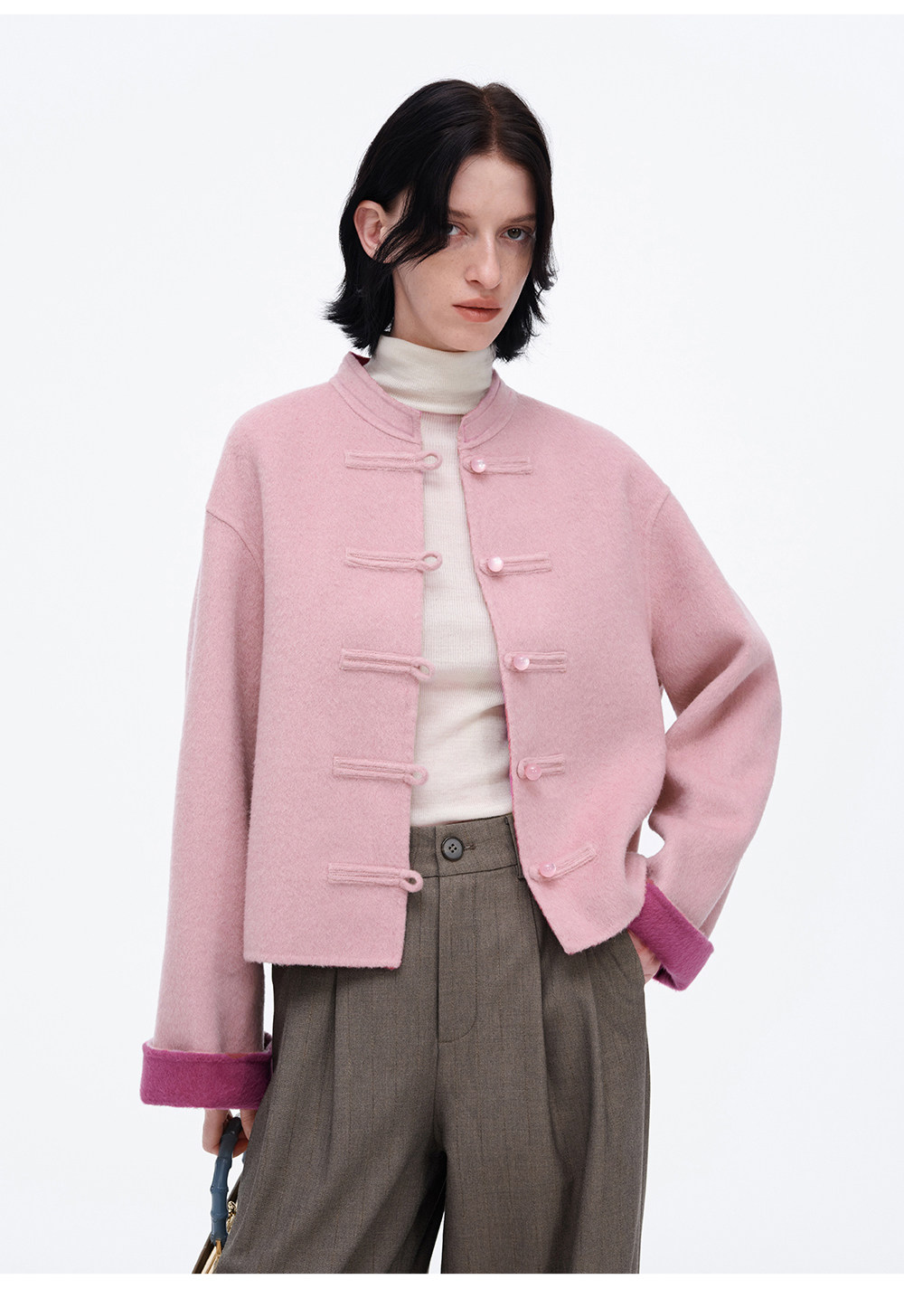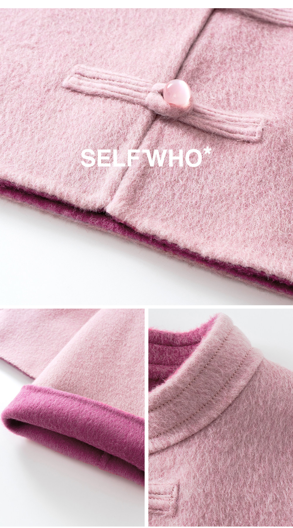 [Same Style as Jiang Yan] Selfwho Sheep Wool New Chinese Style Coat for Women, Winter National Style Pink Short Top