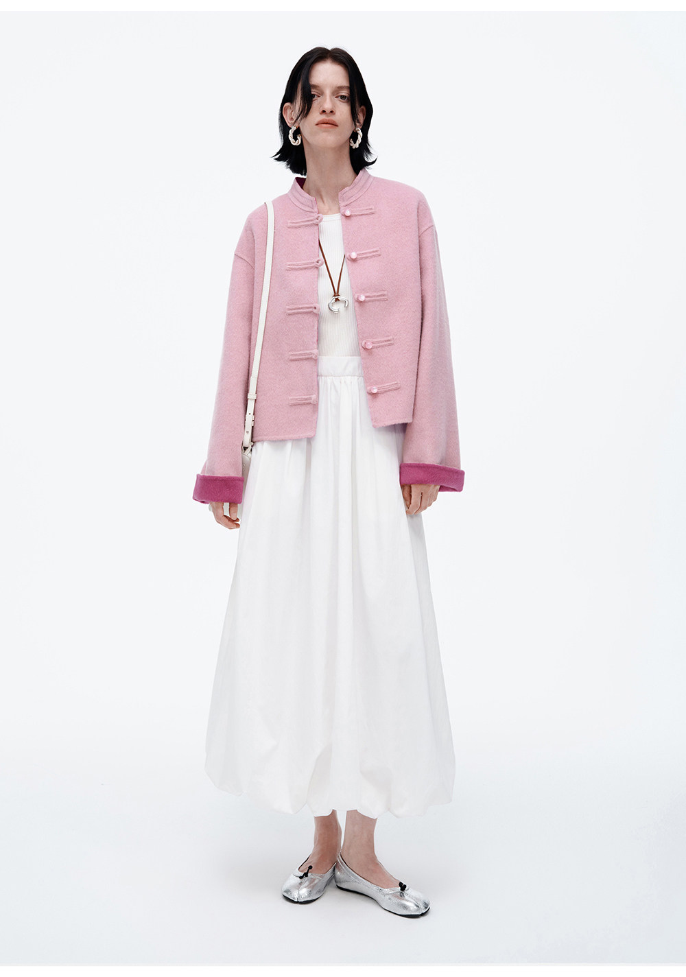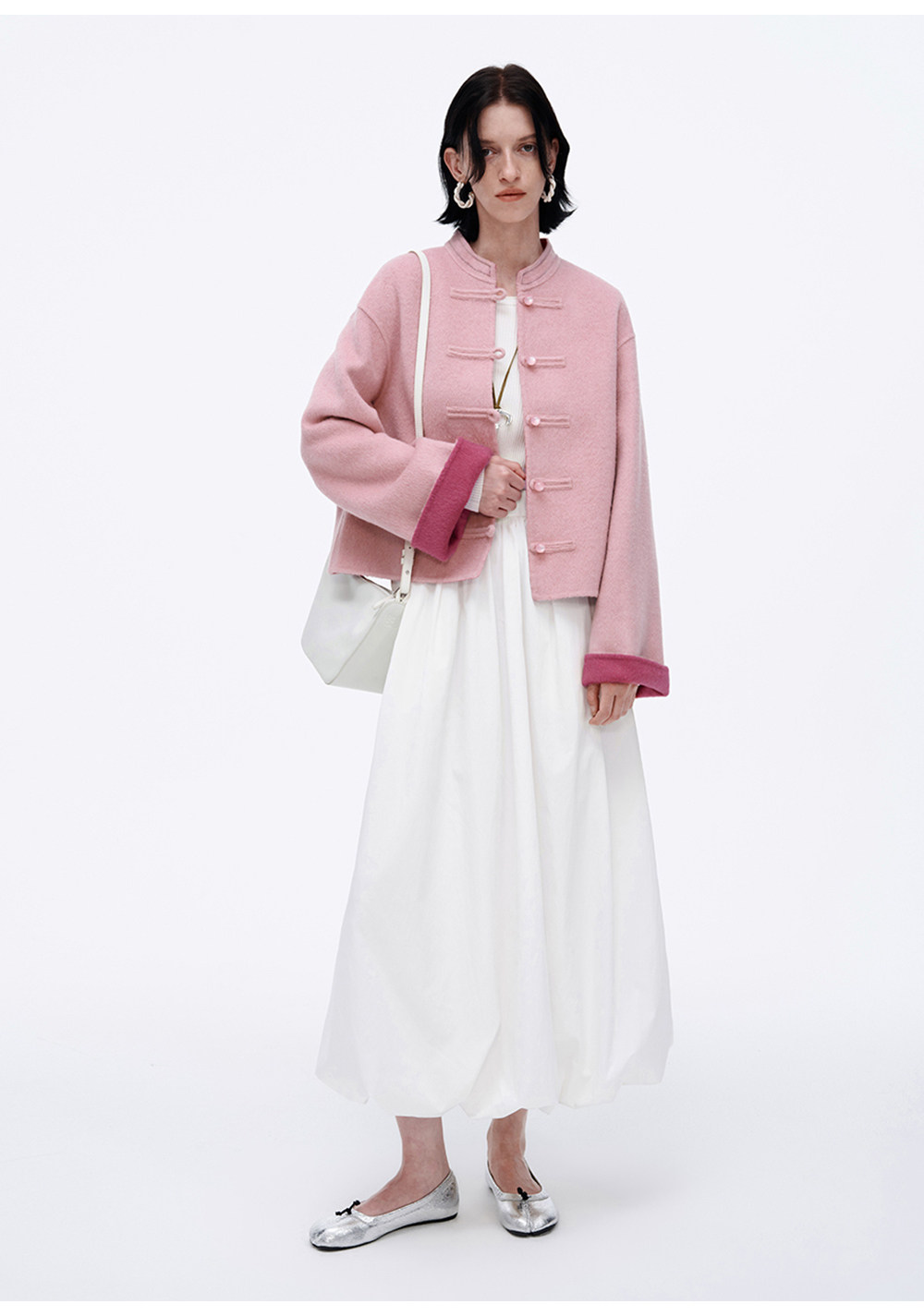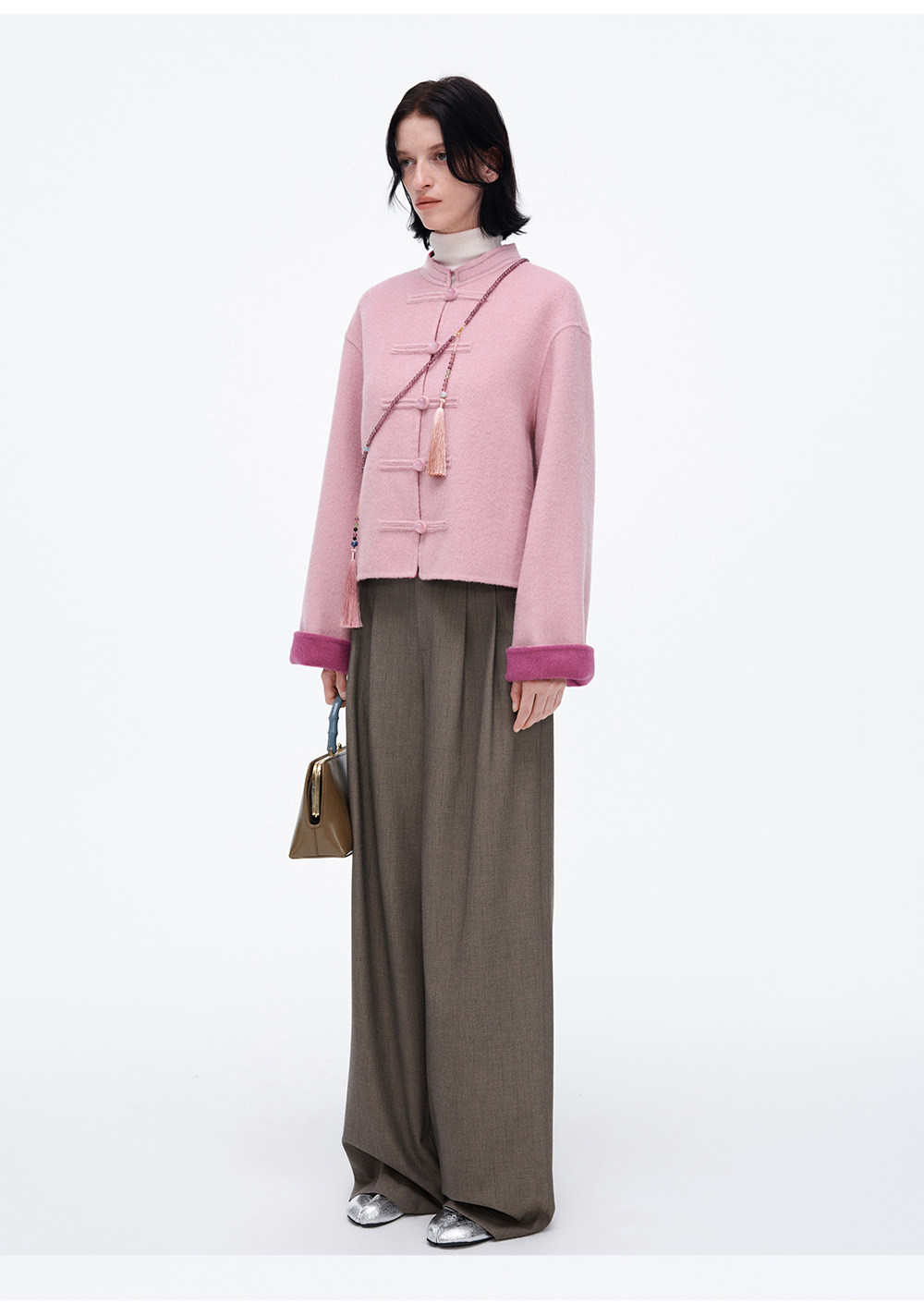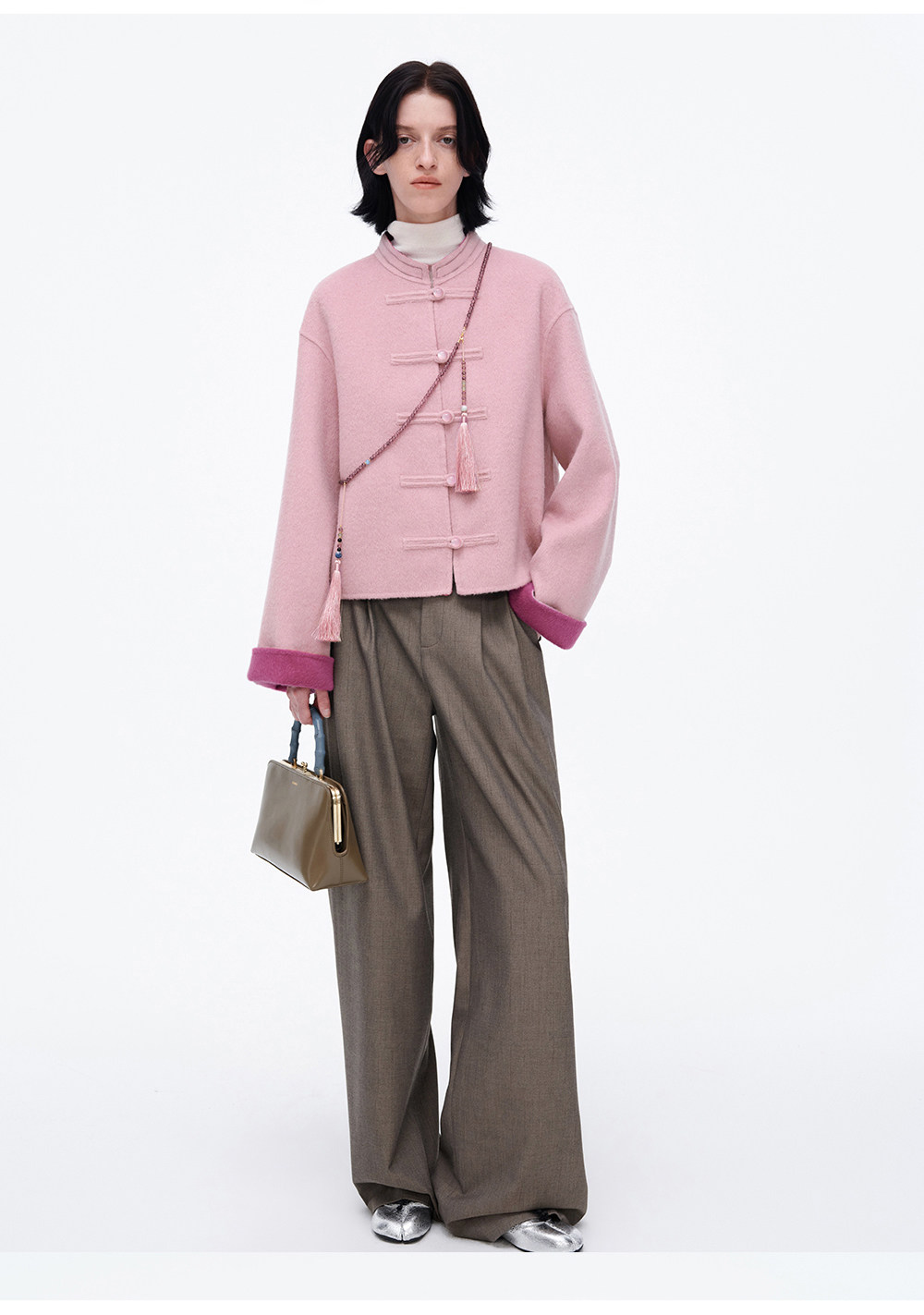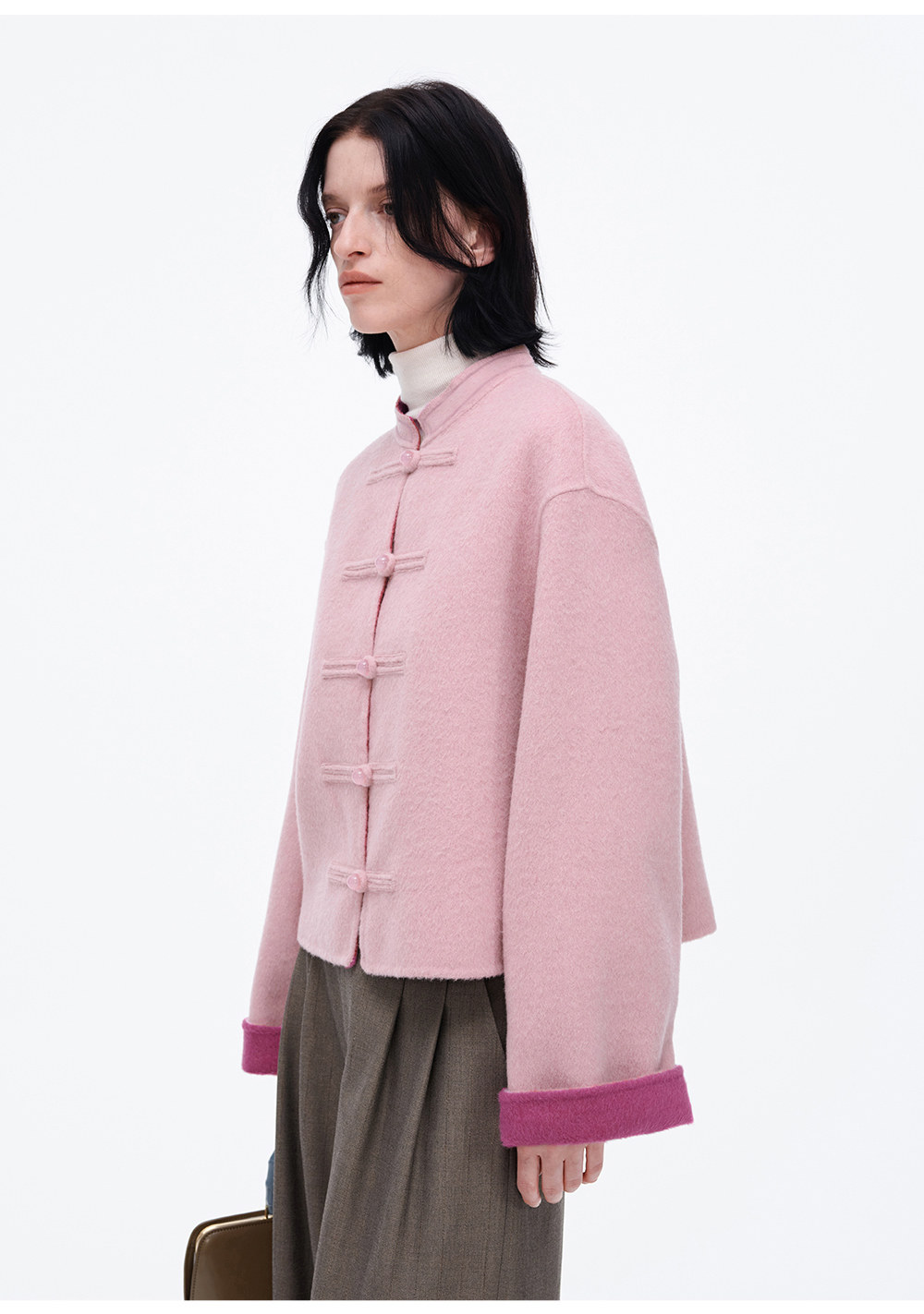 [Same Style as Jiang Yan] Selfwho Sheep Wool New Chinese Style Coat for Women, Winter National Style Pink Short Top