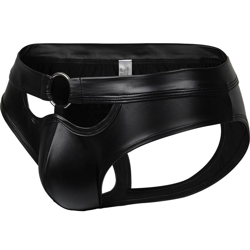 New Men's Underwear Faux Leather Backless Briefs Sexy Patent Leather Youth Thong Open Crotch T-Back Low Waist