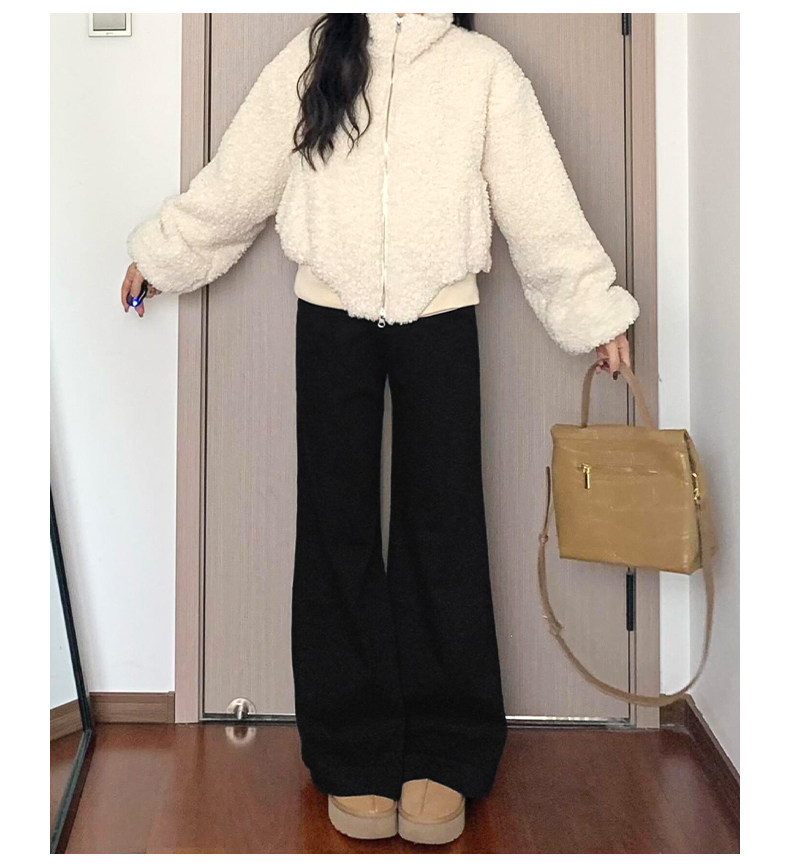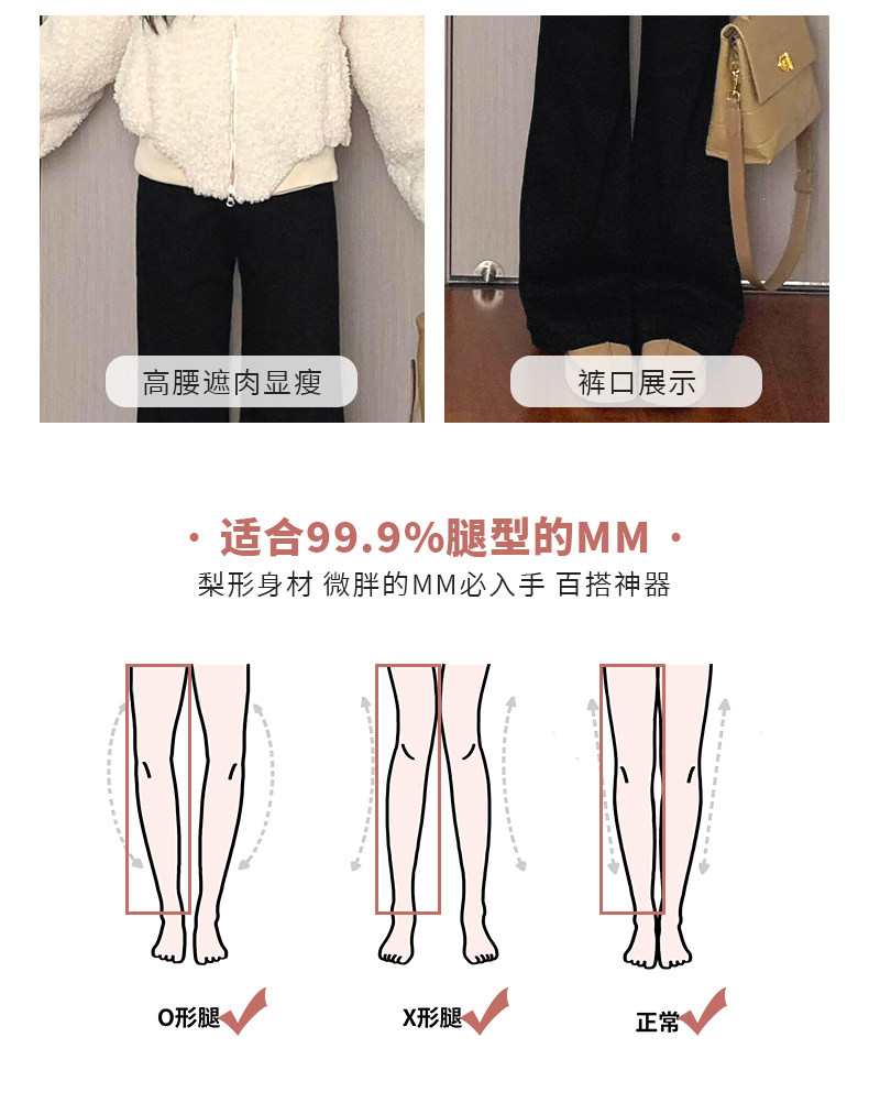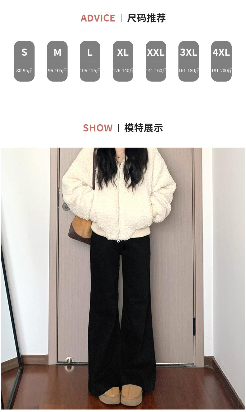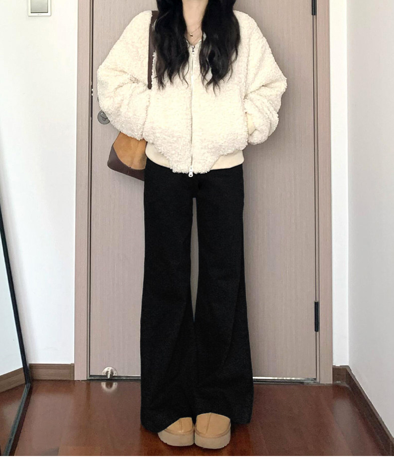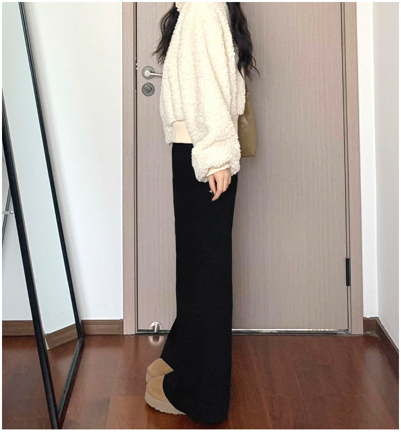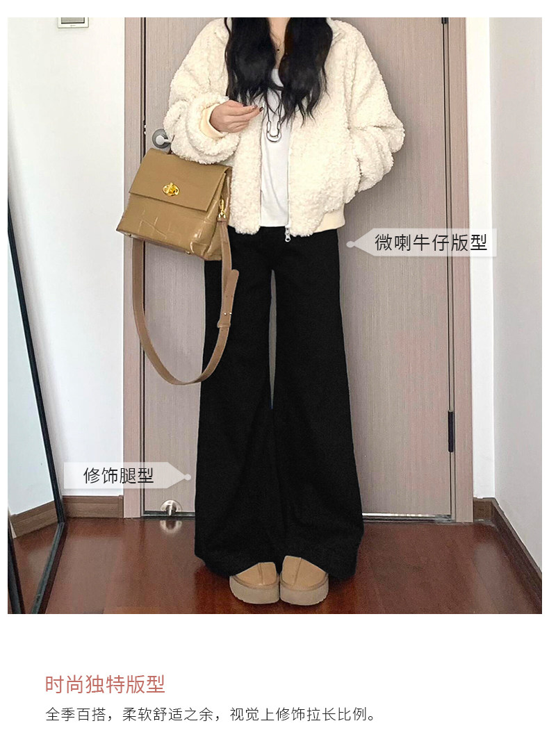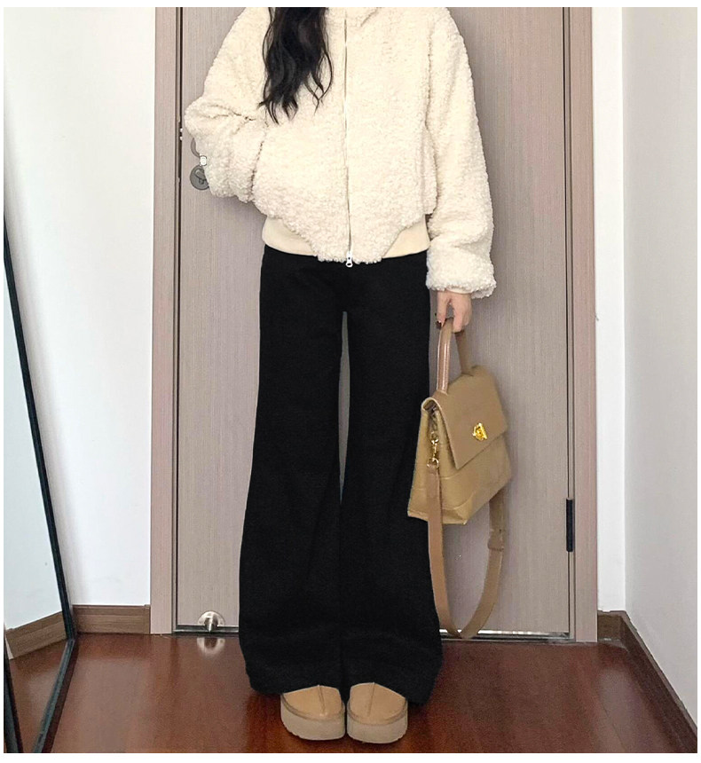 Black A-Line Pear-Shaped Body Jeans for Women, Winter Fleece-Lined, Thickened, Loose Fit, Plus Size, Slimming Wide-Leg Pants